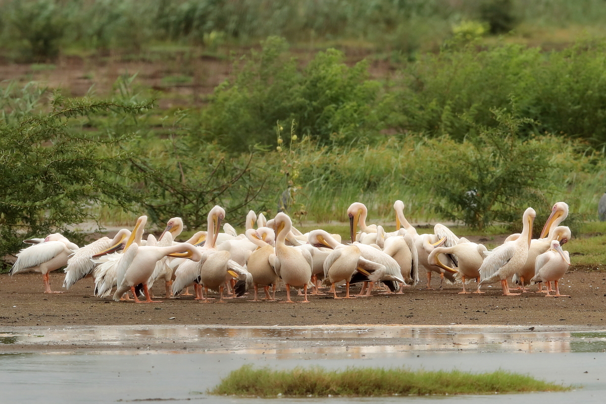 1.White-backed Vulture (V). 2.Long-crested Eagle (V). 3. Black-headed Heron. 4.Red-billed Oxpecker (T). 5.Helmeted Guineafowl (T,V). 6. Little Bee-eater. 7.Blacksmith Lapwing. 8. African Jacana. 9.African Paradise-Flycatcher (V). 10.Yellow-billed Kite (T). 11.Palm-nut Vulture. 12.Spur-winged Goose. 13.Bateleur.14. Little Egret (V). 15.Brown Snake-Eagle. 16.Glossy Ibis (T). 17.Brown-crowned Tchagra. 18.Chinspot Batis. 19.African Hoopoe (T,V) 20.Spotted Thick-knee. 21.Sacred Ibis. 22.Black-winged Lapwing. 23.Water Thick-knee. 24.Gray Crowned-Crane. 25. Red-billed Quelea.26. Fork-tailed Drongo.27. Speckled Pigeon. 28.Wahlberg's Eagle. 29.Three-banded Plover. 30.Kittlitz's plover. 31.Wattled Lapwing. 32.Steppe Eagle. 33.Grosbeak Weaver. 34.Yellow-fronted Canary. 35.Squacco Heron. 36.Goliath Heron. 37.European Roller. 38. Cattle Egret. 39.Yellow-billed Stork. 40.Woodland Kingfisher. 41.Lesser Striped-Swallow(G).42.Great White Pelican. 43.Speckled Mousebird. 44.Red-winged Starling (V). 45.Red-rumped Swallow (V).46. Pied Avocet. 47.African Stonechat. 48.Ring-necked Dove. 49.Hamerkop (V). 50.White Stork (T). 51. African Openbill. 52.Black-winged Stilt. 53. Striped Kingfisher. 54.Pin-tailed Whydah. 55. Southern Fiscal. 56.Black-crowned Night Heron. 57.Black-winged Kite. 58.African Firefinch. 59.Marsh Sandpiper. 60.Laughing Dove. 61.Red-billed Teal. 62.Crested Francolin (T) 63.White-browed Scrub Robin. 64.Striated Heron. 65.White-faced Whistling Duck. 66. Spur-winged lapwing (T,V). 67.Eastern imperial eagle. 68.Common Ostrich.69.Lesser Spotted Eagle.70.Lesser Kestrel.71.Northear Wheatear.