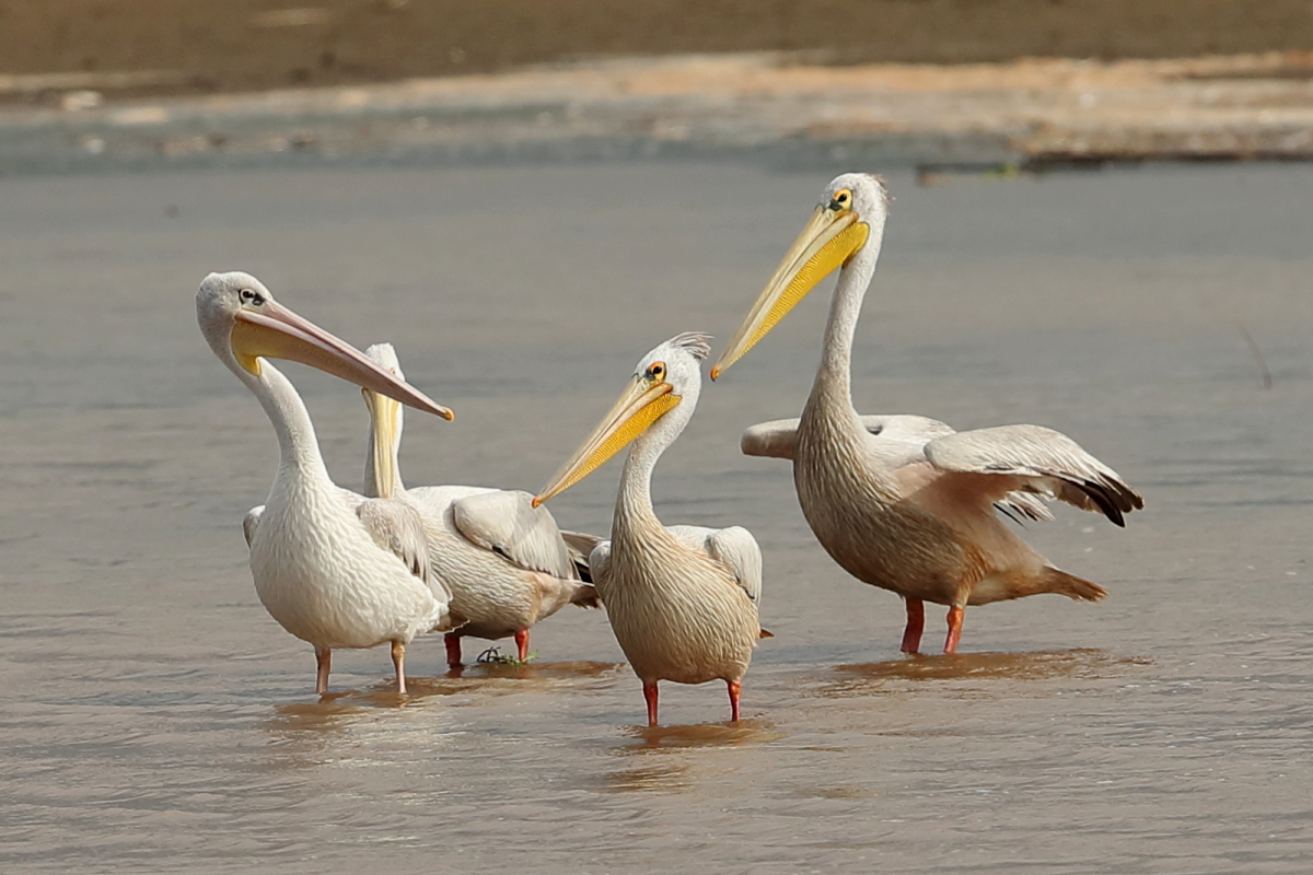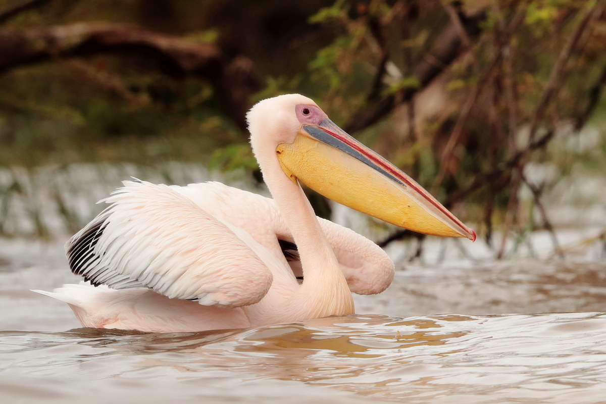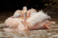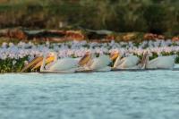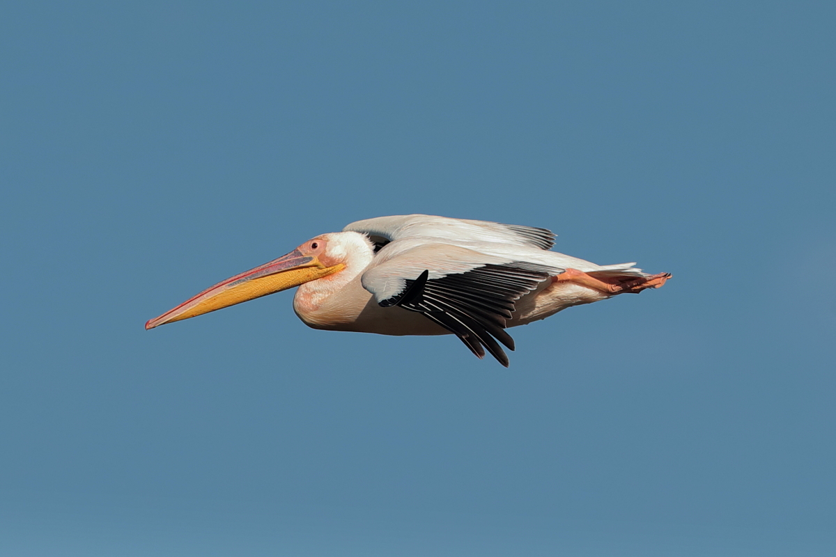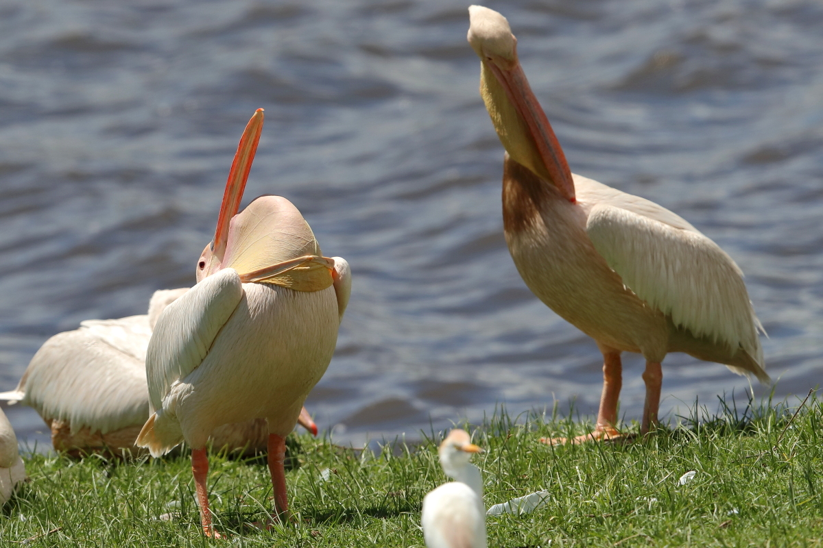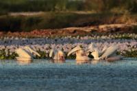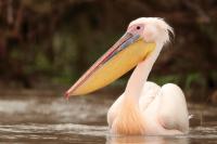 Once I watched the great white pelican over a fairly large lake in South Africa. The pictures were taken from a hide built for bird watchers. It was not a lookout point for photographers, because there was a lack of places with better view for taking pictures, not to mention the great distance from the animals. Pelicans were in a large group accompanied by yellow-billed storks, African openbills, Caspian terns and crocodiles. The fourth species of pelican goes to my gallery, and what is more important, this species belongs to fauna of Poland. It would be difficult to take the pictures in my country, thus my great joy of such photographic observation.