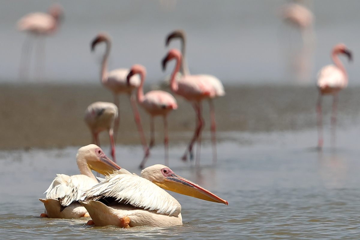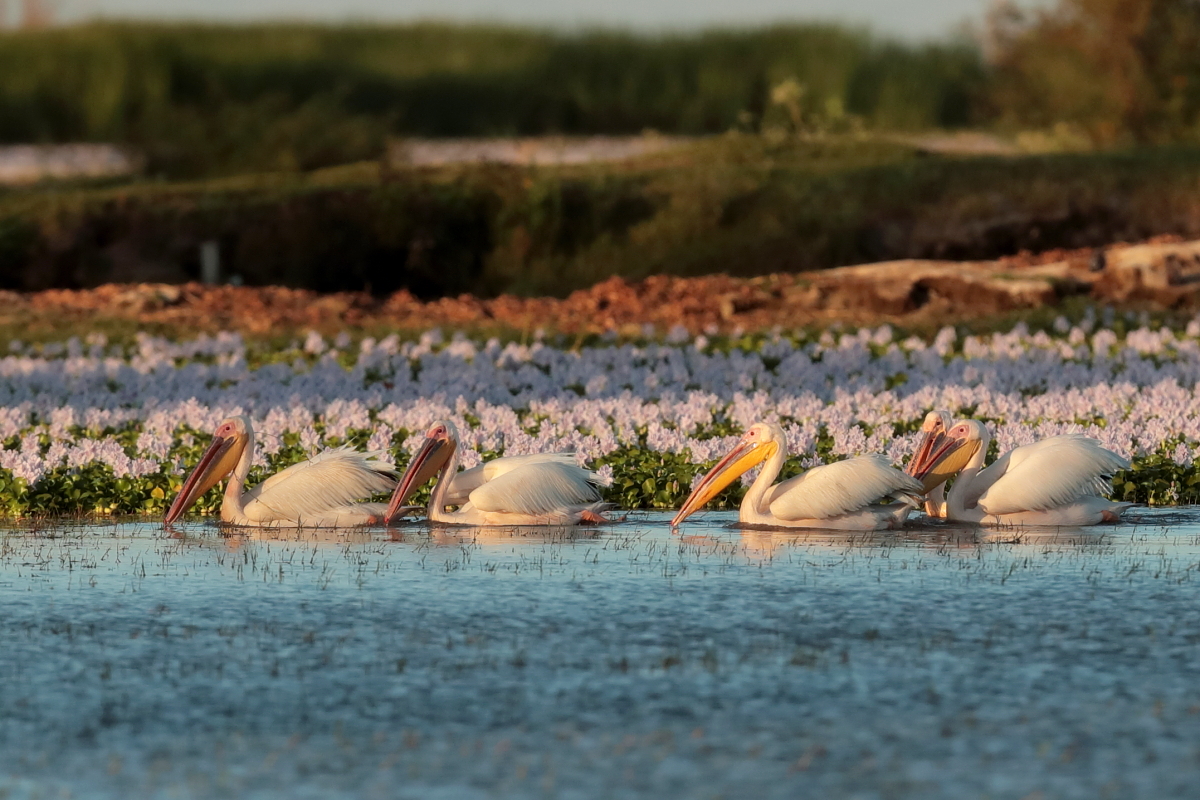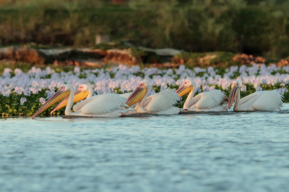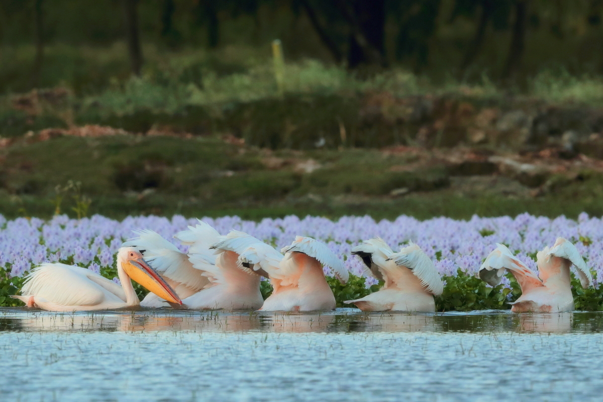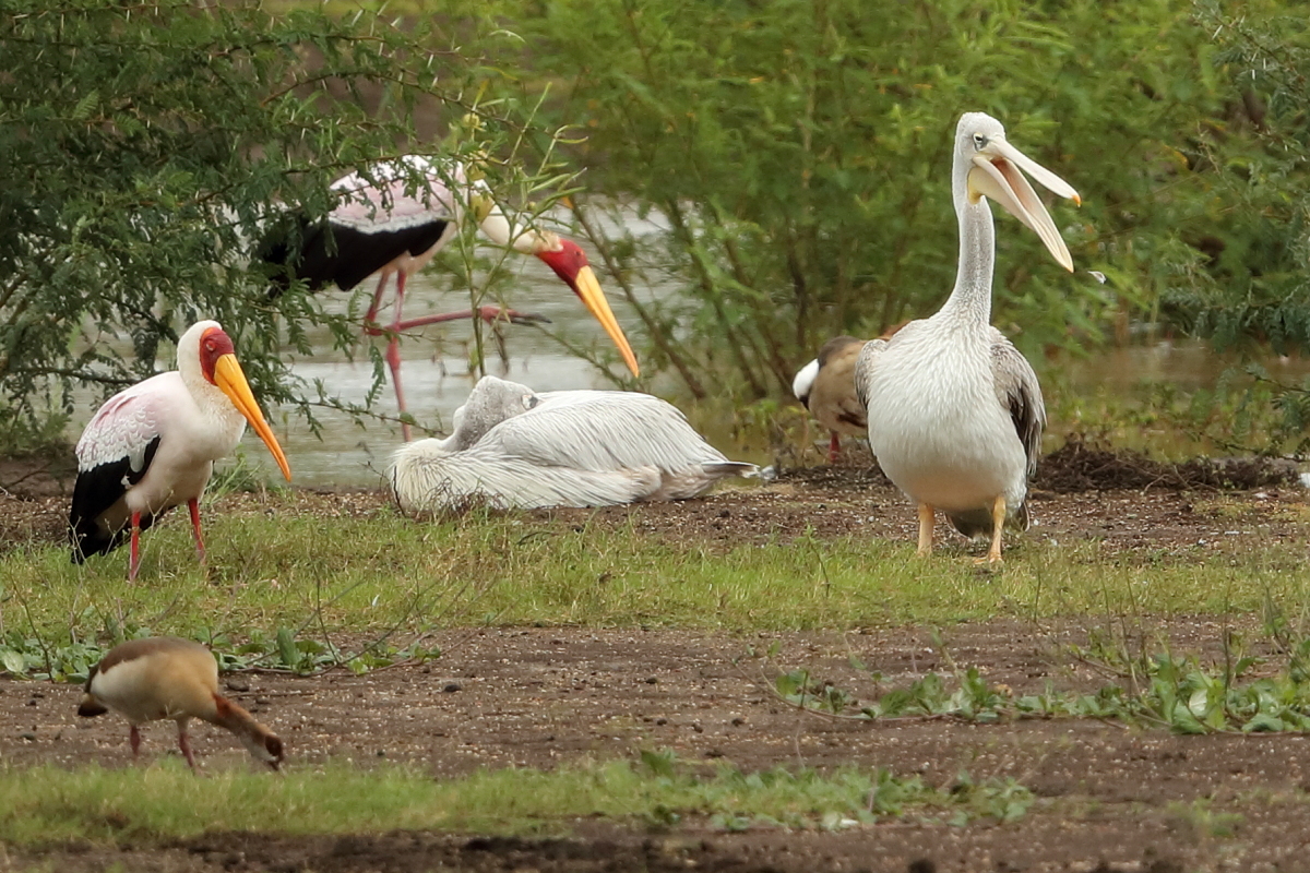 Once I watched the great white pelican over a fairly large lake in South Africa. The pictures were taken from a hide built for bird watchers. It was not a lookout point for photographers, because there was a lack of places with better view for taking pictures, not to mention the great distance from the animals. Pelicans were in a large group accompanied by yellow-billed storks, African openbills, Caspian terns and crocodiles. The fourth species of pelican goes to my gallery, and what is more important, this species belongs to fauna of Poland. It would be difficult to take the pictures in my country, thus my great joy of such photographic observation.