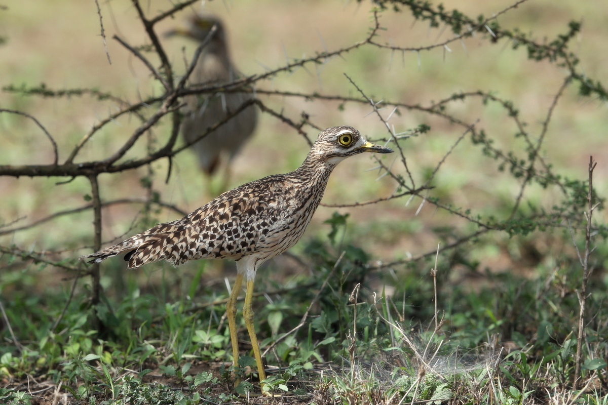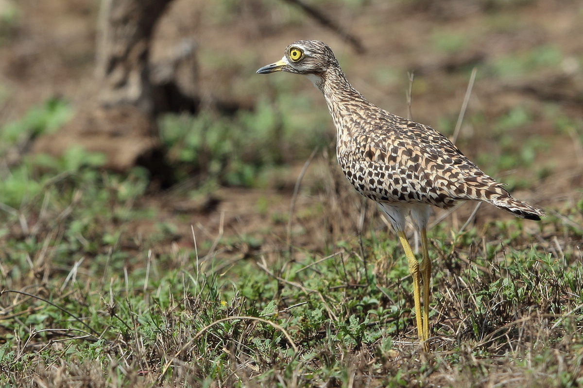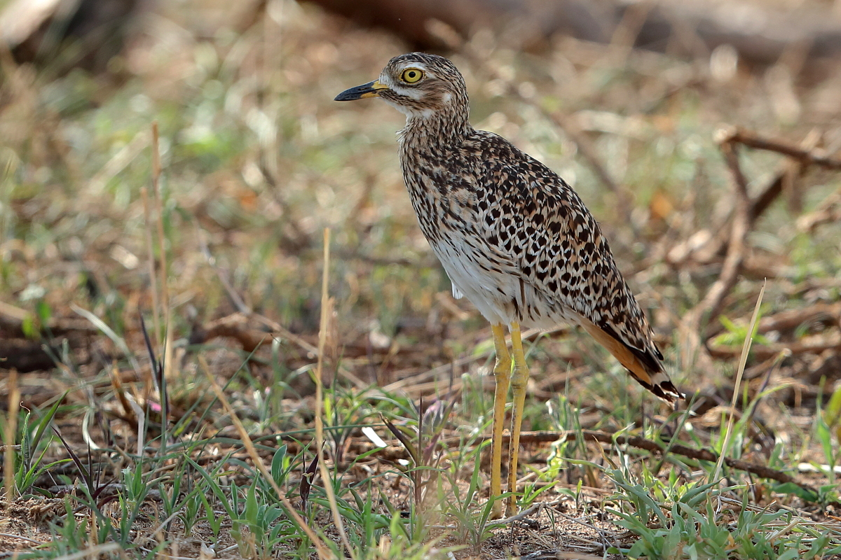 Finally, to my gallery go other representatives of the thick-knee family. So far I managed to photograph only bush thick-knee in Australia. During our stay in South Africa I gained two more species: the water thick-knee and the spotted thick-knee, and this text is common to both. I had two opportunities to watch a water thick-knee. The first while on the cruise along a reservoir, the second during the observation of pied kingfishers. These images come from the first encounter. Water thick-knees were fairly easy to spot watching the shoreline. It was much harder to spot a spotted thick-knee. It often keeps staying in the bushes, hardly moving and closely watching the countryside. Probably it assumes that as long as it is still you cannot see it. Moving slowly, even by car, we could reduce the distance from the bird to a few meters and take a convenient position for photographing. Then the joy and satisfaction of a good shot immediately gives way to a desire to take other, more interesting pictures of a spotted thick-knee to an attractive, more diverse gallery. But the spotted thick-knee is standing still and watching, watching, watching...