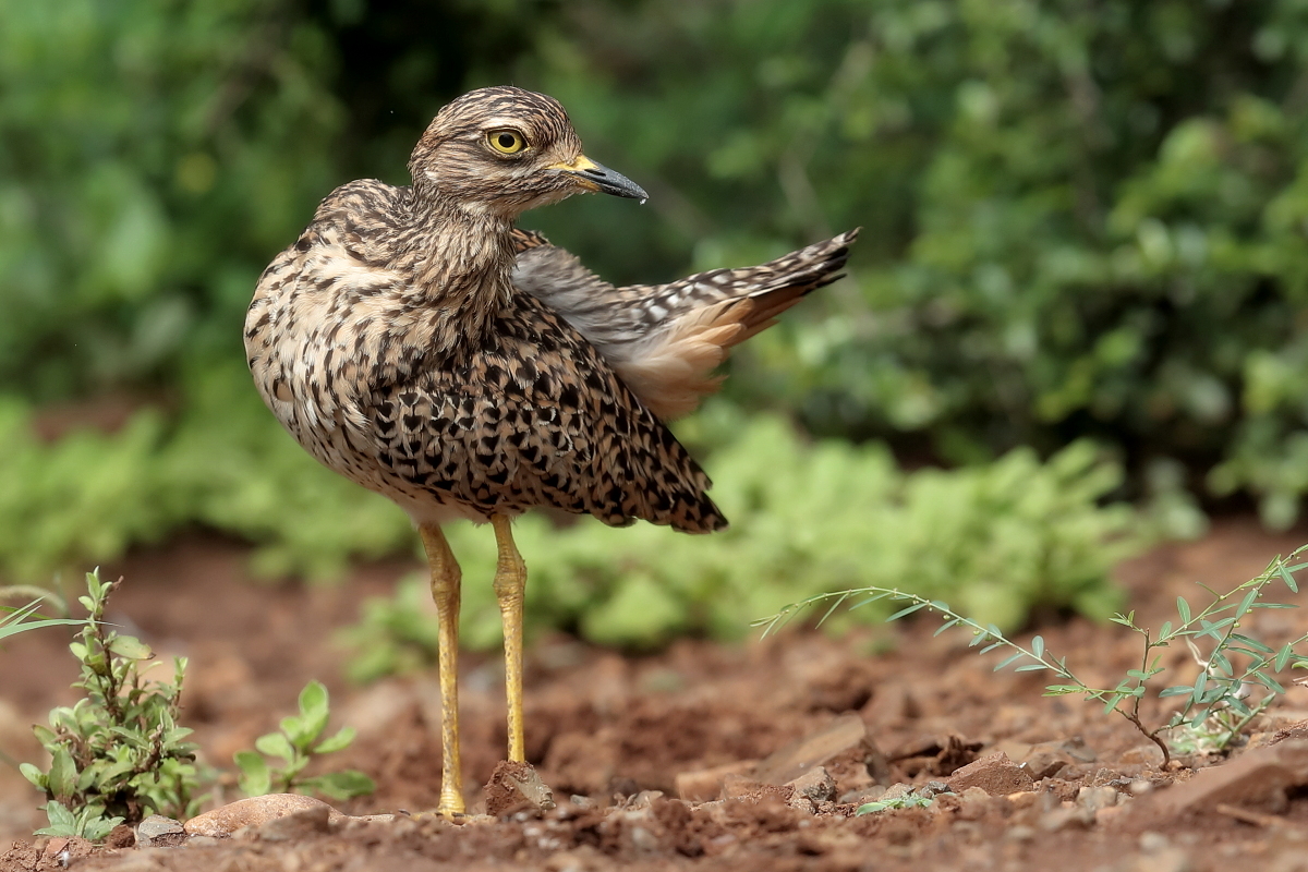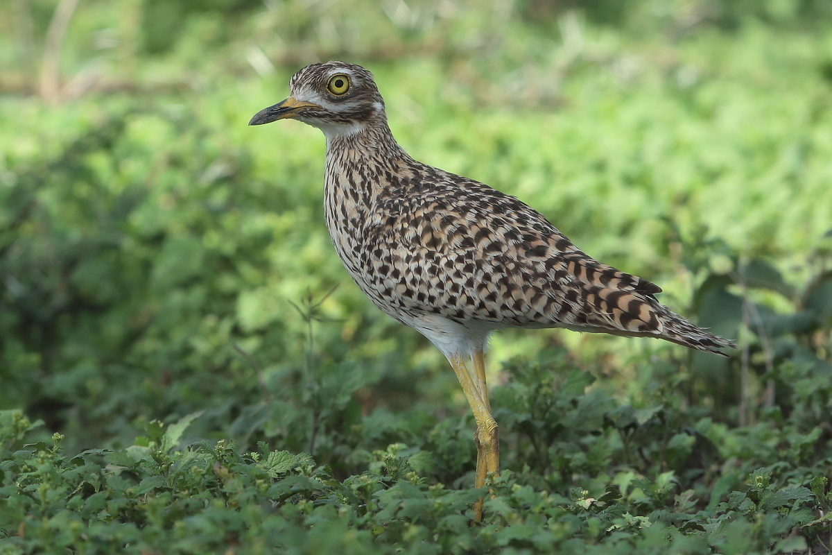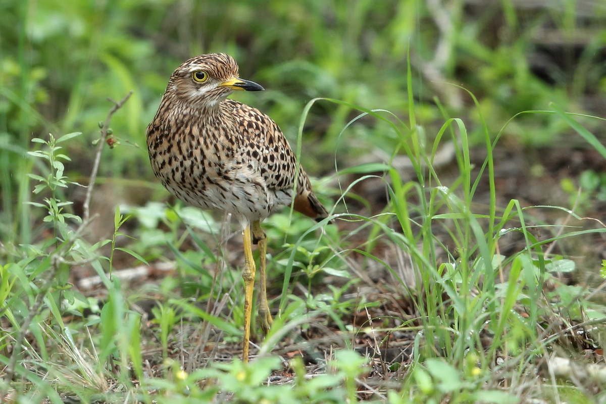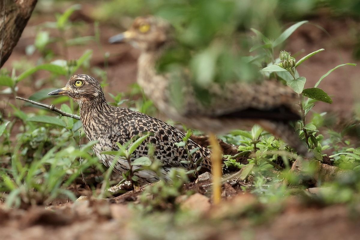 Finally, to my gallery go other representatives of the thick-knee family. So far I managed to photograph only bush thick-knee in Australia. During our stay in South Africa I gained two more species: the water thick-knee and the spotted thick-knee, and this text is common to both. I had two opportunities to watch a water thick-knee. The first while on the cruise along a reservoir, the second during the observation of pied kingfishers. These images come from the first encounter. Water thick-knees were fairly easy to spot watching the shoreline. It was much harder to spot a spotted thick-knee. It often keeps staying in the bushes, hardly moving and closely watching the countryside. Probably it assumes that as long as it is still you cannot see it. Moving slowly, even by car, we could reduce the distance from the bird to a few meters and take a convenient position for photographing. Then the joy and satisfaction of a good shot immediately gives way to a desire to take other, more interesting pictures of a spotted thick-knee to an attractive, more diverse gallery. But the spotted thick-knee is standing still and watching, watching, watching...