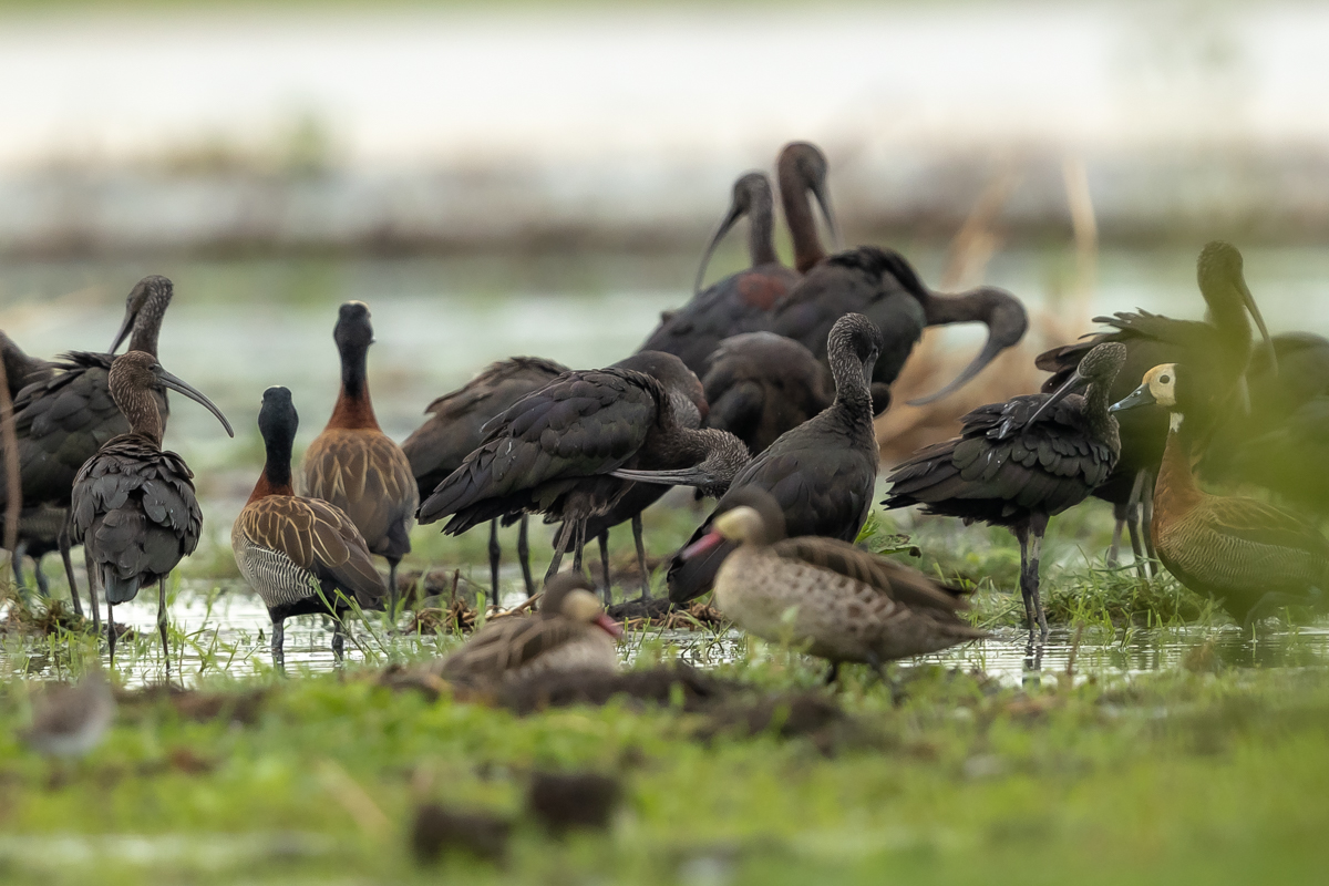 Founding the gallery of this species on my website makes me happy for two reasons. The first of course is the fact that the glossy ibis belongs to fauna of Poland and it was my first encounter with this bird. The second reason is that the "ibis family" galleries enlarged on my site to 10. The trip to South Africa brought the bald ibis, the sacred Ibis and the glossy ibis. It is a pity that quality of the photos is not a reason for satisfaction. We could watch the ibises shortly while on a lake cruise. The birds were at a considerable distance and were very skittish. To make matters worse, it started raining and we had to finish our shooting before the scheduled time.