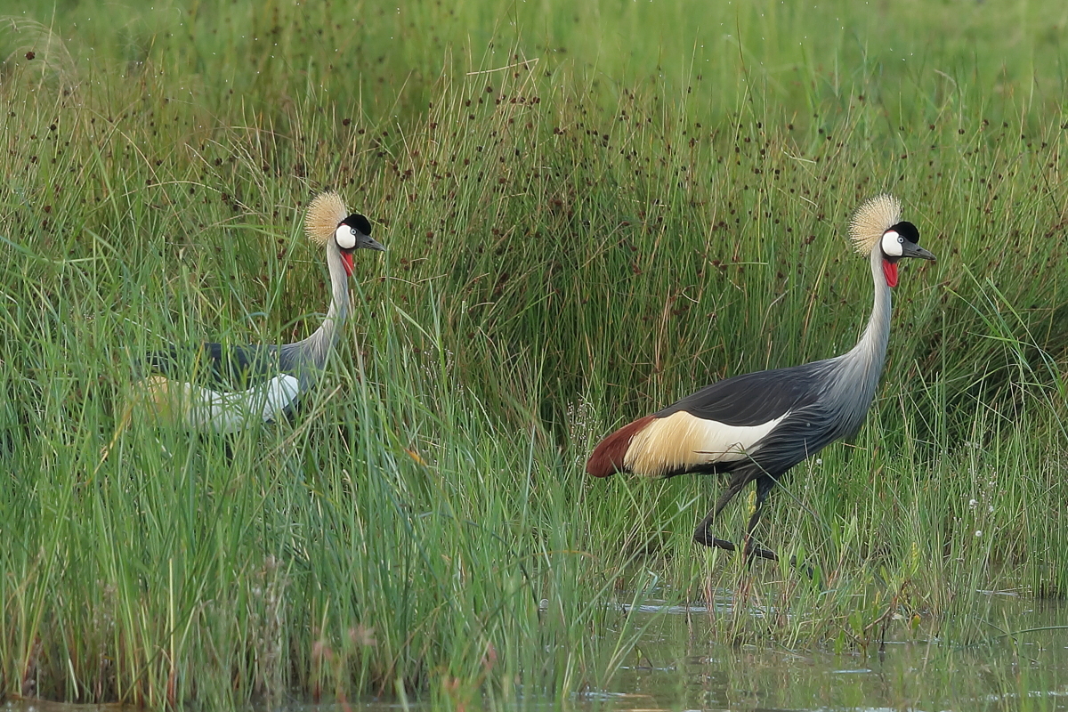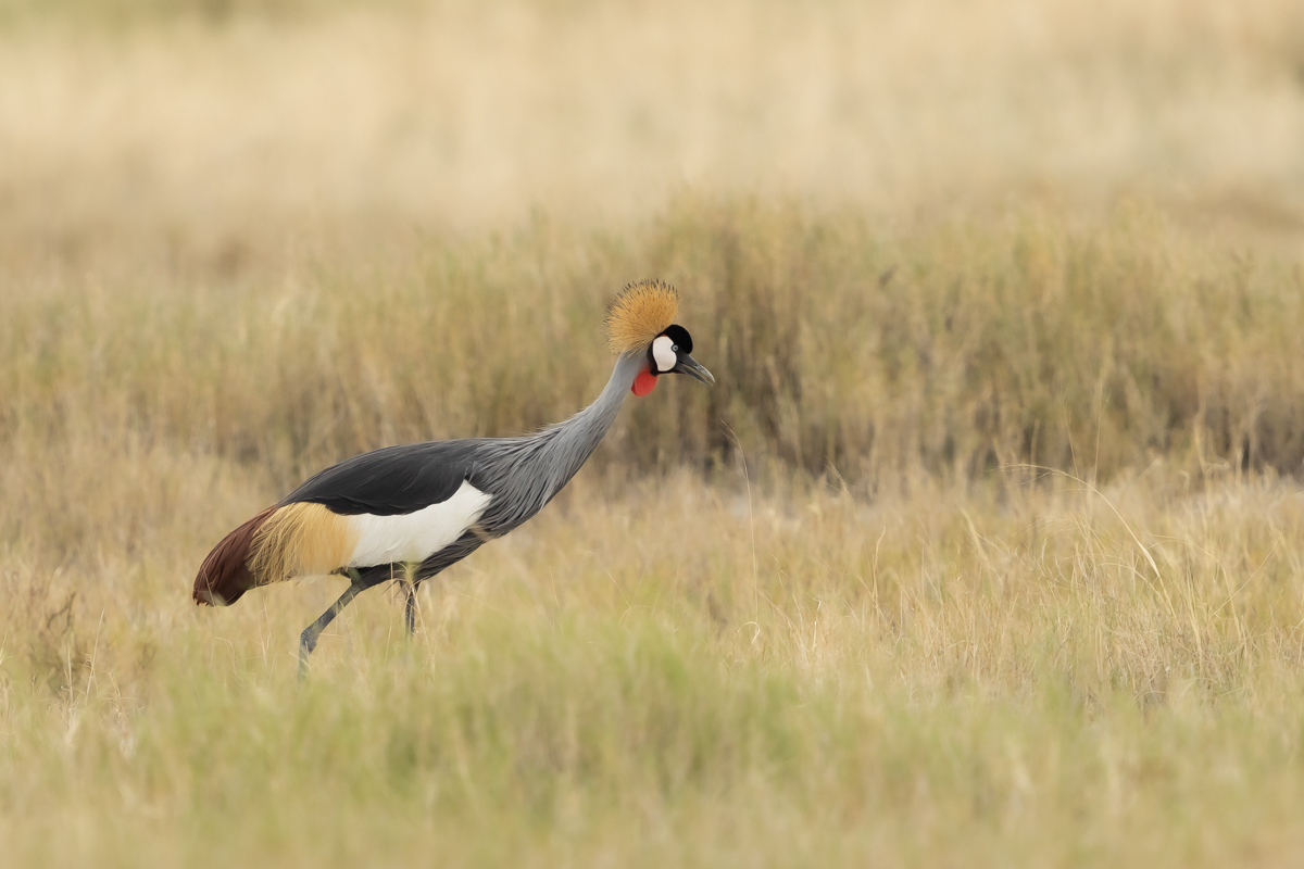 After the trip to South Africa two new crane galleries came into being – of the grey crowned-crane and the blue crane. While it will be hard to find another opportunity to take new photos of the blue crane, grey crowned-cranes can be found in many African countries, and I hope to take even better pictures of this incredibly colored bird in the future. I had a few encounters with a grey crowned-crane and always at a fairly significant distance. We were lucky to observe their mating behavior, when male with outstretched wings pranced, danced before the female, which sometimes got caught up in the mating dance. Sometimes cranes flew over our heads and I also managed to take some dynamic photos of their flight. These few meetings allowed me to create a start-gallery of this species on my website.