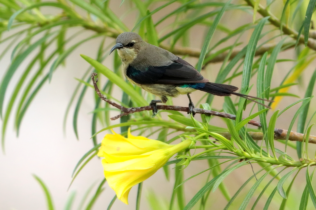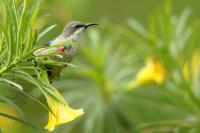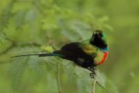 1.Green Woodhoopoe(T,V). 2.Yellow-billed Shrike(V). 3.Western Red-billed Hornbill. 4.Long-tailed Nightjar. 5.Western Grey Plantain-eater. 6.Blue-breasted Kingfisher. 7.Common Gonolek(V). 8.Melodious Warbler(T). 9.Senegal Coucal. 10.Guinea Turaco. 11.Vieillot's Barbet. 12.Lavender Waxbill. 13.Black-billed Wood-Dove. 14.Violet Turaco. 15.Grey-headed Sparrow. 16.Northern Crombec. 17.Western Olivaceous Warbler. 18.Oriole Warbler. 19.Grey Woodpecker. 20.Black-winged Bishop. 21.Bar-breasted Firefinch. 22. Piapiac. 23.Double-spurred Francolin(V). 24.Long-tailed Glossy-Starling(V). 25.Pomarine Jaeger. 26.Blackcap Babbler.