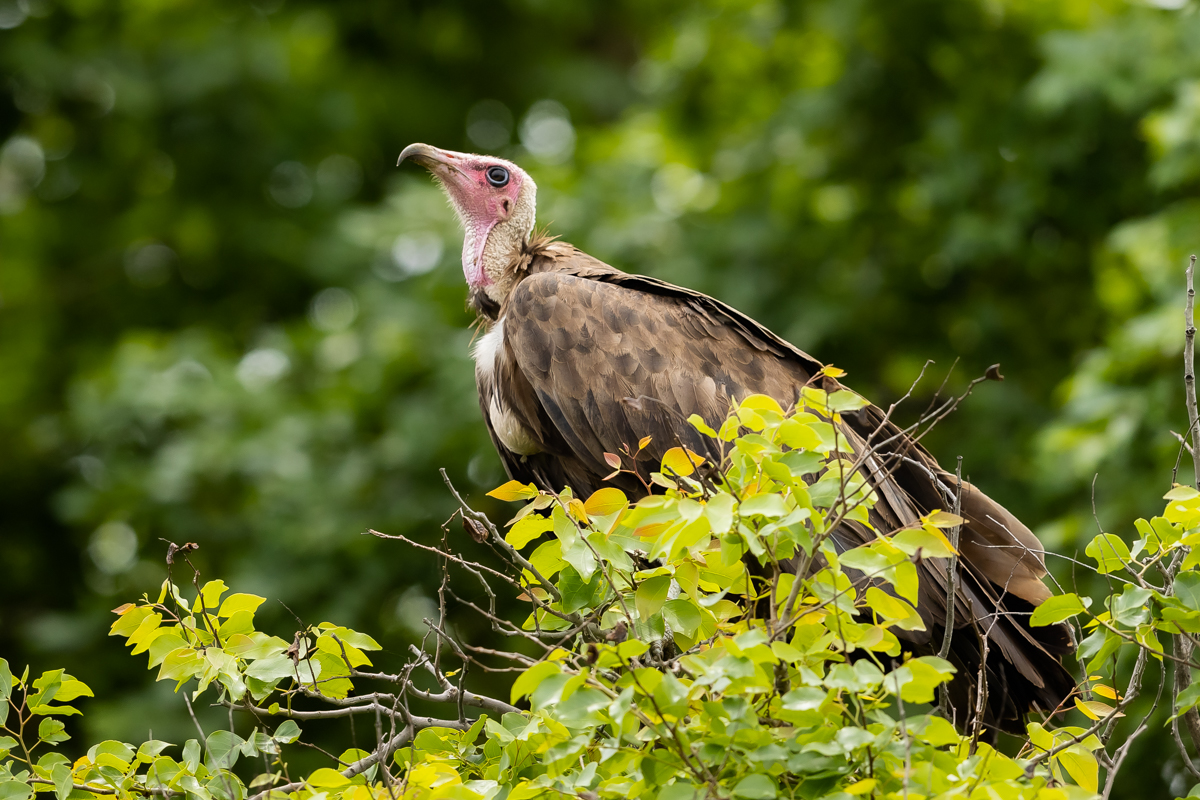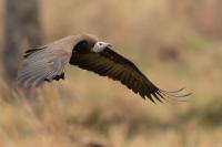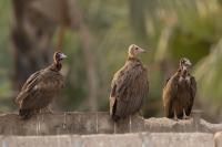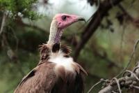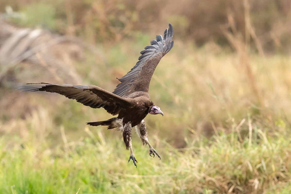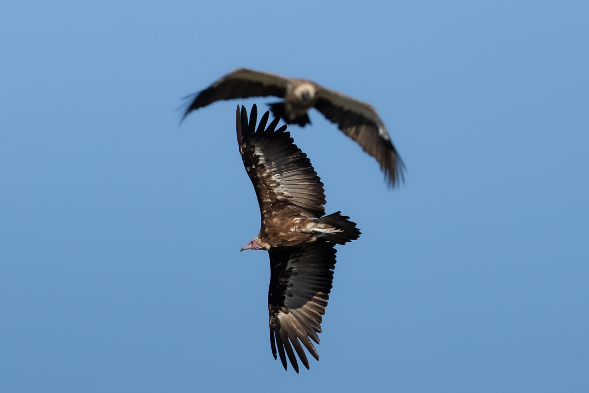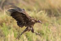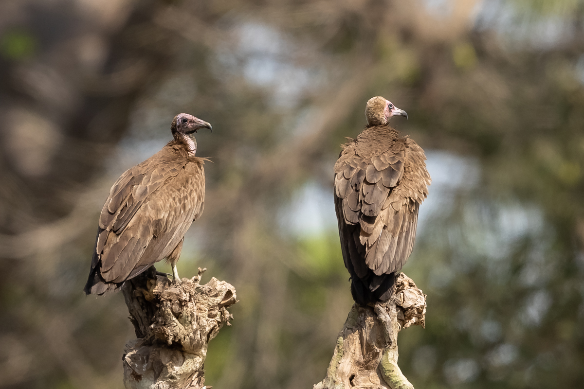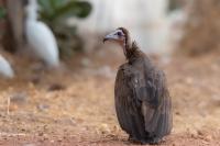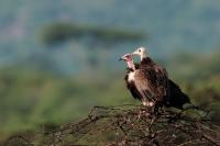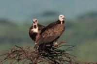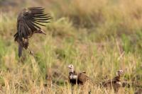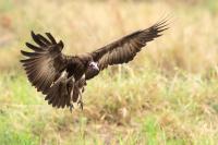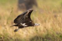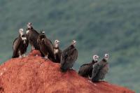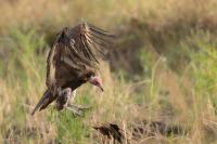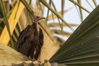 The hooded vulture unfortunately appeared only twice in front of our camera lenses. To make matters worse both the light and the distance were not favourable. It was necessary to use converters, what can be seen in the published pictures. It did not feed together with other vultures, it is of much more fine build. Its wingspan is approximately 1.7 meter and the weight is about 2 kg. The average body weight of the white-backed vulture is about 5 kilograms, the Rueppell's griffon - less than 8 kg, and the lappet-faced vulture can exceed 9 kilograms. Hooded vultures are classified as endangered species.