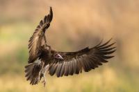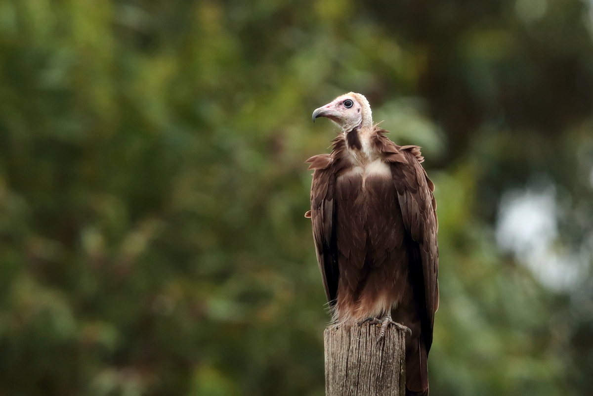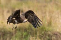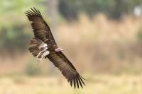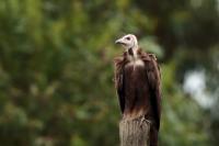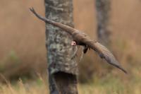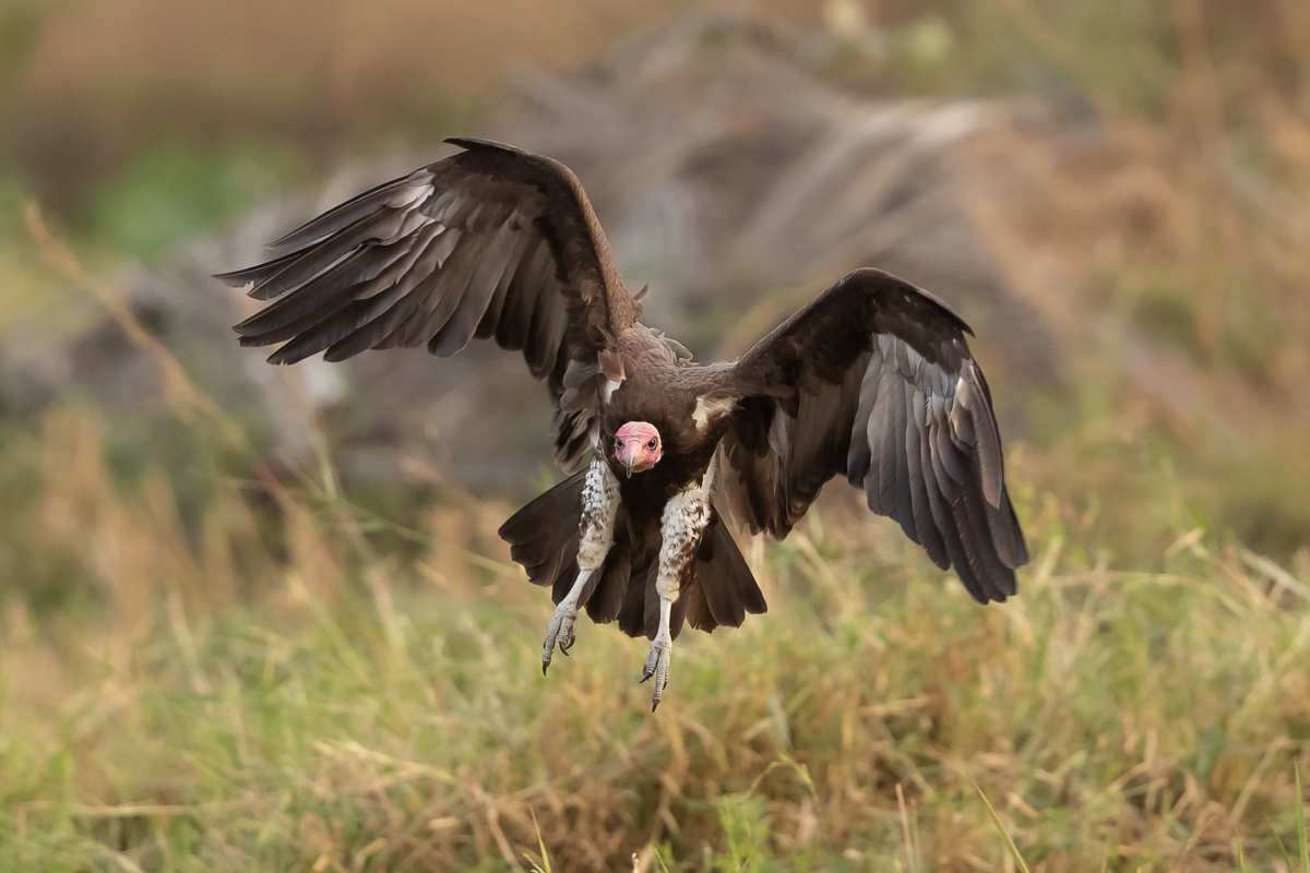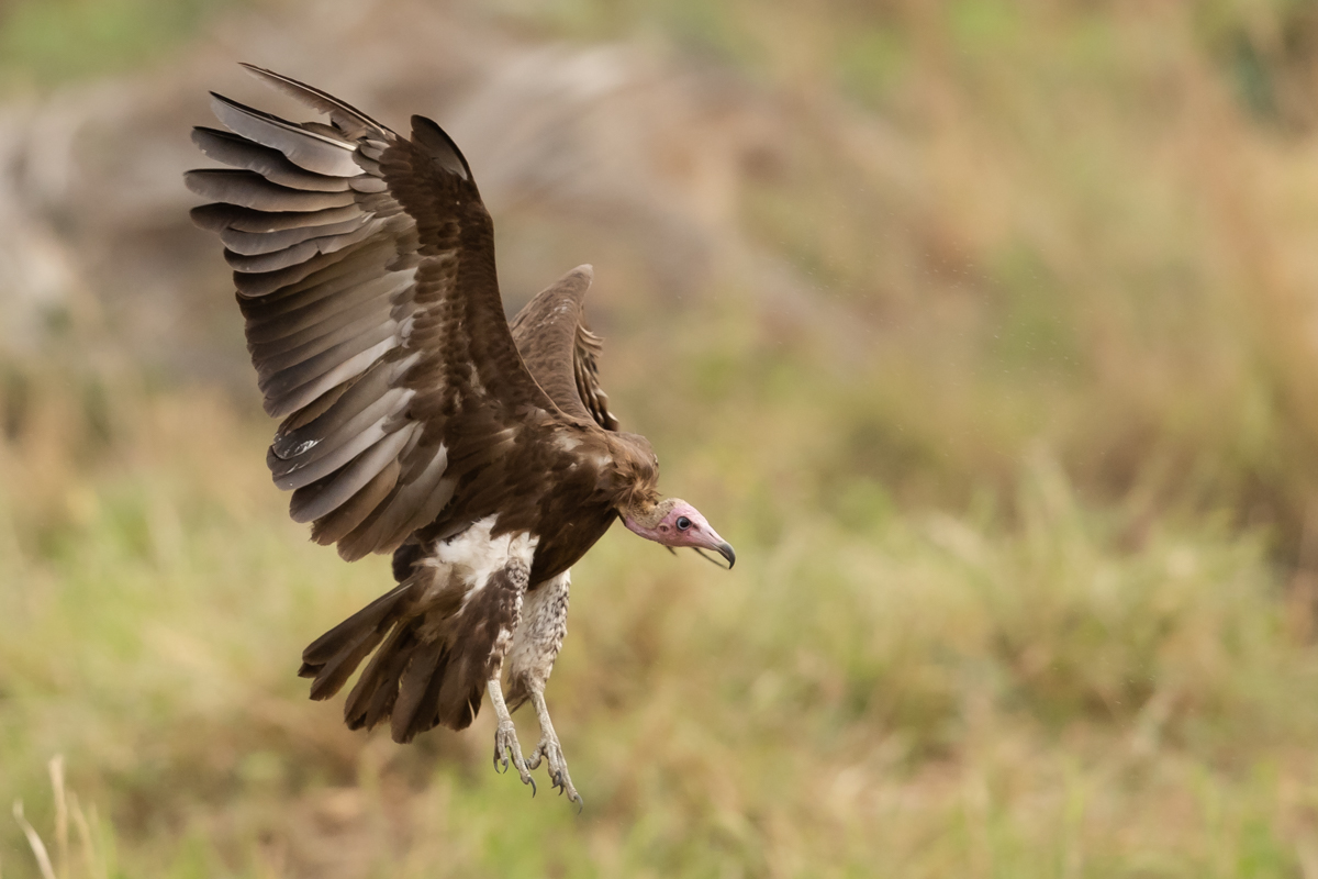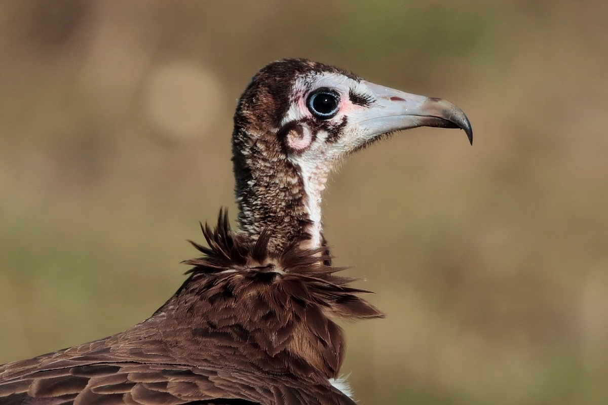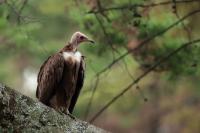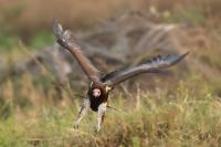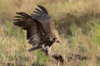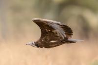 The hooded vulture unfortunately appeared only twice in front of our camera lenses. To make matters worse both the light and the distance were not favourable. It was necessary to use converters, what can be seen in the published pictures. It did not feed together with other vultures, it is of much more fine build. Its wingspan is approximately 1.7 meter and the weight is about 2 kg. The average body weight of the white-backed vulture is about 5 kilograms, the Rueppell's griffon - less than 8 kg, and the lappet-faced vulture can exceed 9 kilograms. Hooded vultures are classified as endangered species.