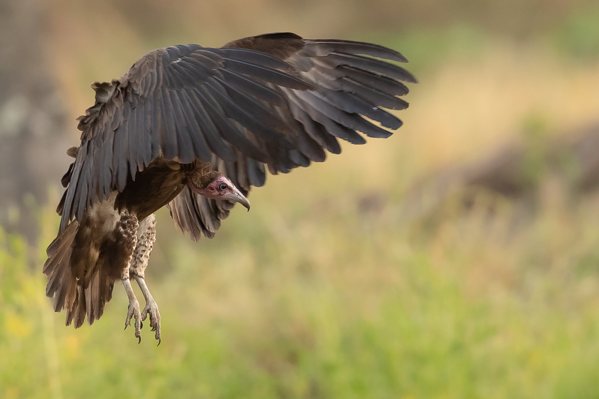 The presence and prevalence of the Hooded Vulture in Gambia is perhaps my biggest surprise after visiting the country. It is one of the endangered species. Its population is critically declining. In Gambia, it was found around human settlements. I guess I was lucky because brown vultures were almost always within 100 metres of my hotel room. I had the impression that they were common. The reason for this was the adjacent plot of land to the hotel grounds where food scraps were dumped. It was interesting that such close proximity to humans was accepted by Hooded Vultures, Western Cattle Egret and Pied Crow, which appeared there in great numbers. The Yellow-billed Kite and Black Kites, which were also present in the area in considerable numbers, were already keeping a greater distance and I didn’t observe them there. They kept a bit further away. Walking around the area in the afternoon, I noticed that before sunset, in a rather extensive wet meadow across the road by the hotel, birds were appearing there in large numbers to quench their thirst after a hot day. The soft afternoon light and the approaching vultures, Yellow-billed Kite and Black Kites were a veritable feast for the eyes and the opportunity to produce beautiful photographs in flight of these birds. After several attempts, a number of interesting shots emerged radically changing the content of the gallery of these species.