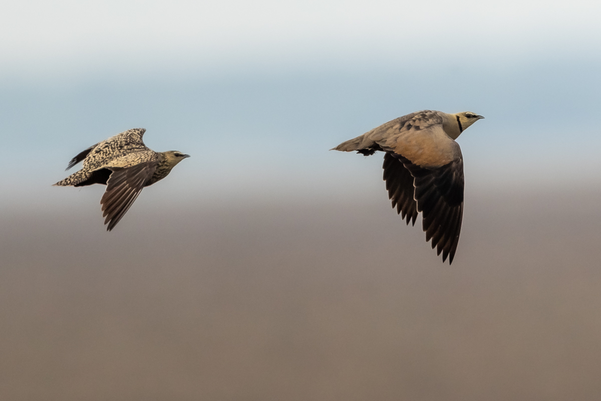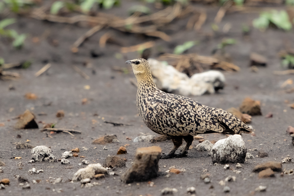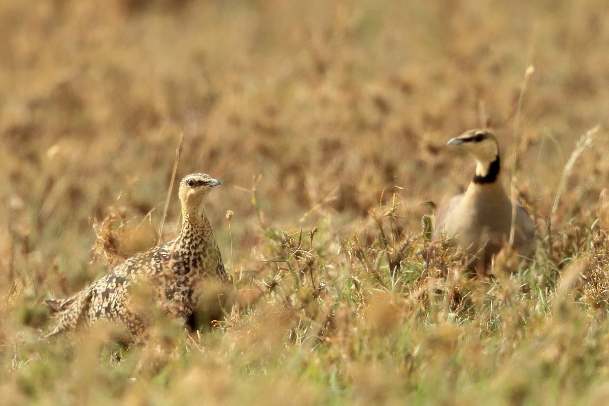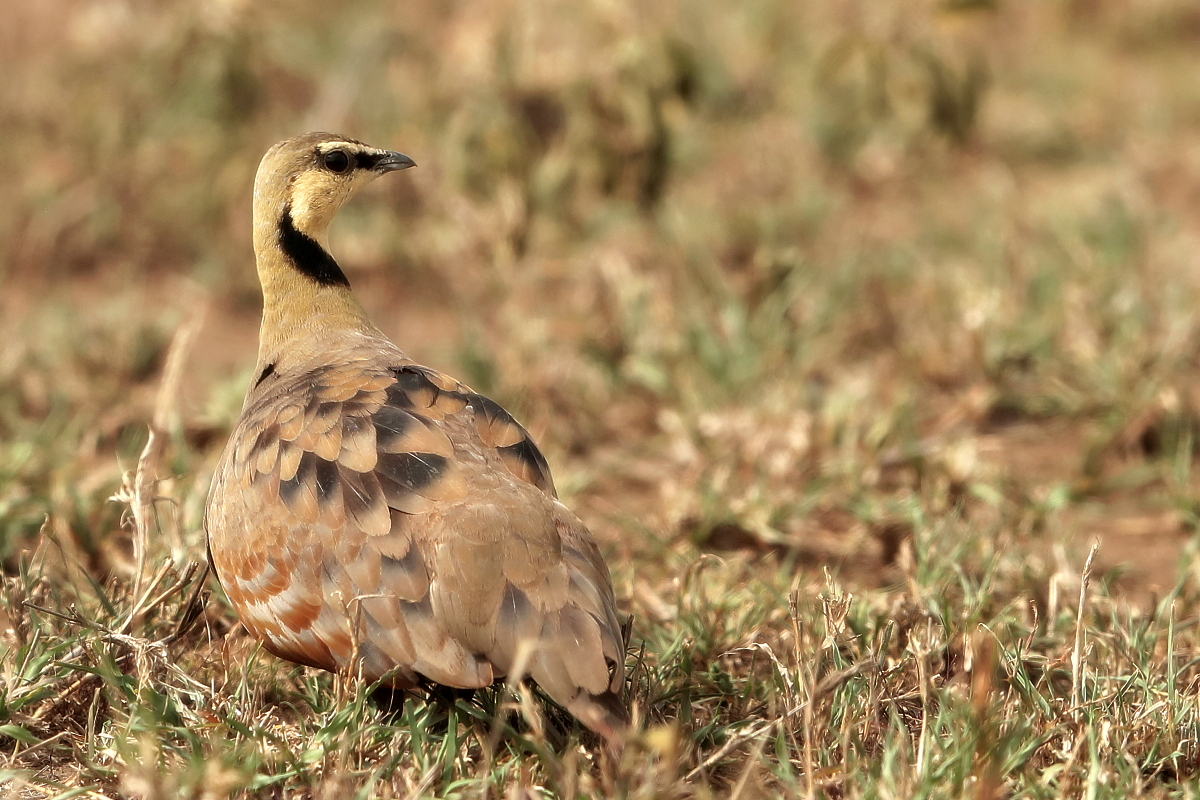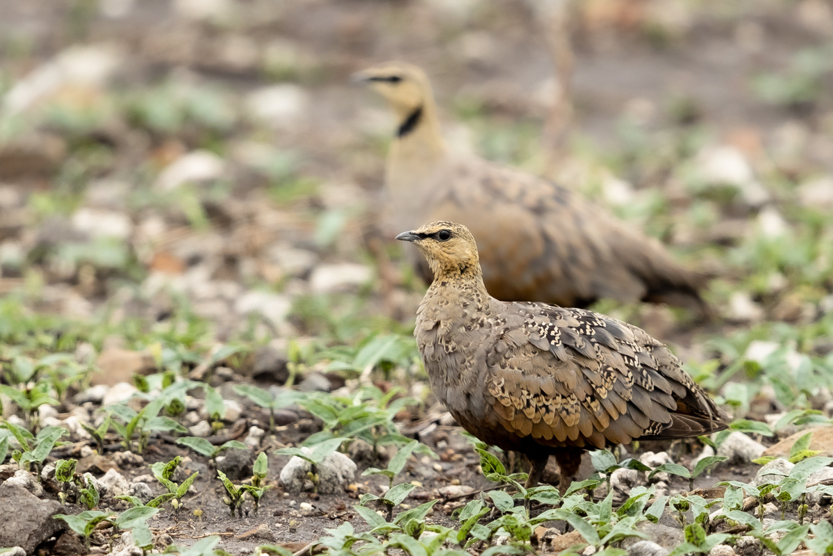 There are many reasons to be satisfied after my returning from Tanzania. One of them are new galleries of sandgrouses. I remember how hard it was to photograph my first sandgrouses in Fuerteventura or Pallas's Sandgrouse in Mongolia, then taking photos of those birds in Tanzania was a piece of cake. Well, maybe not just like that, because you have to find them, but when driving all day, watching closely it is possible as you can see. It did not happen too often, but only when the birds were found  they made an easy object for us to photograph at least for a moment. Sometimes, when we saw sandgrouses we stopped for a longer time and waited for the birds, that calmly feeding took a good position for photos. Sometimes quite funny situations took place. People from another car passing nearby saw us waiting with lenses pointed to something. On safari, nobody would want to overlook anything, especially since sometimes impatience grows after the ineffective searching for lions. The car came up, our guide spoke the words "Nege nege" often repeated in situations like that - a smile appeared on their faces and they left. "Nege nege" simply means "BIRDS" in Swahili. I guess an ornithological trip to Tanzania is still a rarity. Most of the participants of expeditions to Africa are going there to see elephants, giraffes, rhinos, zebras, in other words, all these well-known animals. Well, how it was with my sandgrouses. It was amazing in Africa all that abundance of animals. When driving among lush greenery, every now and then some animals appear around. But we decide to drive up a bit higher, up the hill near the lake. Beautiful view, but a bit further after a quarter of an hour a completely different vegetation can be seen. Stony ground, not many grasses or shrubs and among them a number of sandgrouses. Really great shooting, which in the case of these species is possible to perform probably only in winter (25-30 degrees the daytime temperature), due to  wintering. All in all three species of sandgrouses (chestnut-bellied, black-faced and yellow- throated) were photographed. This text is common to these three start galleries.