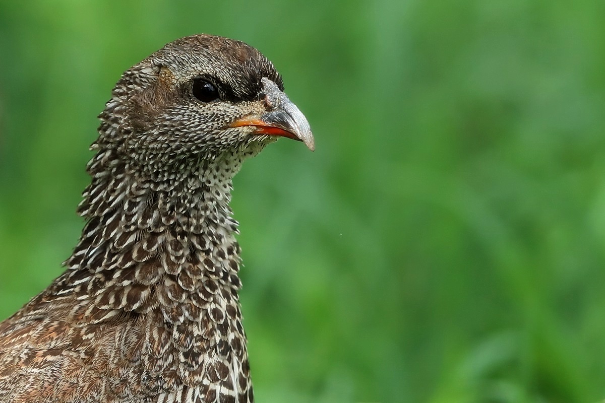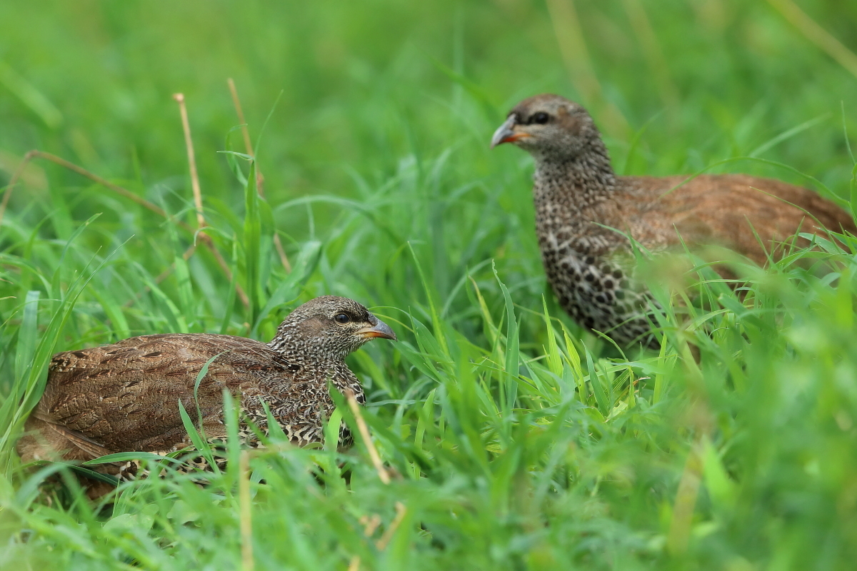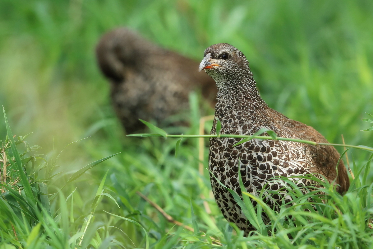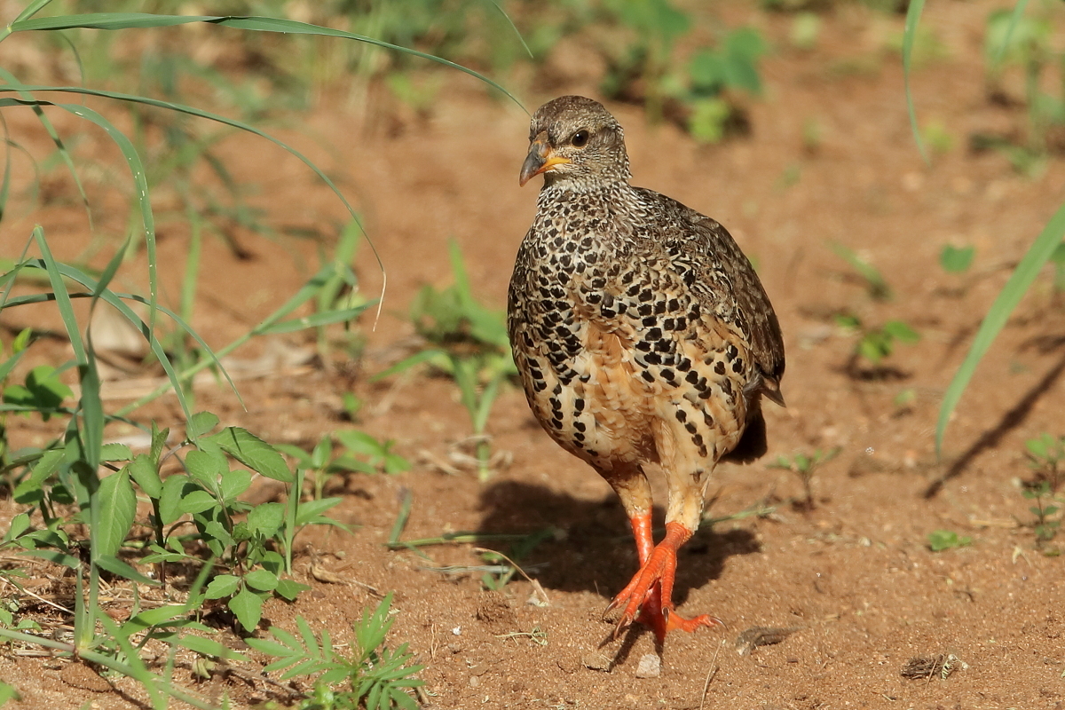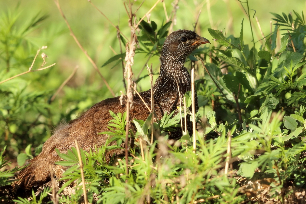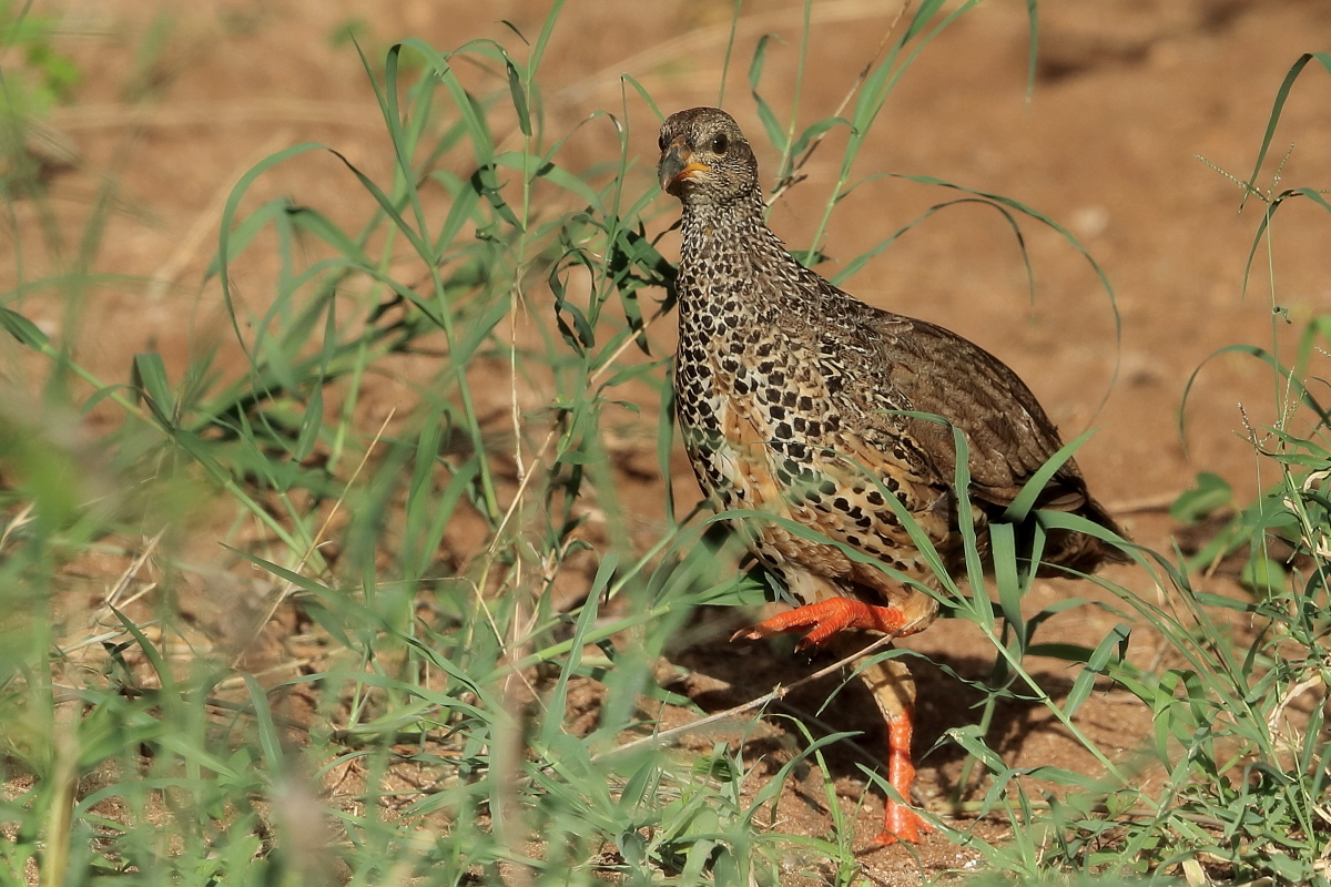 If I managed to avoid mistakes in identification, seven species of francolines were photographed in Tanzania (handsome francolin, red-necked spurfowl, crested francolin, coqui francolin, Hildebrandt's francolin, grey-breasted spurfowl and yellow-necked spurfowl - a passage common to all these galleries). We joked that a day without a francolin was a lost day. They were appearing every so often and were quite skittish. Sometimes patience paid off as the birds came out of the thicket and better photos were taken. In South Africa during the entire stay there were only three encounters with three species of francolines, and the galleries that were created then belong to poor, documentary ones. In Tanzania on many occasions we managed to photograph more species and take more interesting photos.