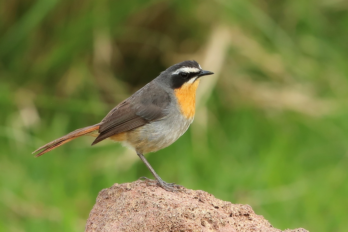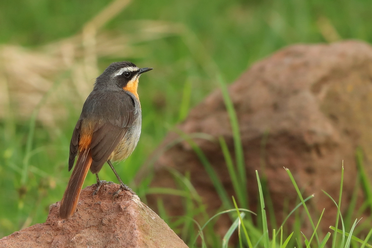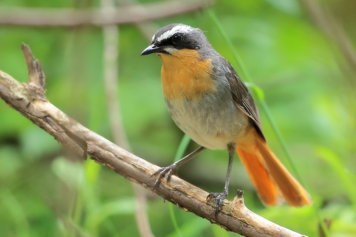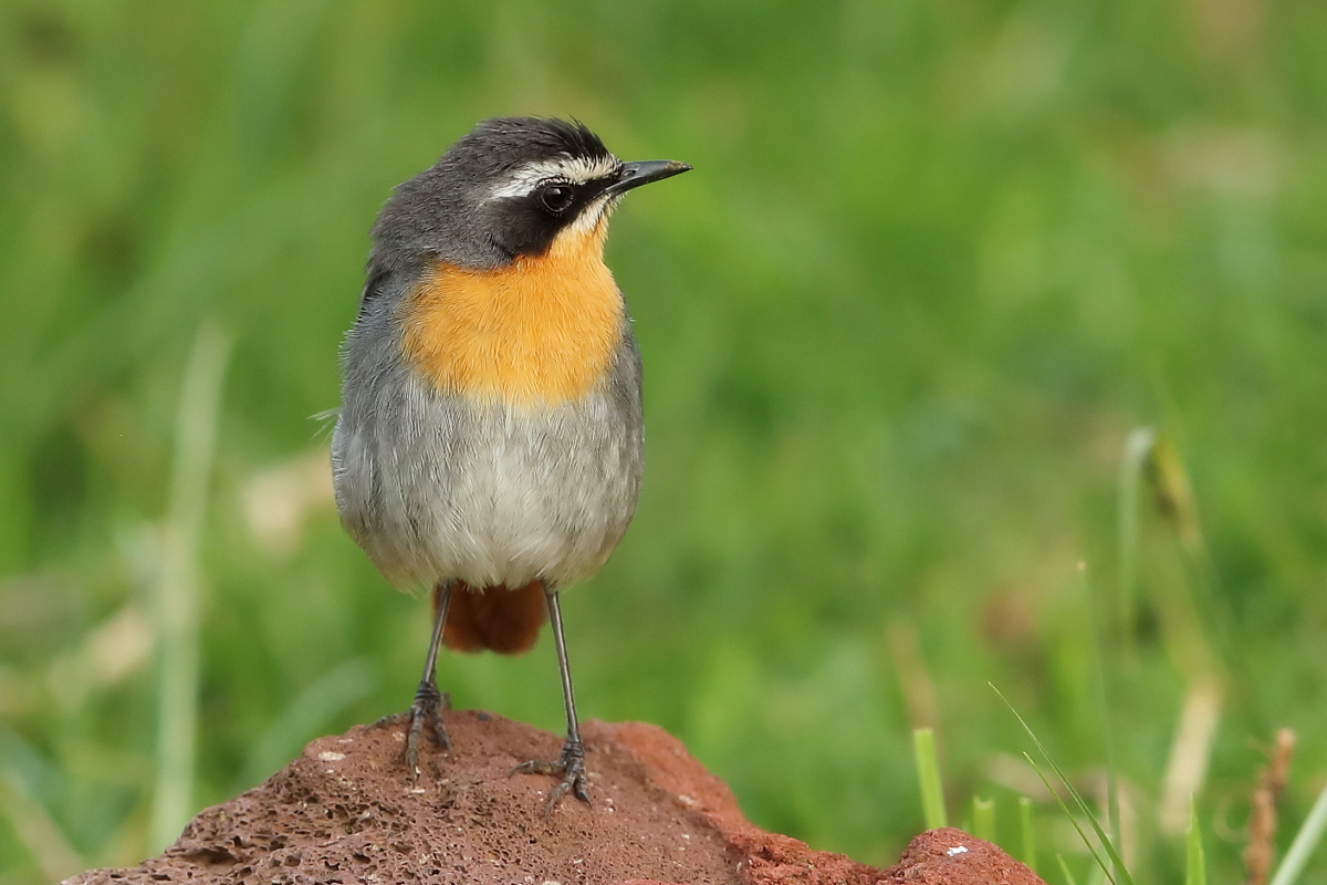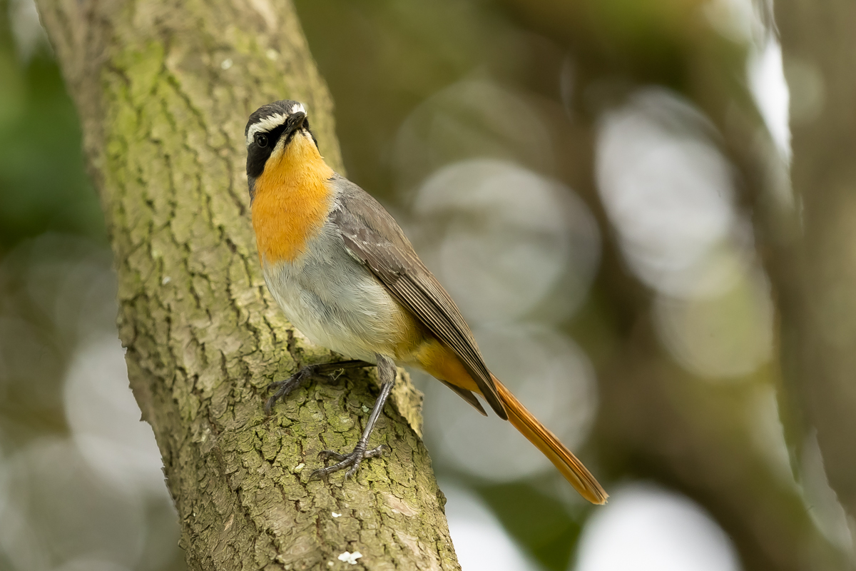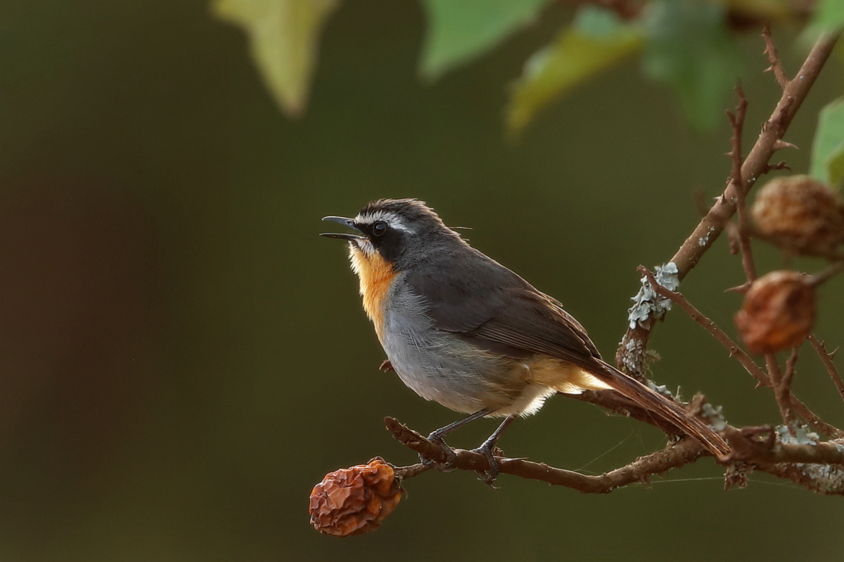Well, I have already had opportunities to photograph birds in various places and strange circumstances, but having been protected by a security guard equipped with a kalashnikov - not so far. But everything has to happen for the first time. This situation took place in Tanzania. We came to the campsite, which this time turned out to be a small lawn located among trees at an altitude of about 2,600 meters. Well, except for grass and beautiful greenery there was no tourist infrastructure. But to have an interesting portfolio  from Africa one have to visit different places and sometimes endure inconveniences. Apart from such attractions as a bodyguard who was supposed to guard us against the buffalos, there were birds everywhere of course. Anyway, we did not see any buffalo there, and at such height, with steep slopes it was doubtful whether they could be found there in the area. Oh, maybe our guard had quite different objective accompanying us. But it did not bother us. The birds were what was important to us, and that there were other species than those encountered earlier. While watching patiently for several hours among bushes, near the inflorescence one could see sunbirds, cape robin-chats, mountain greenbuls, cinnamon bracken-warblers, streaky seedeaters, mountain thrushes, broad-ringed white-eyes, brown-backed woodpeckers and Ethiopian boubous emerging every so often. Interestingly, the birds were less cautious over time and approached closer and closer. You can hear also a recording of several voices of birds from this place. This description is common, assigned to all species mentioned in the text.