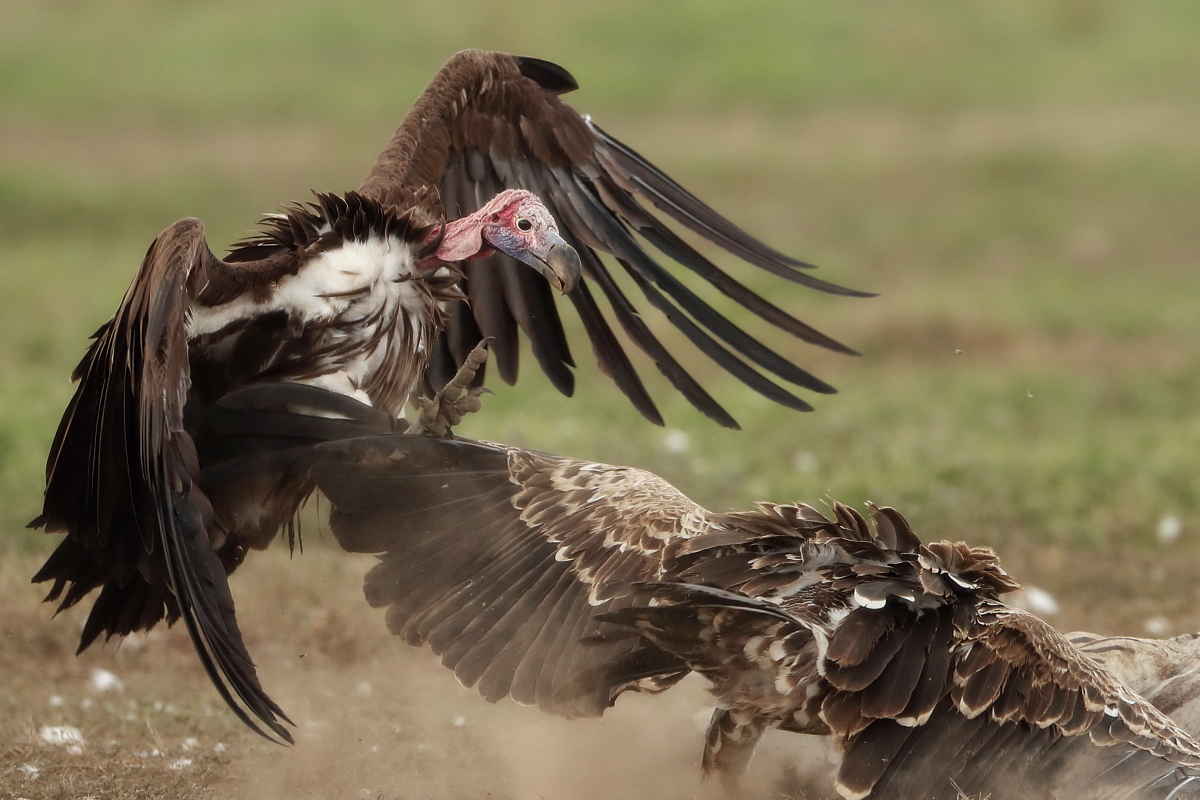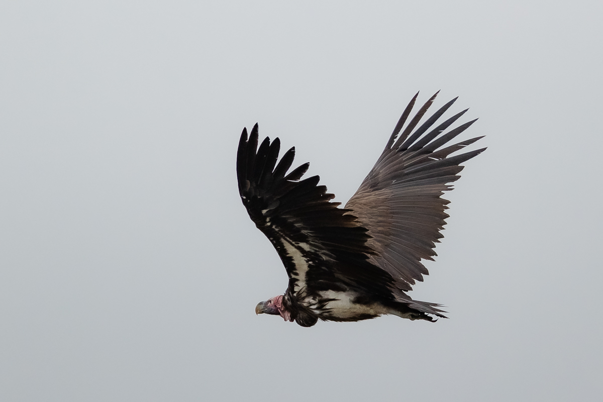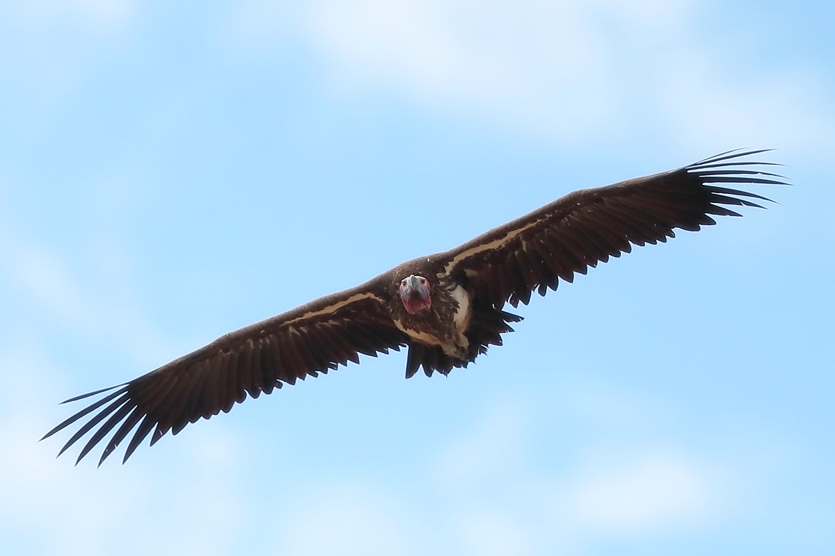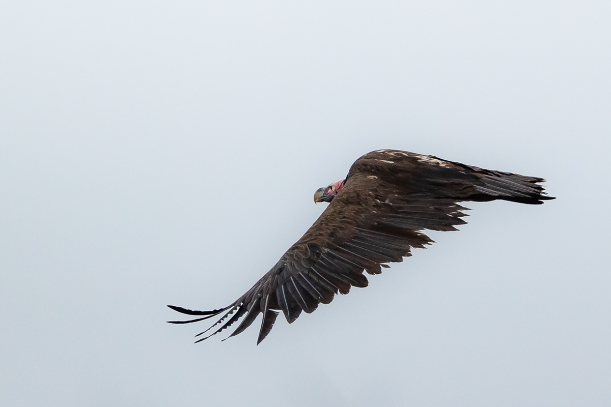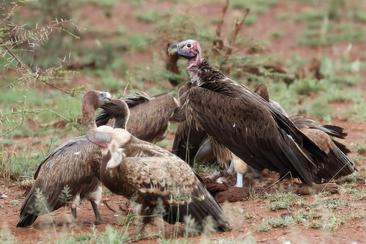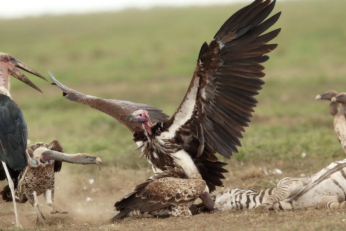 It would be a fact that we always encountered a rueppell's griffon, a lappet-faced vulture and an African white-backed vulture together. However, the most numerous were African white-backed vultures. They were the first at the carrion and instantly started the meal. But as they had already done so, the rueppell's griffon were almost immediately appearing at the meal. They explained quite quickly and effectively to African vultures that it was their turn now. Sometimes they fed together. All this was watched by the Arabian vulture. The vulture assessed the situation slow and easy. But when it came to the conclusion that it was time to start a meal then no creature dared to "discuss" it. It is the largest of African vultures. It happened twice that we found vultures near to carrion. Once zebras and once hyenas. So many pictures were taken that I had enough material for the reconstruction of the gallery of the African white-backed vulture and to build a new gallery of the Arabian vulture and the rueppell's griffon. The enclosed sound recording, however, mostly is the sound of African white-backed vultures, although there may also be voices of Arabian vultures. The text is common to these three species, and the soundtrack is enclosed to the gallery of the White-backed Vultur.
