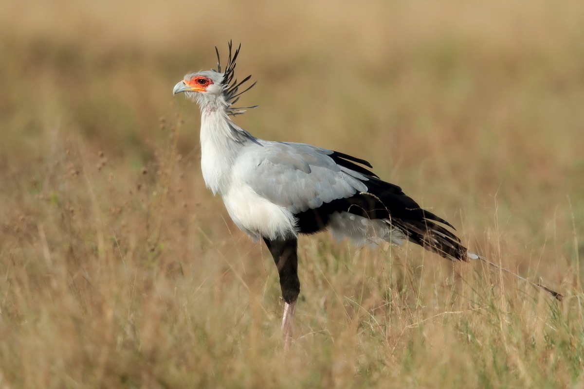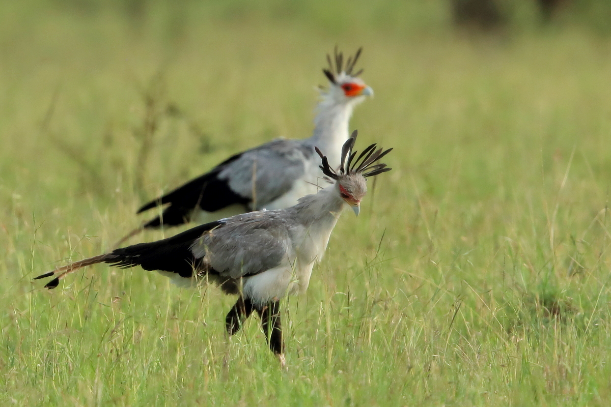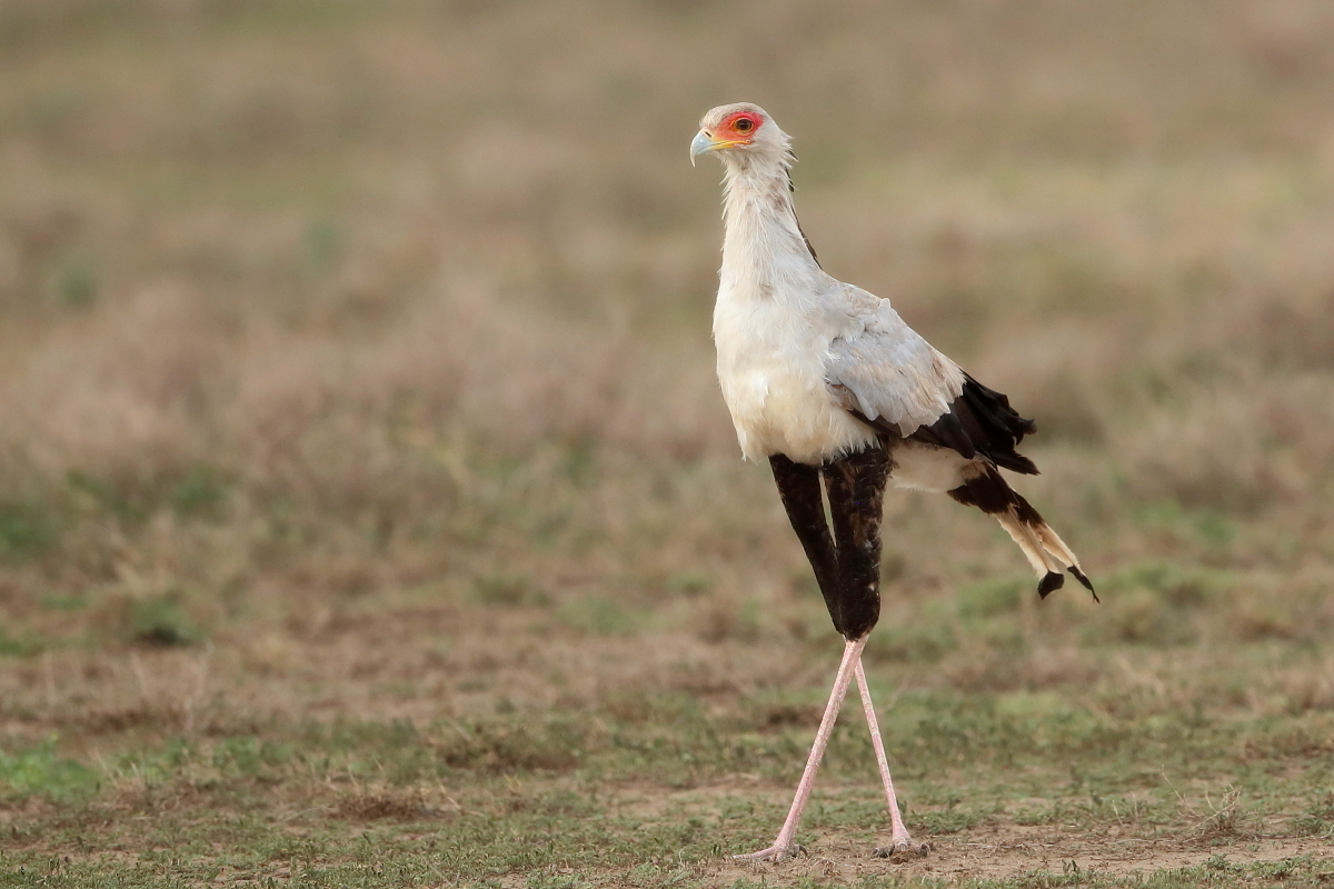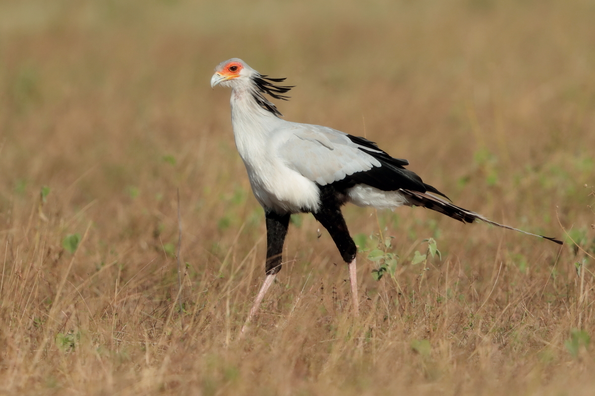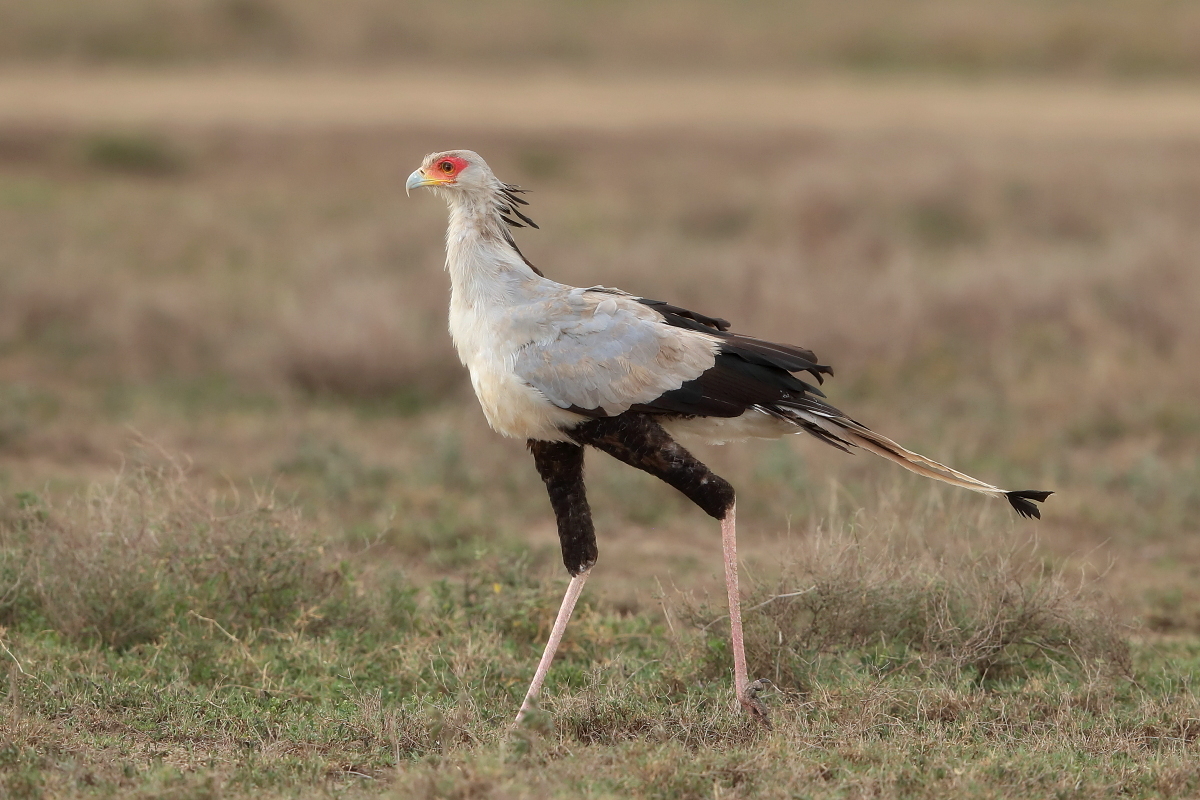 For a long time my head was occupied with the desire to have my own secretary bird's gallery. In South Africa we were already close to a nest, but it later turned out to be abandoned by a pair of secretary birds. The secretary bird is a great individualist among the birds, maybe this is the reason for such fascination, the desire to have my own gallery of the bird, like with another great individualist - the bearded vulture. Secretary birds are found only in Africa, south to the Sahara, in flat, grassy, savanna areas. The bird traverses the savannah like a stroller, occasionally hitting with its foot to scare away insects. This is a specific way of hunting, but it can also preys on lizards and snakes. Stilted legs are especially helpful when looking for food in high grass. As a rule we saw two hunting secretary birds in a short distance one from another. I do not know whether it was a matter of family ties or simply it was a more effective way of hunting for them, and maybe a more secure one?