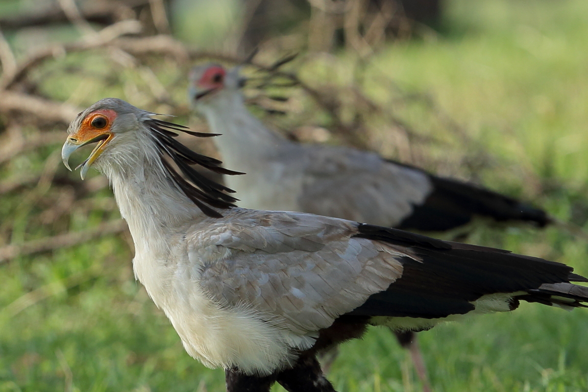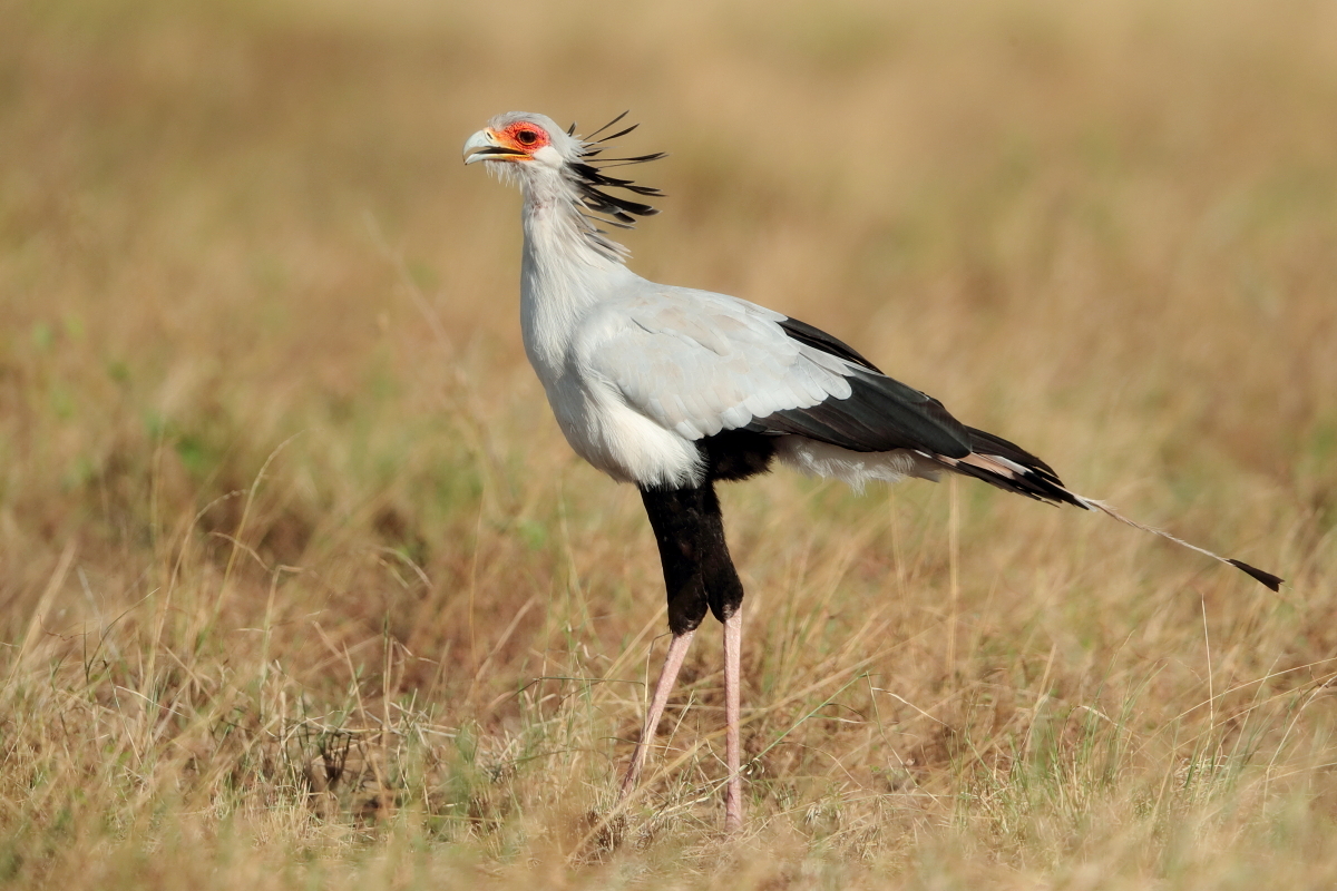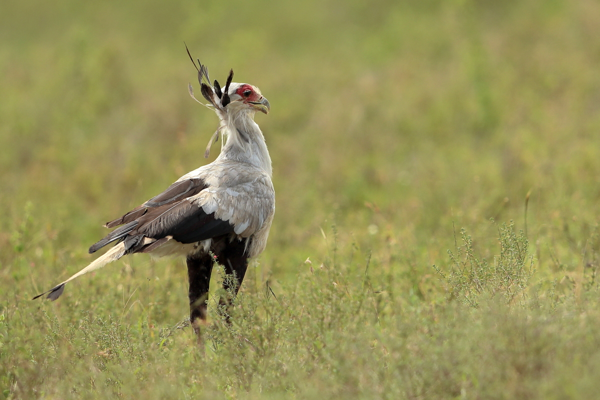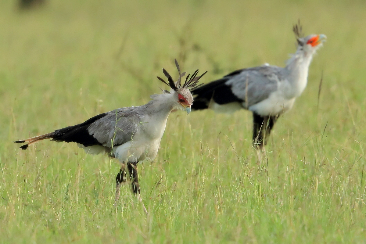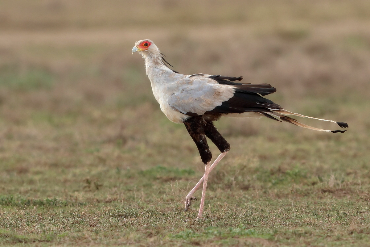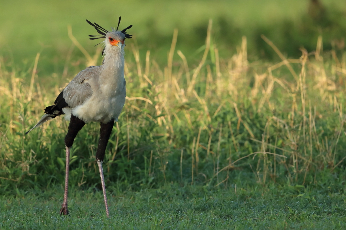 For a long time my head was occupied with the desire to have my own secretary bird's gallery. In South Africa we were already close to a nest, but it later turned out to be abandoned by a pair of secretary birds. The secretary bird is a great individualist among the birds, maybe this is the reason for such fascination, the desire to have my own gallery of the bird, like with another great individualist - the bearded vulture. Secretary birds are found only in Africa, south to the Sahara, in flat, grassy, savanna areas. The bird traverses the savannah like a stroller, occasionally hitting with its foot to scare away insects. This is a specific way of hunting, but it can also preys on lizards and snakes. Stilted legs are especially helpful when looking for food in high grass. As a rule we saw two hunting secretary birds in a short distance one from another. I do not know whether it was a matter of family ties or simply it was a more effective way of hunting for them, and maybe a more secure one?