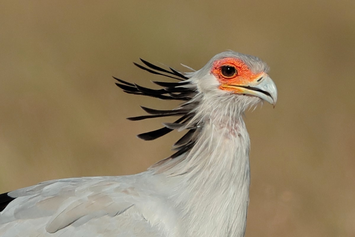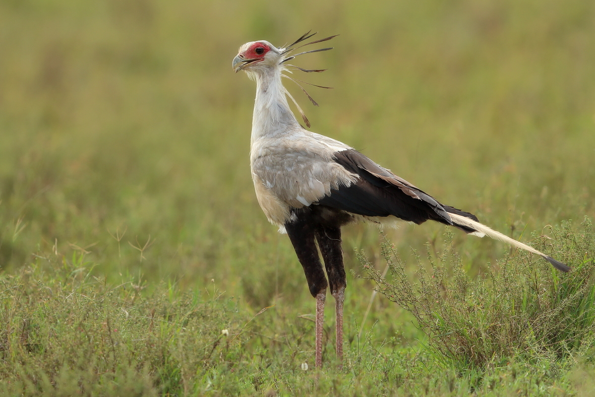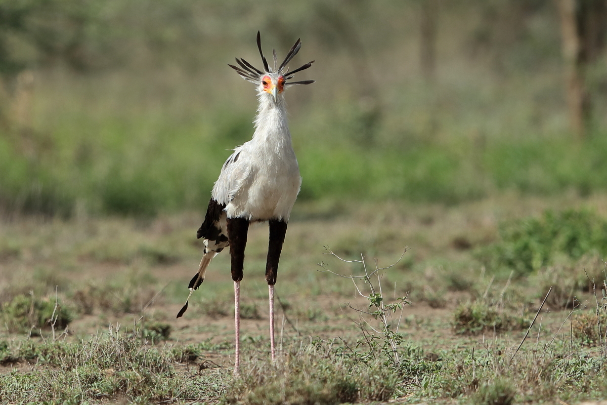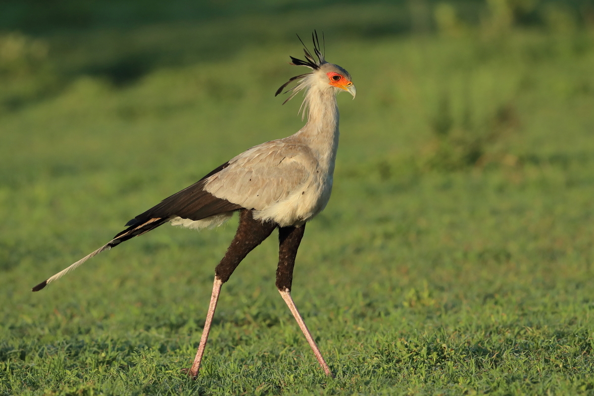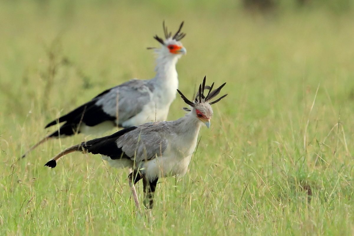 For a long time my head was occupied with the desire to have my own secretary bird's gallery. In South Africa we were already close to a nest, but it later turned out to be abandoned by a pair of secretary birds. The secretary bird is a great individualist among the birds, maybe this is the reason for such fascination, the desire to have my own gallery of the bird, like with another great individualist - the bearded vulture. Secretary birds are found only in Africa, south to the Sahara, in flat, grassy, savanna areas. The bird traverses the savannah like a stroller, occasionally hitting with its foot to scare away insects. This is a specific way of hunting, but it can also preys on lizards and snakes. Stilted legs are especially helpful when looking for food in high grass. As a rule we saw two hunting secretary birds in a short distance one from another. I do not know whether it was a matter of family ties or simply it was a more effective way of hunting for them, and maybe a more secure one?