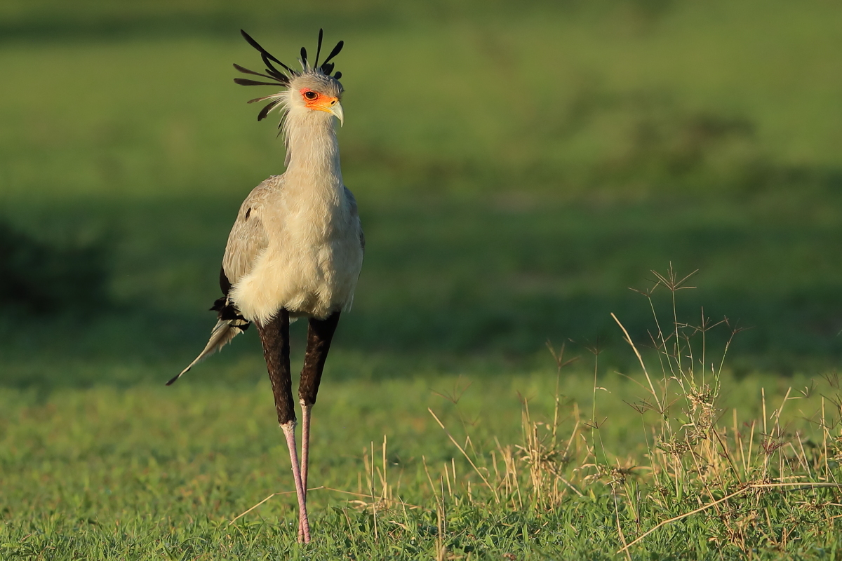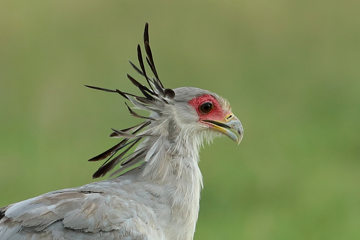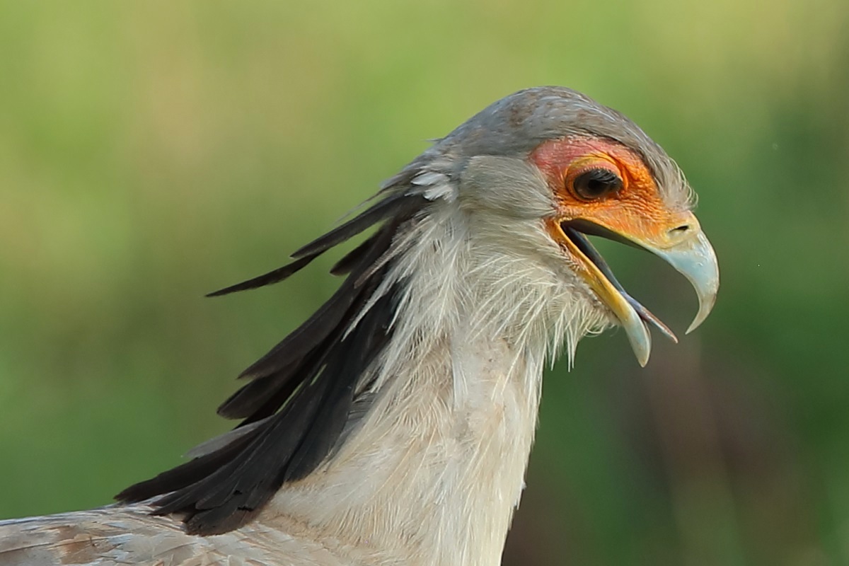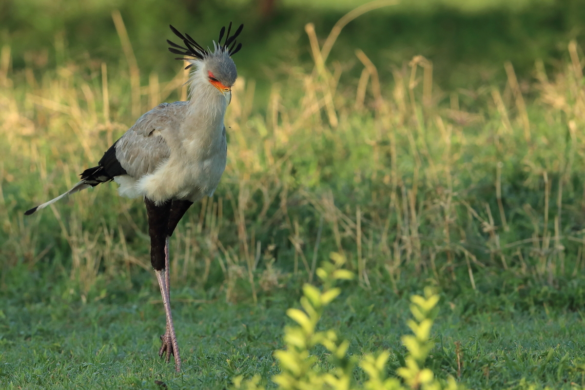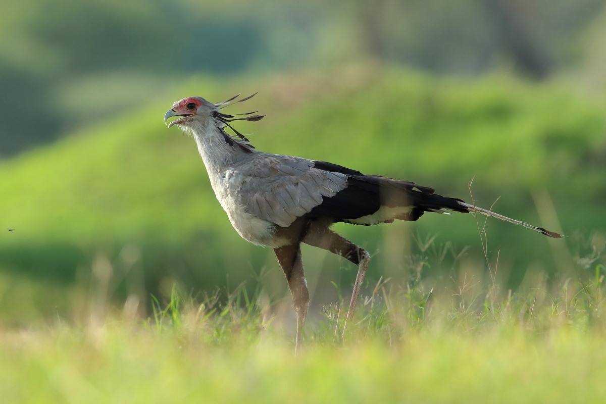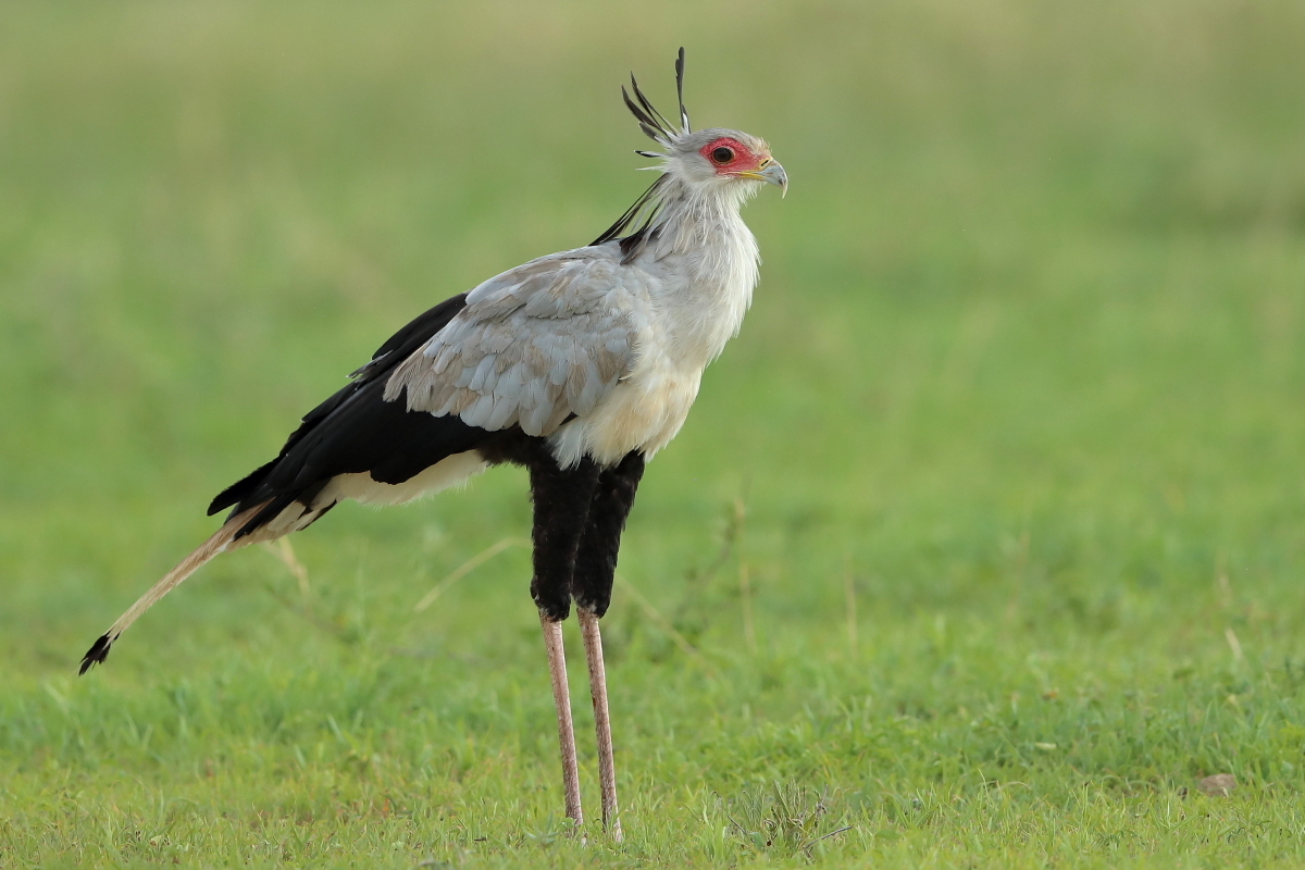 For a long time my head was occupied with the desire to have my own secretary bird's gallery. In South Africa we were already close to a nest, but it later turned out to be abandoned by a pair of secretary birds. The secretary bird is a great individualist among the birds, maybe this is the reason for such fascination, the desire to have my own gallery of the bird, like with another great individualist - the bearded vulture. Secretary birds are found only in Africa, south to the Sahara, in flat, grassy, savanna areas. The bird traverses the savannah like a stroller, occasionally hitting with its foot to scare away insects. This is a specific way of hunting, but it can also preys on lizards and snakes. Stilted legs are especially helpful when looking for food in high grass. As a rule we saw two hunting secretary birds in a short distance one from another. I do not know whether it was a matter of family ties or simply it was a more effective way of hunting for them, and maybe a more secure one?