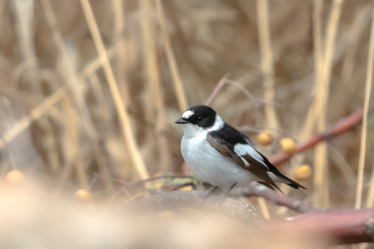 Undoubtedly, I am very happy to have photographed this bird and it happened quite unexpectedly. At a distance of about 100 meters from my hotel there was a plowed field and an artificial pond. A few dozen meters from that place there was the back-office of the staff renovating the hotel.  And there in the bushes near the water I could calmly sit down hidden in the thicket and try to find out what would happen in such a quite urbanized area, if any birds would come to the water place. Two flycatchers appeared, I mean two species of flycatchers. At sunrise I frightened either striated heron or black-crowned night-heron. There were also European greenfinches, goldfinches, zitting cisticola, laughing doves, Eurasian collared doves, and many sparrows. A collared flycatcher (new species for me, belonging to Polish fauna) and spotted flycatcher were appearing every 20-25 minutes and some photos were taken, which initiated the gallery of the collared flycatcher, and significantly changed the gallery of the spotted flycatcher. Who would have thought, such a meeting, such photos in so busy, urbanized place!
