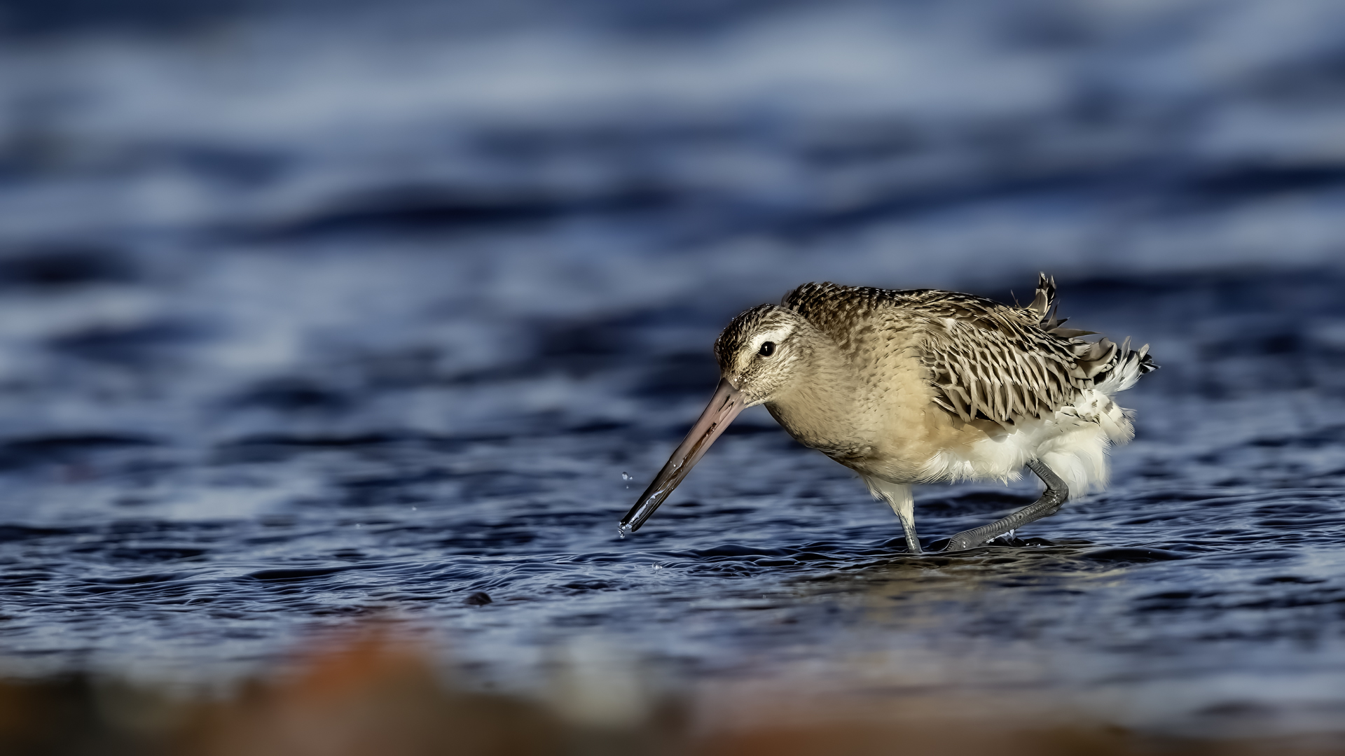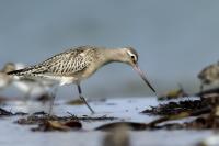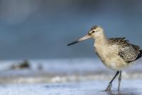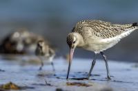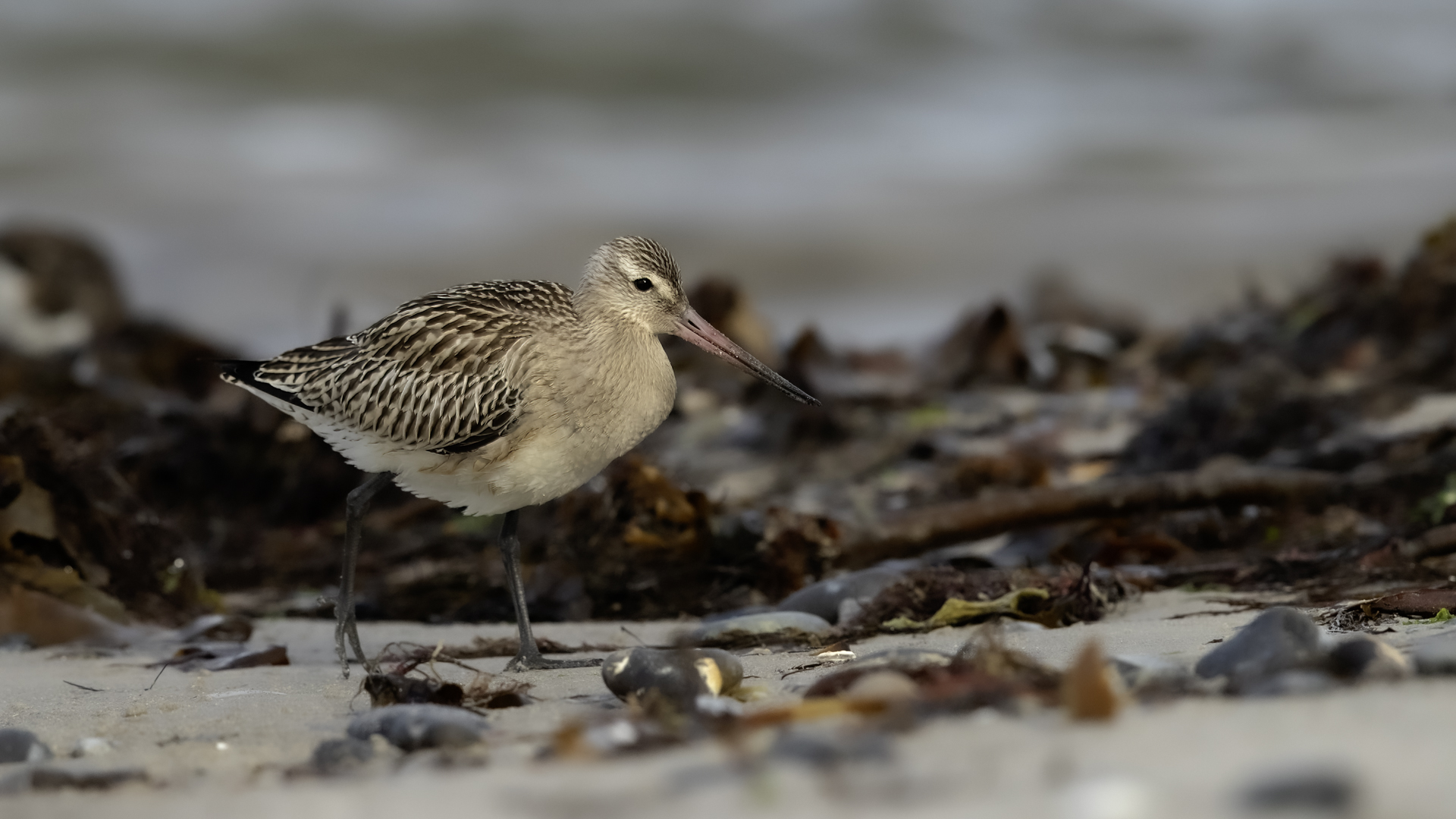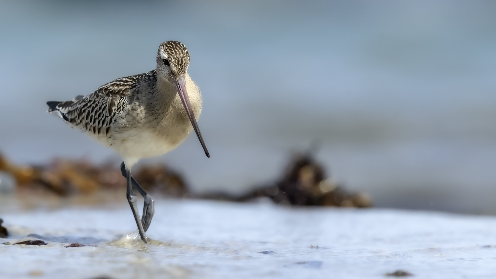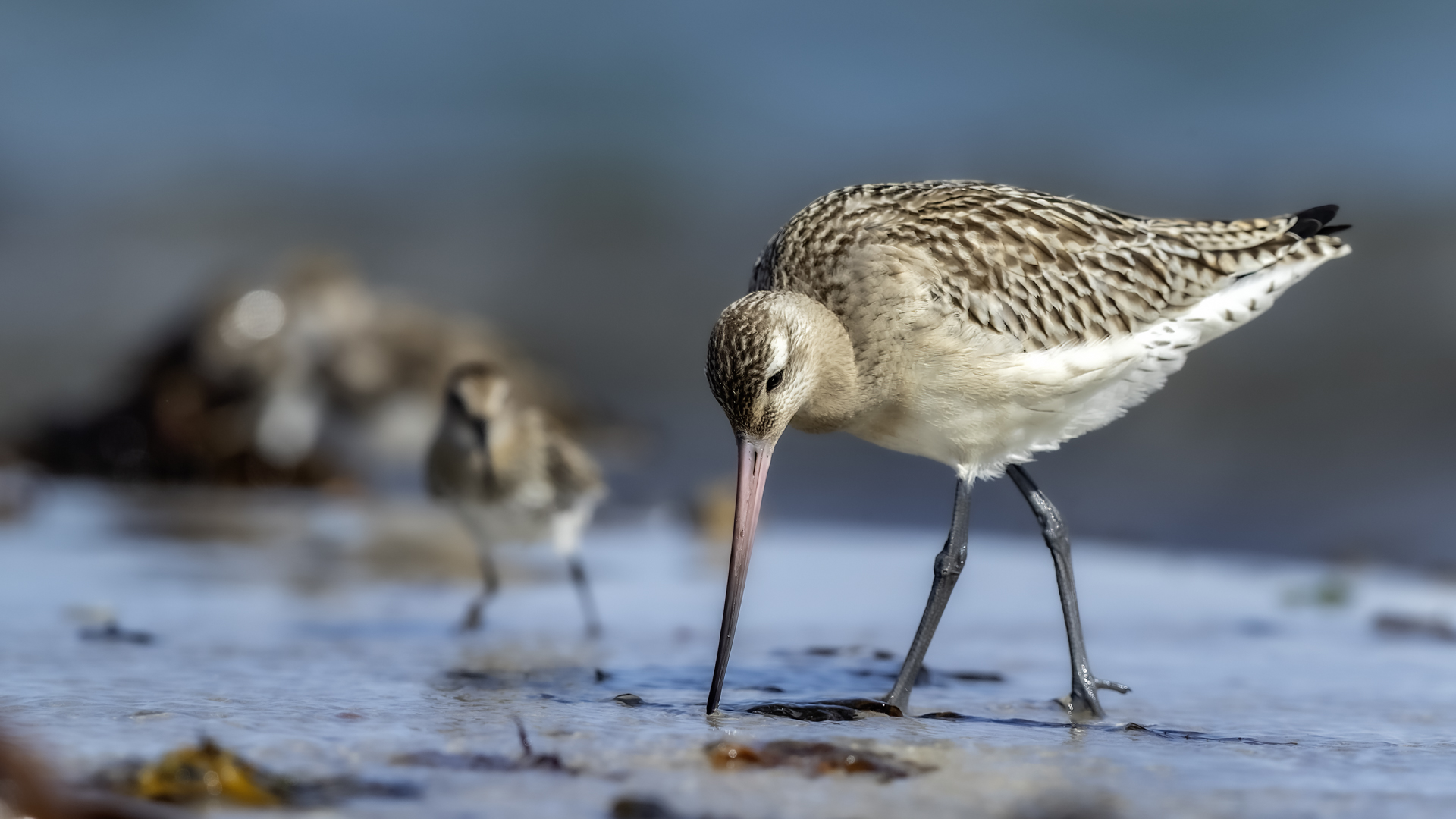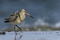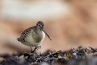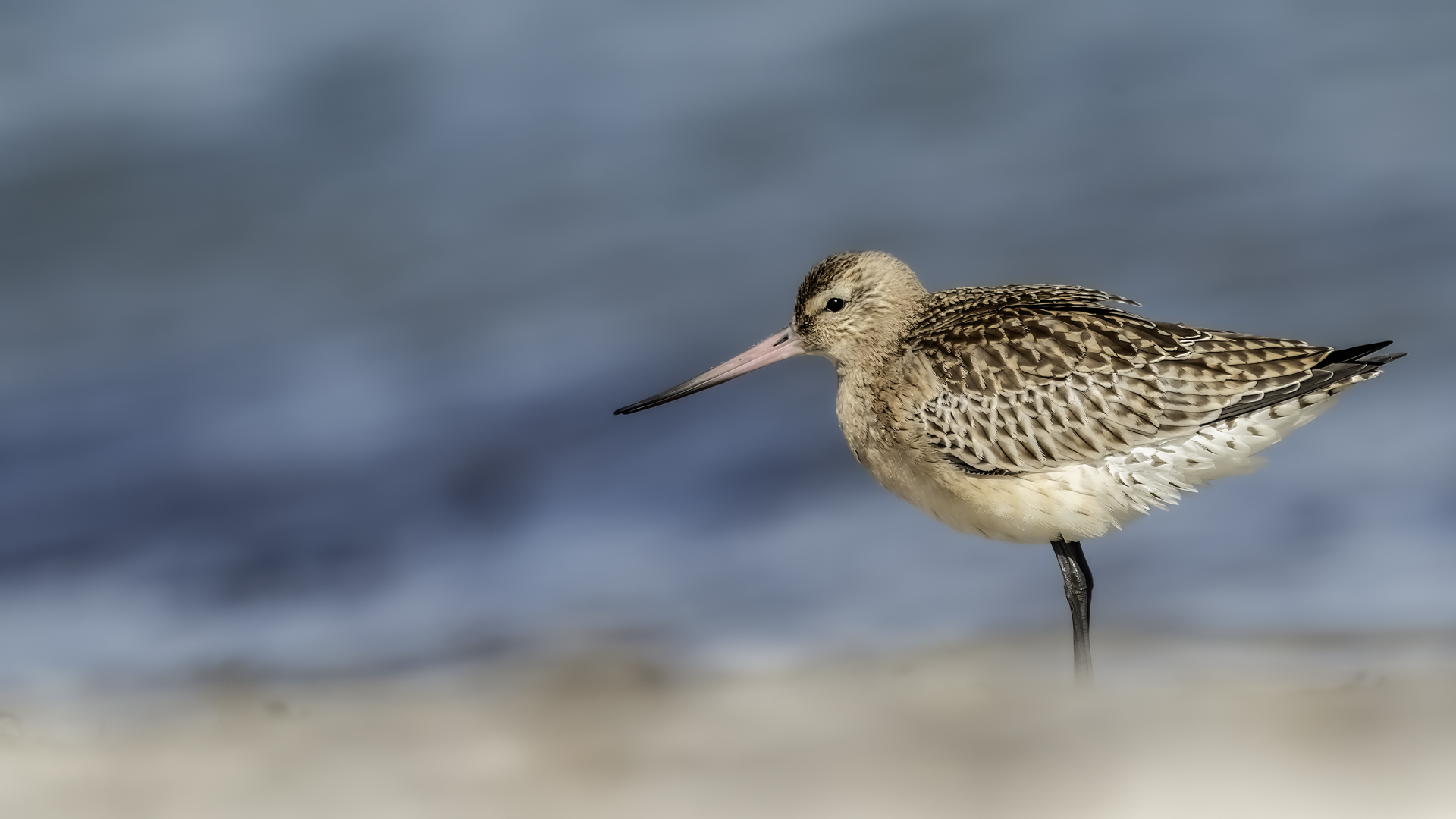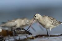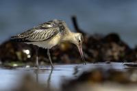 I have stopped counting how many times I was going out to the beach at sunrise in the hope of meeting a bar-tailed godwit. Although it is considered to be common species in Poland, still it is needed to be lucky to photograph it. Of course, taking pictures of this bird in Poland can be possible only when the birds are migrating, in our country it happens in April/May and August/October. There were really several reasons why I wanted to have my own pictures of a bar-tailed godwit. The two of them are its charm and my fascination with this tireless traveler. Tireless, as it holds an official record of the length of uninterrupted bird flight - 8 days and five hours. That much time it took the bar-tailed godwit female to cover a distance of 11.680 km. Well, I cannot help admiring this inconspicuous bird! The weight of the bar-tailed godwit is from 200 to 600 grams. The Earth is not too big for this bird to fly around when it can accomplish such passage. The third reason is that it belongs to the fauna of Poland. If it happens to you that you have the chance to observe the bar-tailed godwit, you can easily take photos, such as those presented, lying peacefully on the beach without any camouflage. The bar-tailed godwit, of course, keeps a distance of a few meters, but it is already enough for taking pictures. The bird when looking for food thoroughly penetrates the coastal bottom with its long beak, dipping into the water every so often. It is so busy that can sometimes get very close. So close that it not always fits in the camera's frame. Several not so short meetings with the bar-tailed godwit ended with the creation of photos for my gallery of this species. Finally!!!