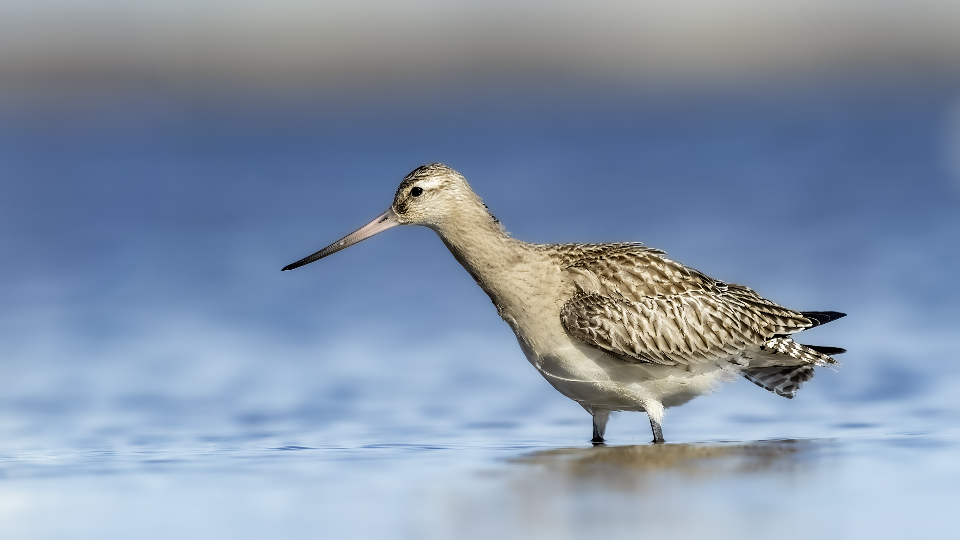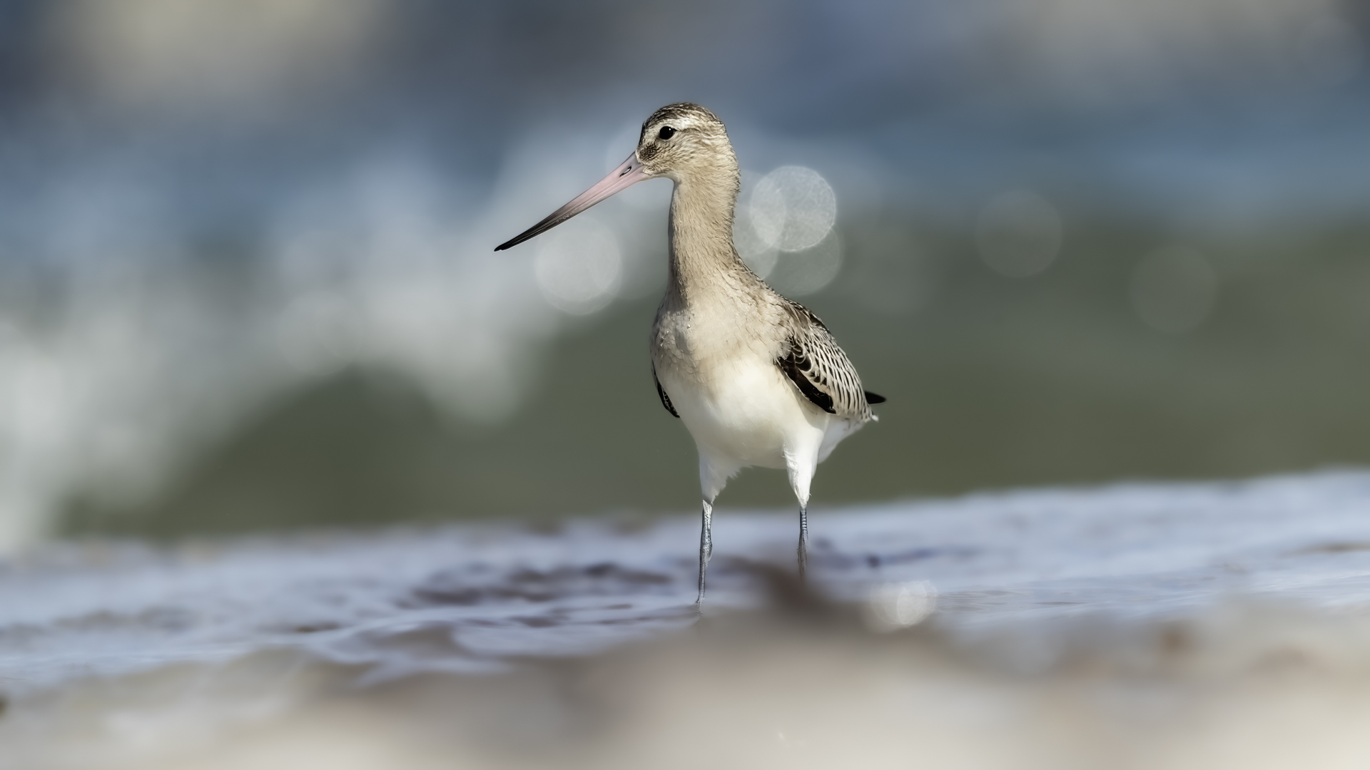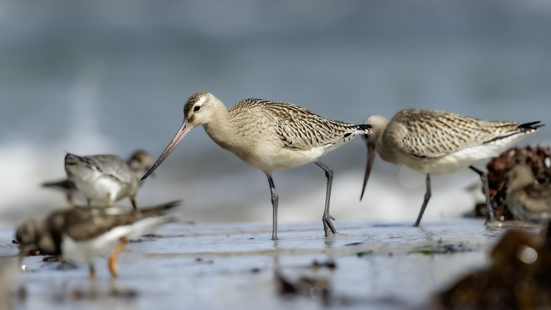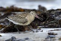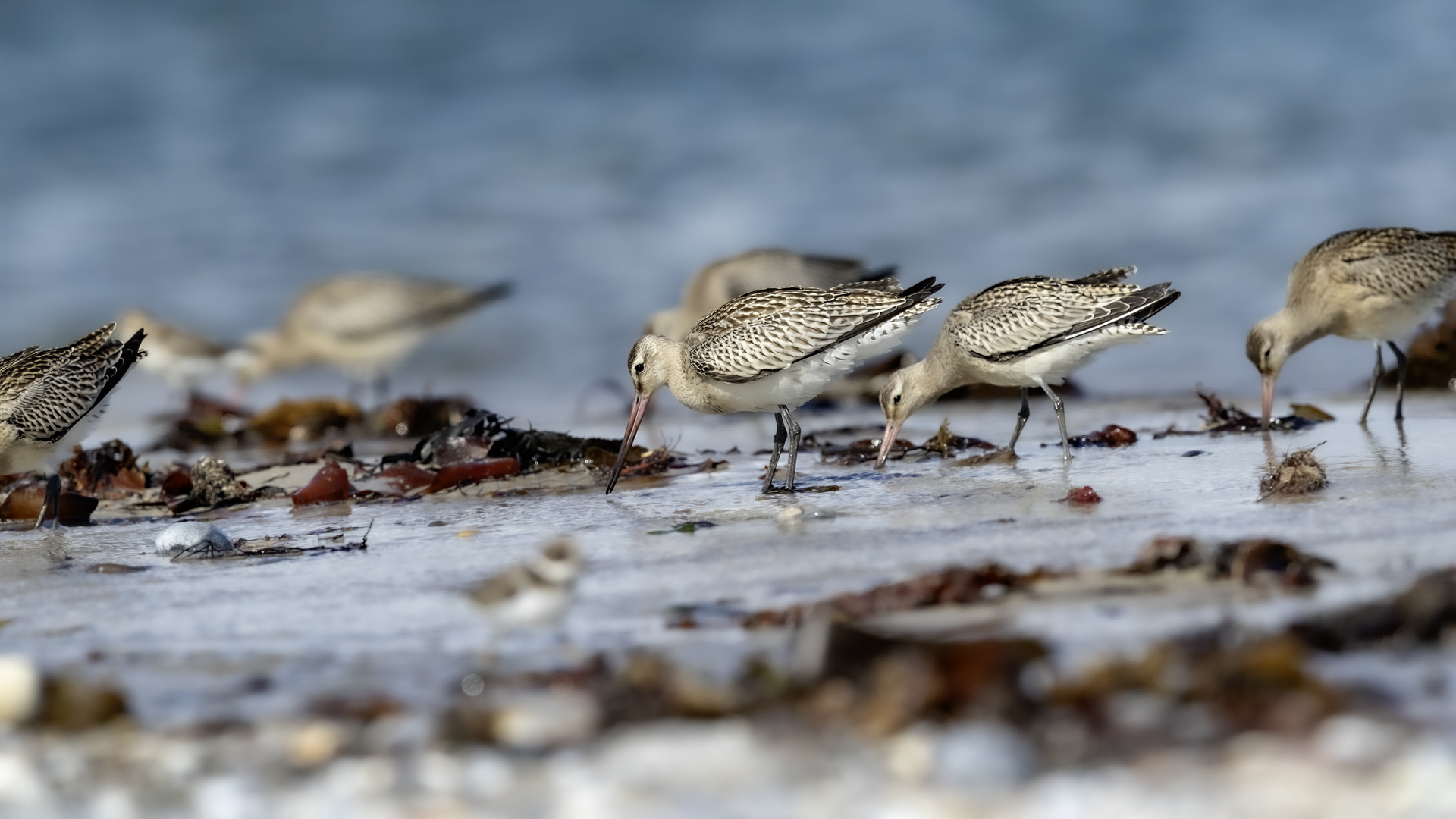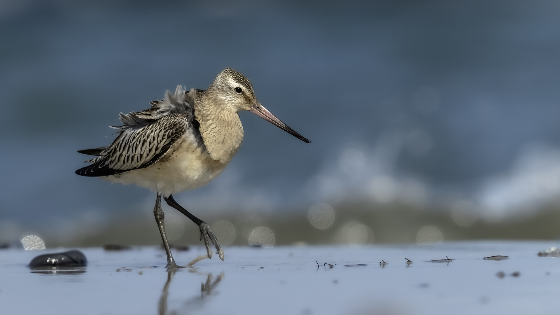 I have stopped counting how many times I was going out to the beach at sunrise in the hope of meeting a bar-tailed godwit. Although it is considered to be common species in Poland, still it is needed to be lucky to photograph it. Of course, taking pictures of this bird in Poland can be possible only when the birds are migrating, in our country it happens in April/May and August/October. There were really several reasons why I wanted to have my own pictures of a bar-tailed godwit. The two of them are its charm and my fascination with this tireless traveler. Tireless, as it holds an official record of the length of uninterrupted bird flight - 8 days and five hours. That much time it took the bar-tailed godwit female to cover a distance of 11.680 km. Well, I cannot help admiring this inconspicuous bird! The weight of the bar-tailed godwit is from 200 to 600 grams. The Earth is not too big for this bird to fly around when it can accomplish such passage. The third reason is that it belongs to the fauna of Poland. If it happens to you that you have the chance to observe the bar-tailed godwit, you can easily take photos, such as those presented, lying peacefully on the beach without any camouflage. The bar-tailed godwit, of course, keeps a distance of a few meters, but it is already enough for taking pictures. The bird when looking for food thoroughly penetrates the coastal bottom with its long beak, dipping into the water every so often. It is so busy that can sometimes get very close. So close that it not always fits in the camera's frame. Several not so short meetings with the bar-tailed godwit ended with the creation of photos for my gallery of this species. Finally!!!