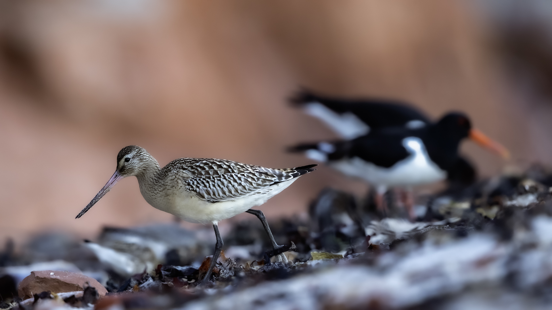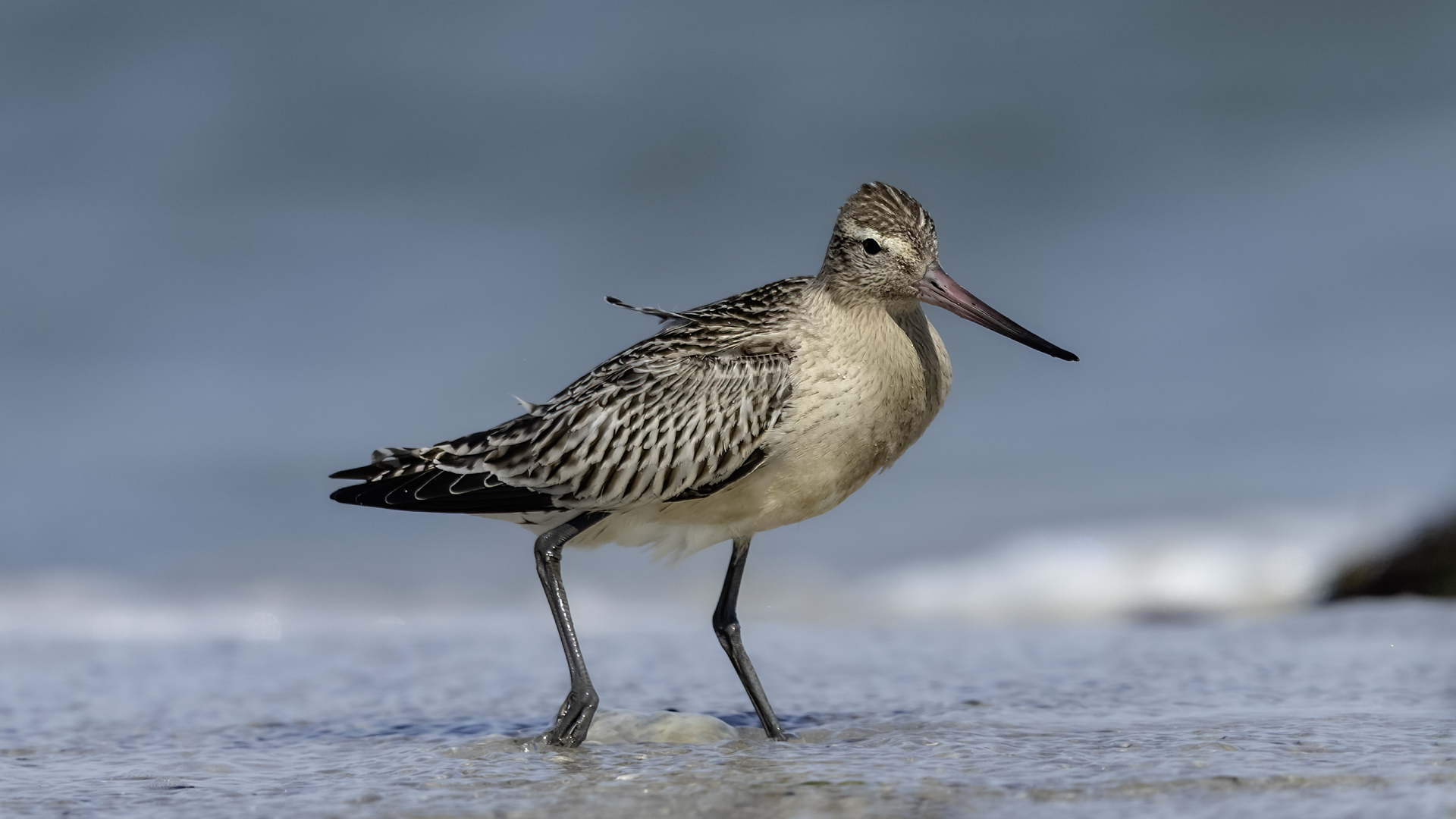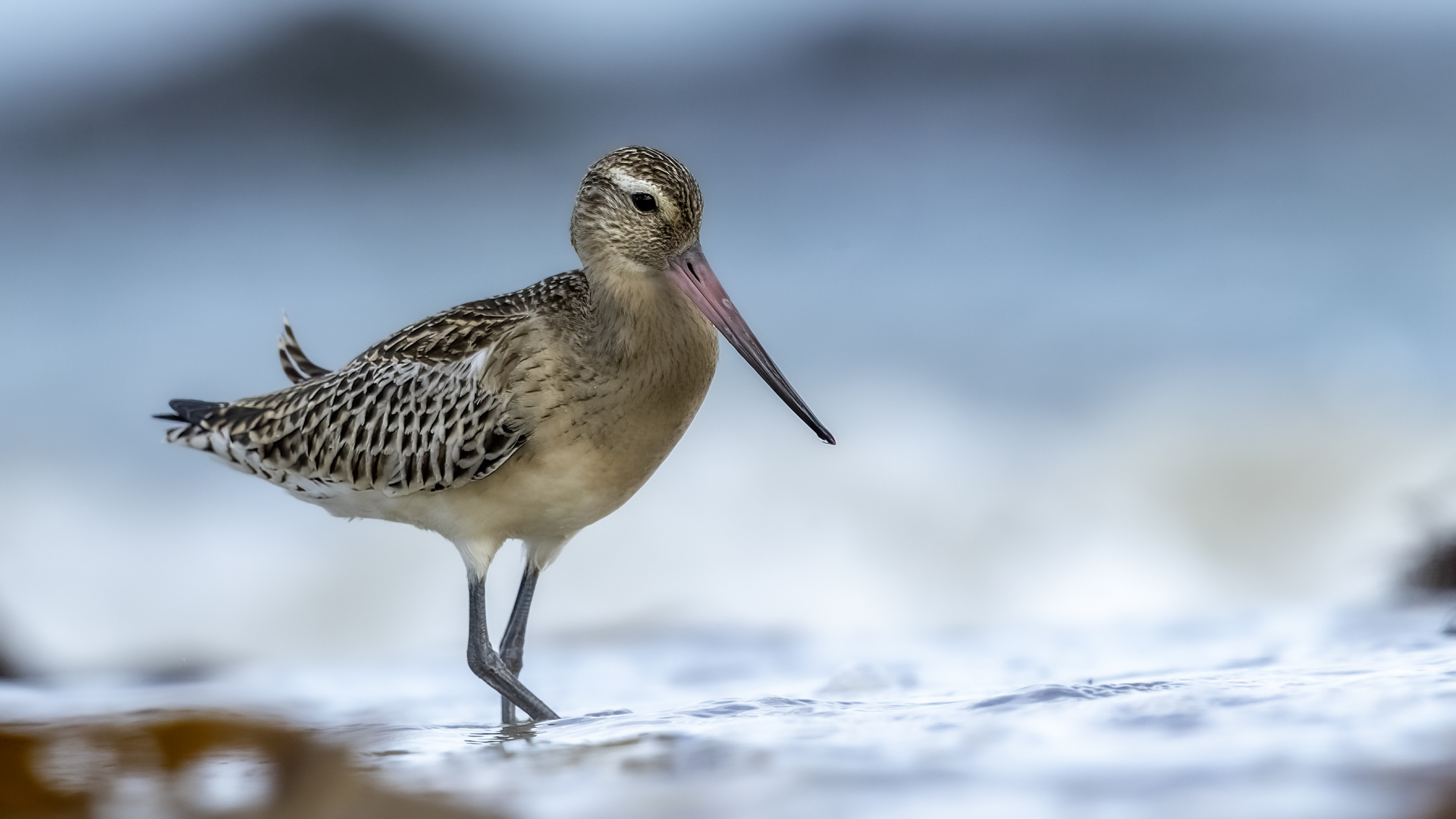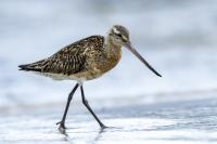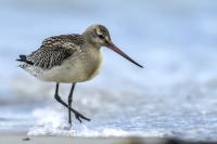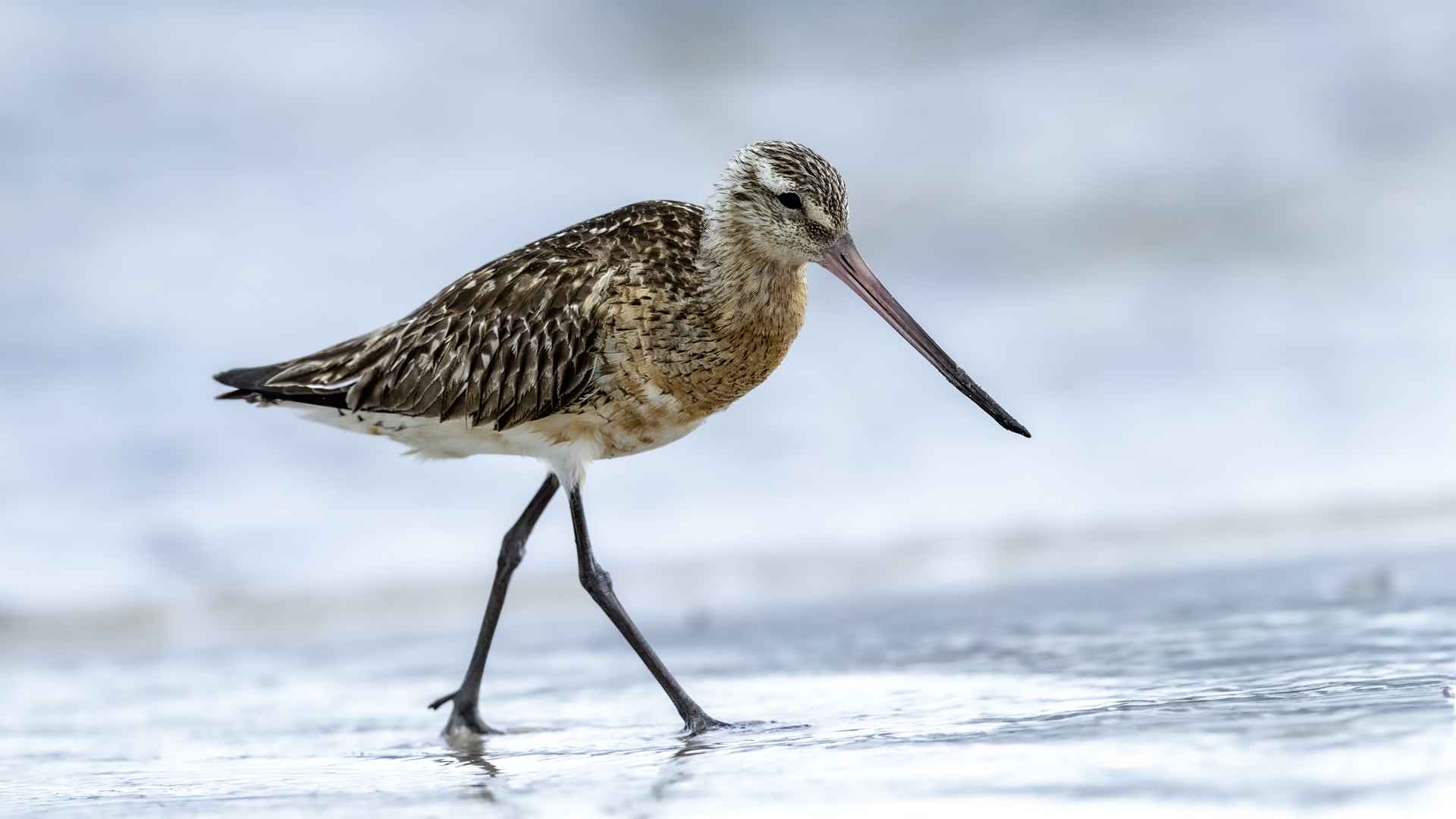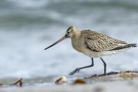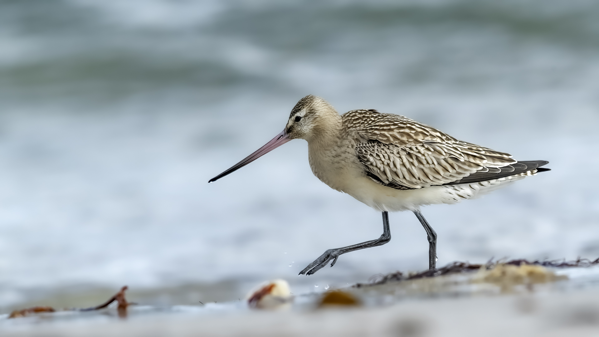 I have stopped counting how many times I was going out to the beach at sunrise in the hope of meeting a bar-tailed godwit. Although it is considered to be common species in Poland, still it is needed to be lucky to photograph it. Of course, taking pictures of this bird in Poland can be possible only when the birds are migrating, in our country it happens in April/May and August/October. There were really several reasons why I wanted to have my own pictures of a bar-tailed godwit. The two of them are its charm and my fascination with this tireless traveler. Tireless, as it holds an official record of the length of uninterrupted bird flight - 8 days and five hours. That much time it took the bar-tailed godwit female to cover a distance of 11.680 km. Well, I cannot help admiring this inconspicuous bird! The weight of the bar-tailed godwit is from 200 to 600 grams. The Earth is not too big for this bird to fly around when it can accomplish such passage. The third reason is that it belongs to the fauna of Poland. If it happens to you that you have the chance to observe the bar-tailed godwit, you can easily take photos, such as those presented, lying peacefully on the beach without any camouflage. The bar-tailed godwit, of course, keeps a distance of a few meters, but it is already enough for taking pictures. The bird when looking for food thoroughly penetrates the coastal bottom with its long beak, dipping into the water every so often. It is so busy that can sometimes get very close. So close that it not always fits in the camera's frame. Several not so short meetings with the bar-tailed godwit ended with the creation of photos for my gallery of this species. Finally!!!