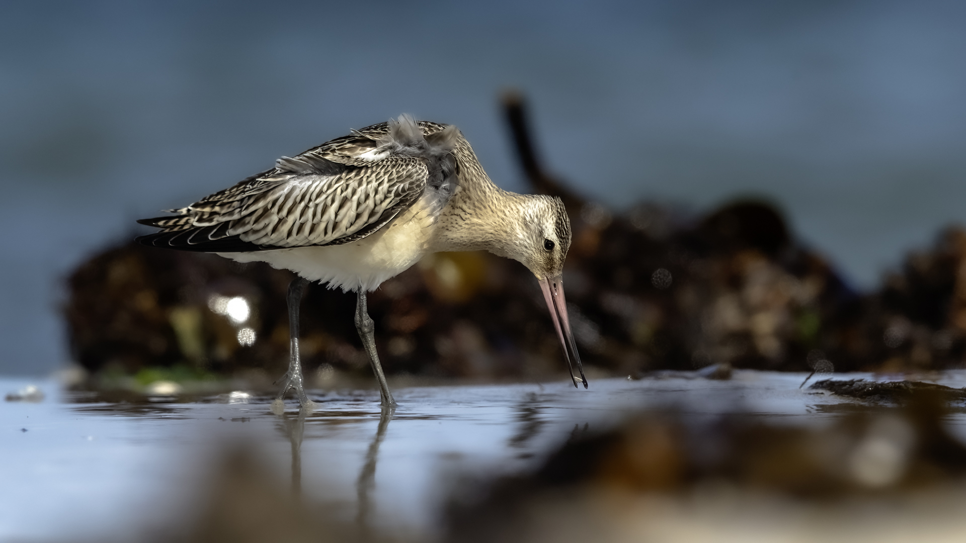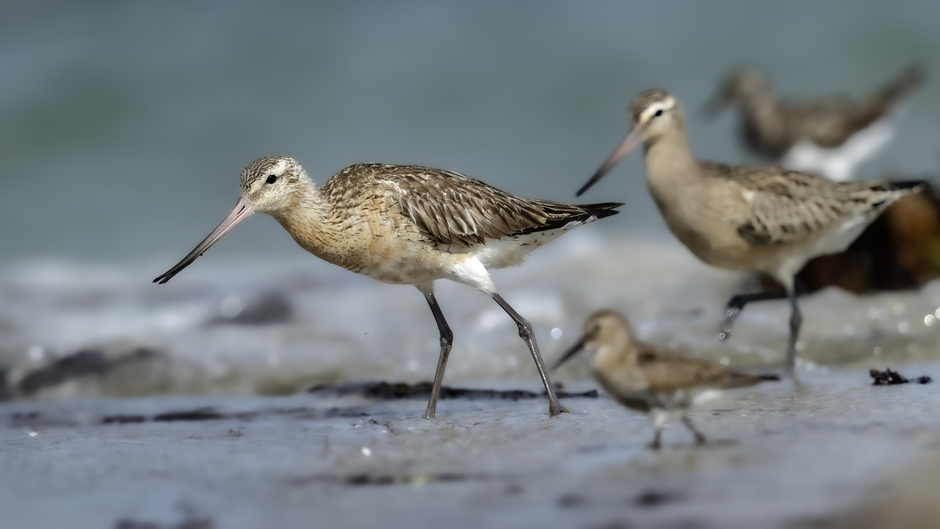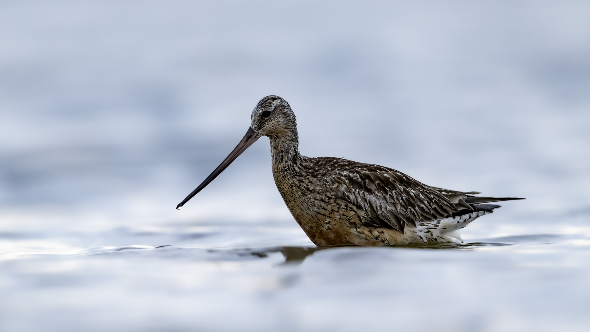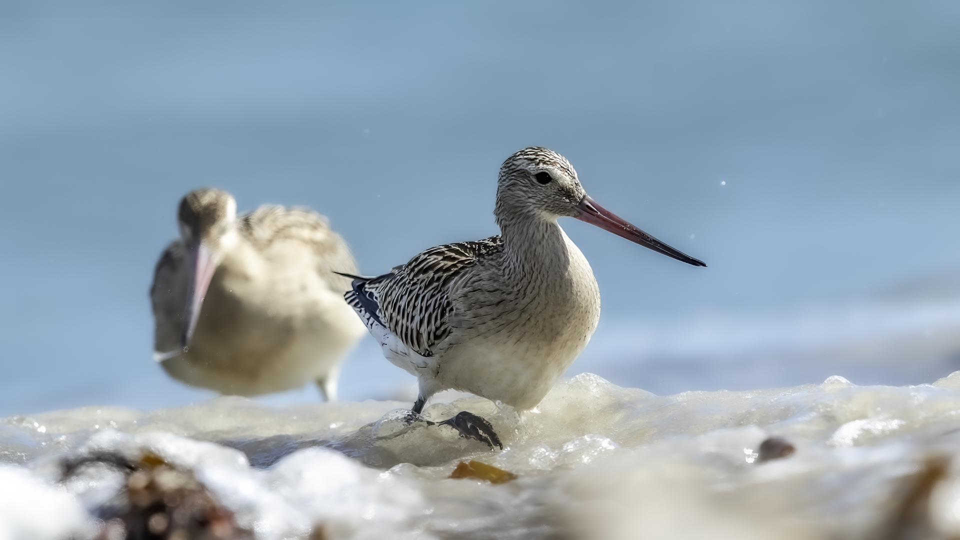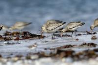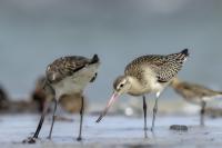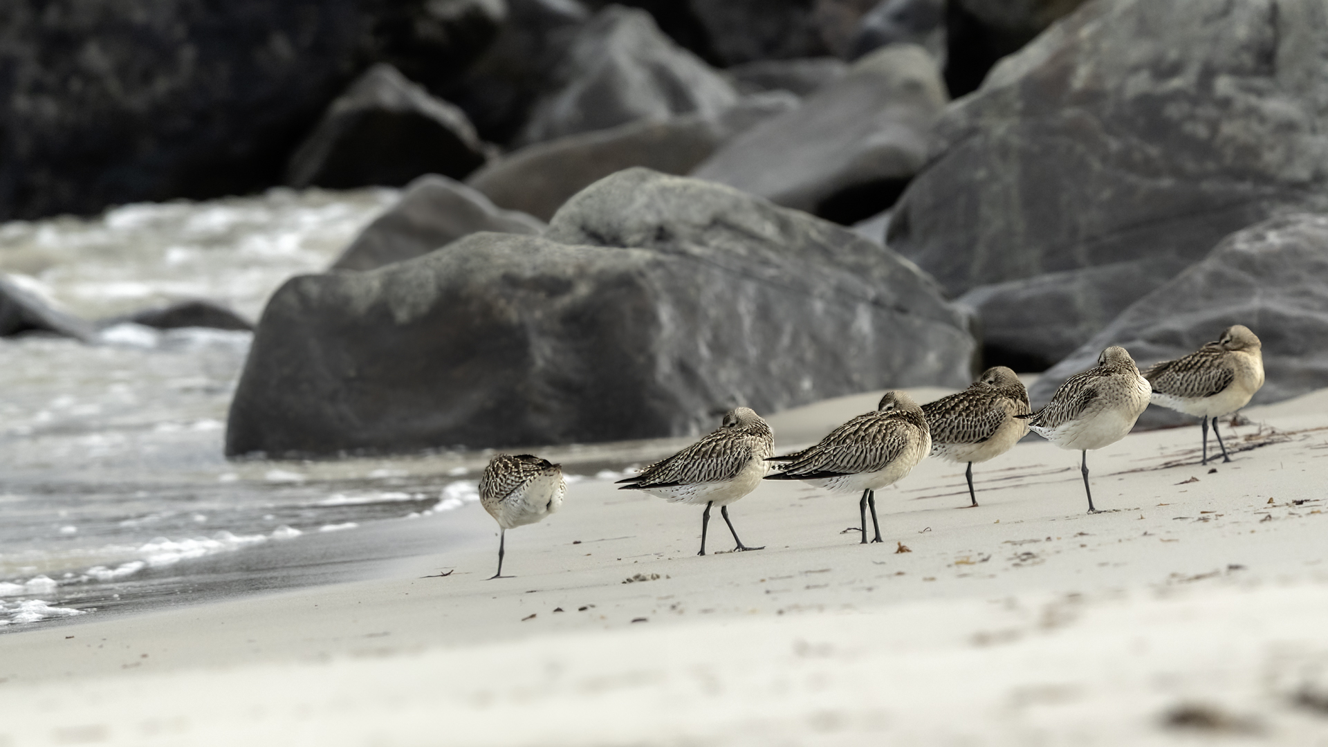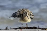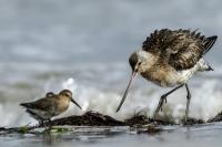 I have stopped counting how many times I was going out to the beach at sunrise in the hope of meeting a bar-tailed godwit. Although it is considered to be common species in Poland, still it is needed to be lucky to photograph it. Of course, taking pictures of this bird in Poland can be possible only when the birds are migrating, in our country it happens in April/May and August/October. There were really several reasons why I wanted to have my own pictures of a bar-tailed godwit. The two of them are its charm and my fascination with this tireless traveler. Tireless, as it holds an official record of the length of uninterrupted bird flight - 8 days and five hours. That much time it took the bar-tailed godwit female to cover a distance of 11.680 km. Well, I cannot help admiring this inconspicuous bird! The weight of the bar-tailed godwit is from 200 to 600 grams. The Earth is not too big for this bird to fly around when it can accomplish such passage. The third reason is that it belongs to the fauna of Poland. If it happens to you that you have the chance to observe the bar-tailed godwit, you can easily take photos, such as those presented, lying peacefully on the beach without any camouflage. The bar-tailed godwit, of course, keeps a distance of a few meters, but it is already enough for taking pictures. The bird when looking for food thoroughly penetrates the coastal bottom with its long beak, dipping into the water every so often. It is so busy that can sometimes get very close. So close that it not always fits in the camera's frame. Several not so short meetings with the bar-tailed godwit ended with the creation of photos for my gallery of this species. Finally!!!