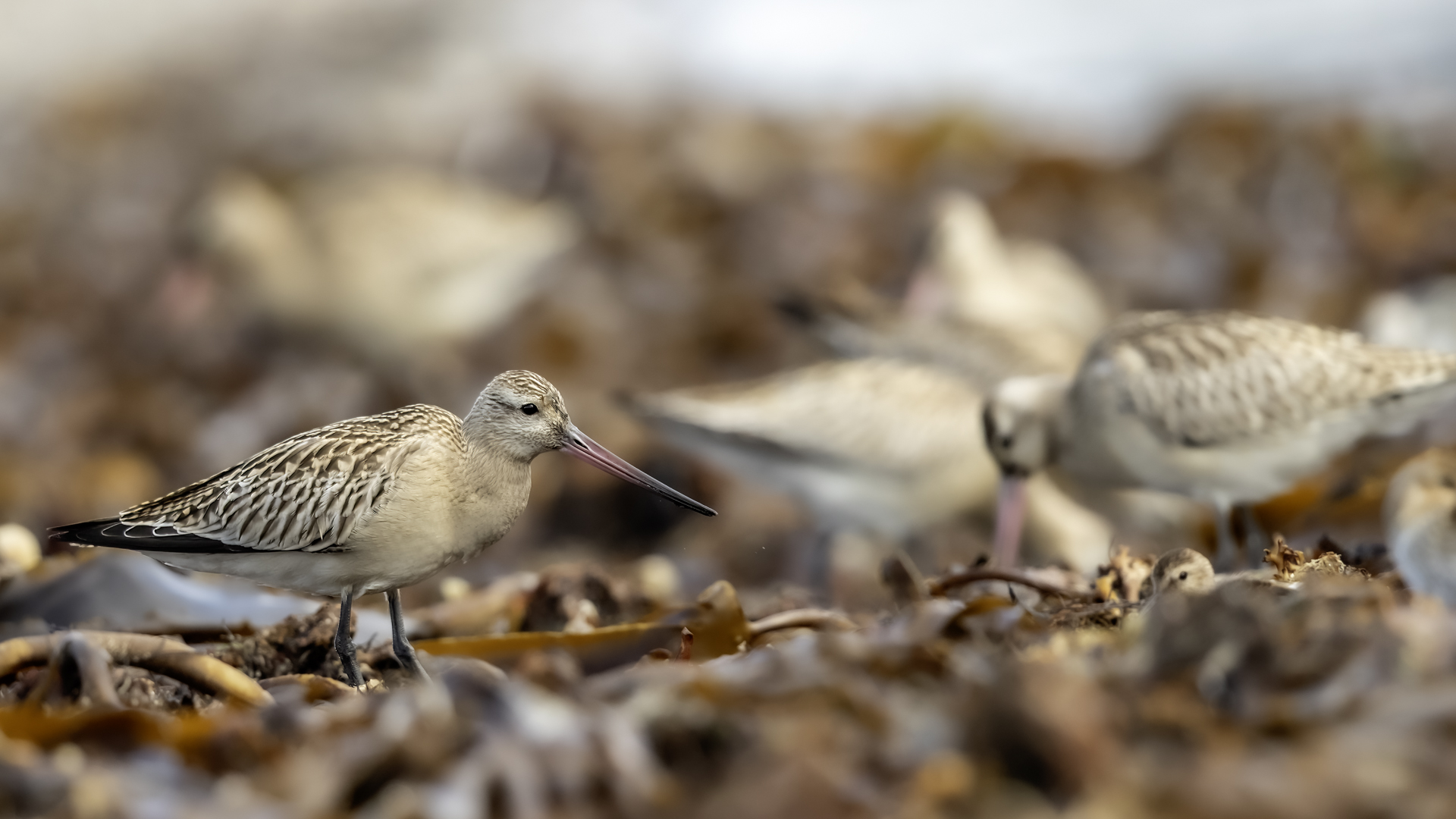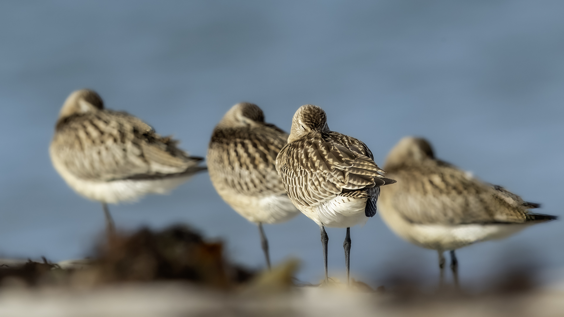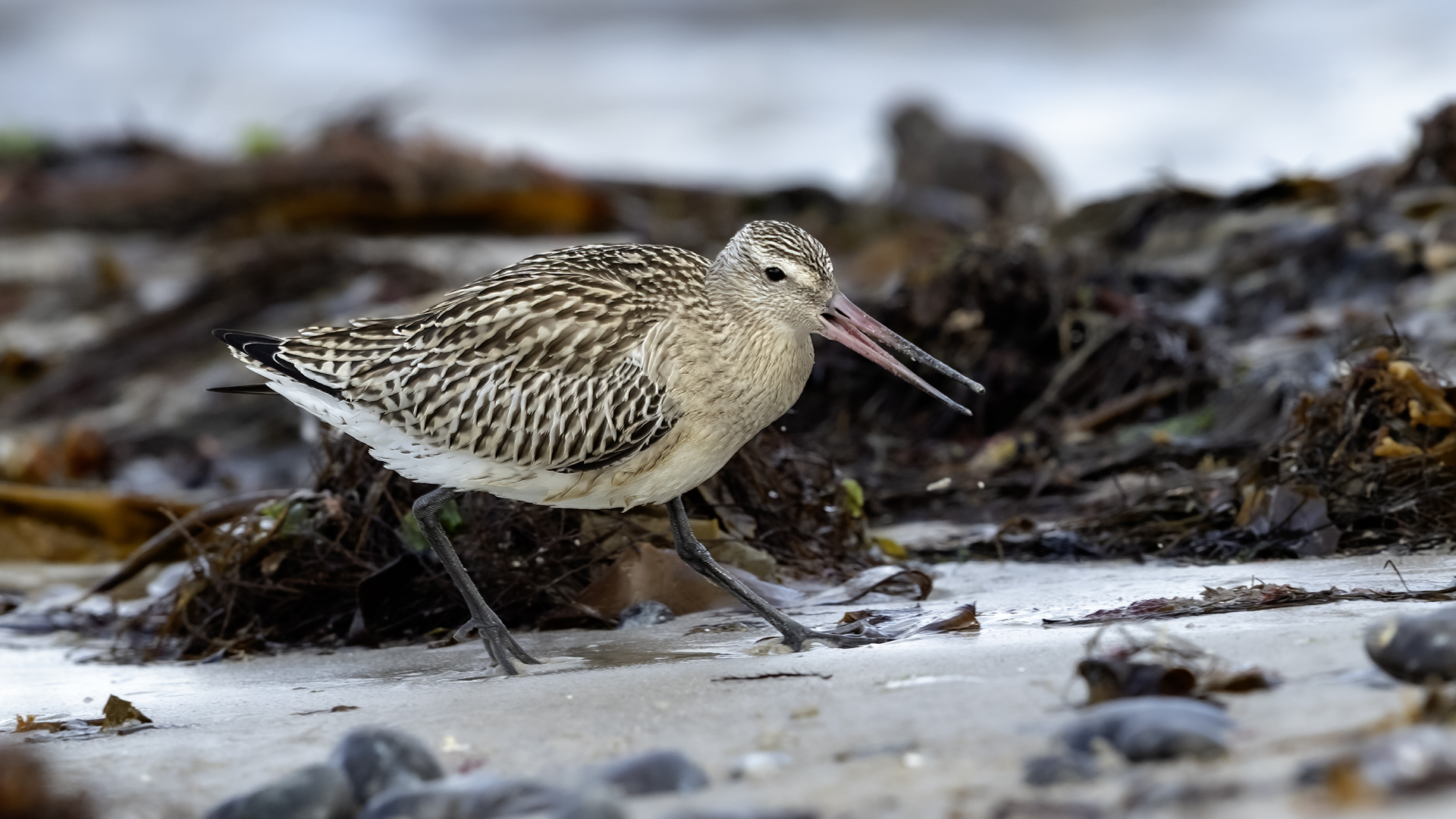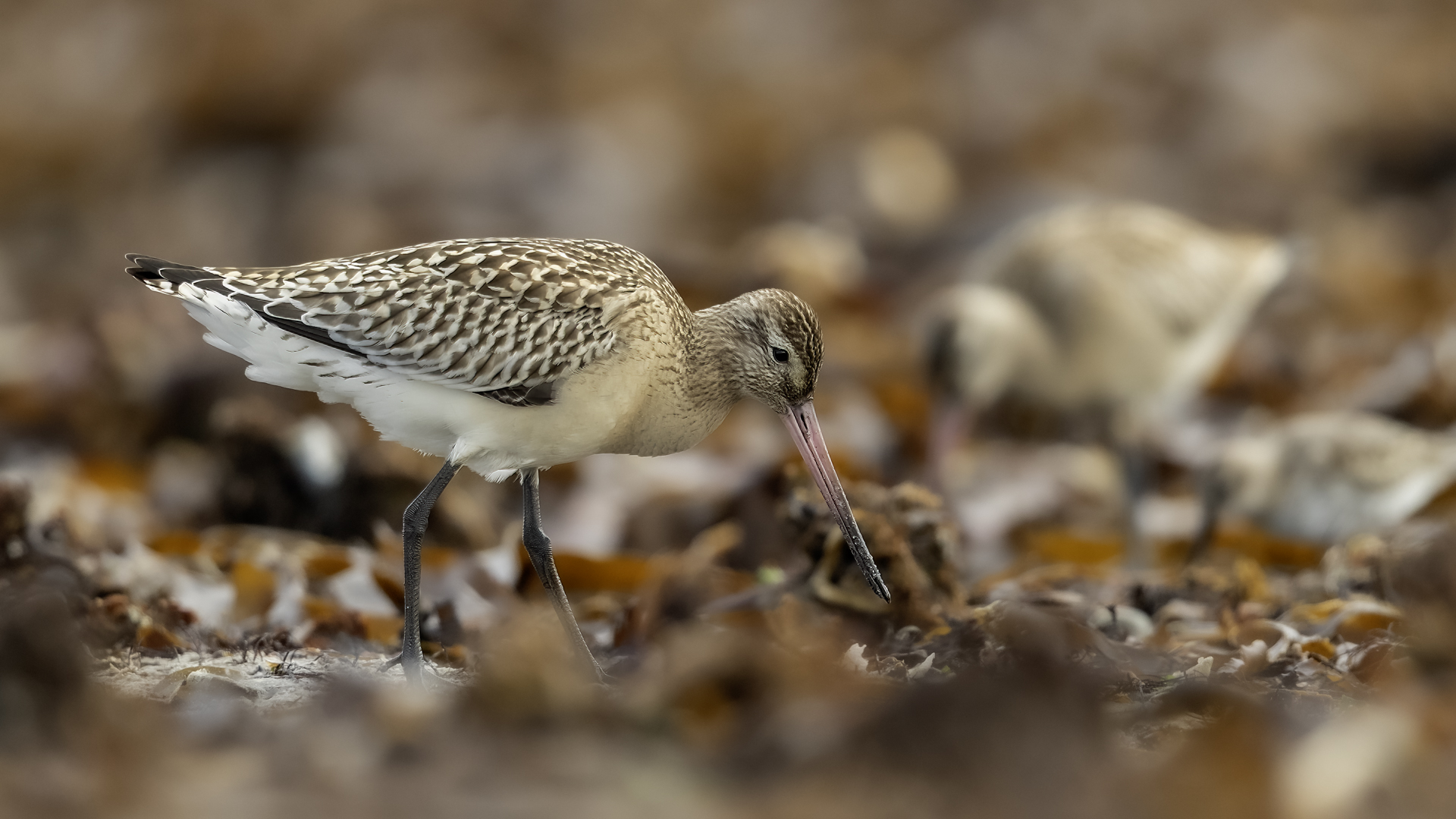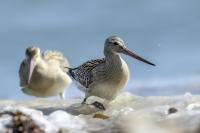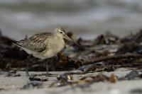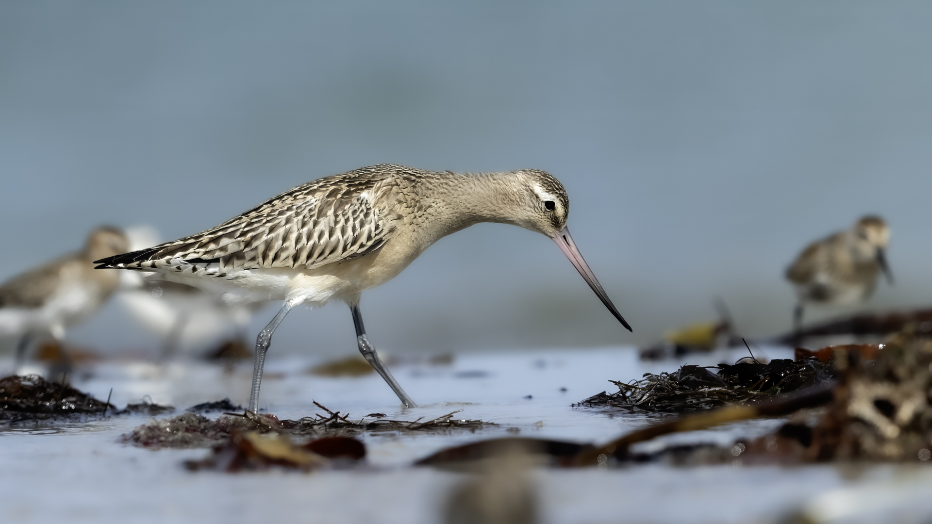 I have stopped counting how many times I was going out to the beach at sunrise in the hope of meeting a bar-tailed godwit. Although it is considered to be common species in Poland, still it is needed to be lucky to photograph it. Of course, taking pictures of this bird in Poland can be possible only when the birds are migrating, in our country it happens in April/May and August/October. There were really several reasons why I wanted to have my own pictures of a bar-tailed godwit. The two of them are its charm and my fascination with this tireless traveler. Tireless, as it holds an official record of the length of uninterrupted bird flight - 8 days and five hours. That much time it took the bar-tailed godwit female to cover a distance of 11.680 km. Well, I cannot help admiring this inconspicuous bird! The weight of the bar-tailed godwit is from 200 to 600 grams. The Earth is not too big for this bird to fly around when it can accomplish such passage. The third reason is that it belongs to the fauna of Poland. If it happens to you that you have the chance to observe the bar-tailed godwit, you can easily take photos, such as those presented, lying peacefully on the beach without any camouflage. The bar-tailed godwit, of course, keeps a distance of a few meters, but it is already enough for taking pictures. The bird when looking for food thoroughly penetrates the coastal bottom with its long beak, dipping into the water every so often. It is so busy that can sometimes get very close. So close that it not always fits in the camera's frame. Several not so short meetings with the bar-tailed godwit ended with the creation of photos for my gallery of this species. Finally!!!