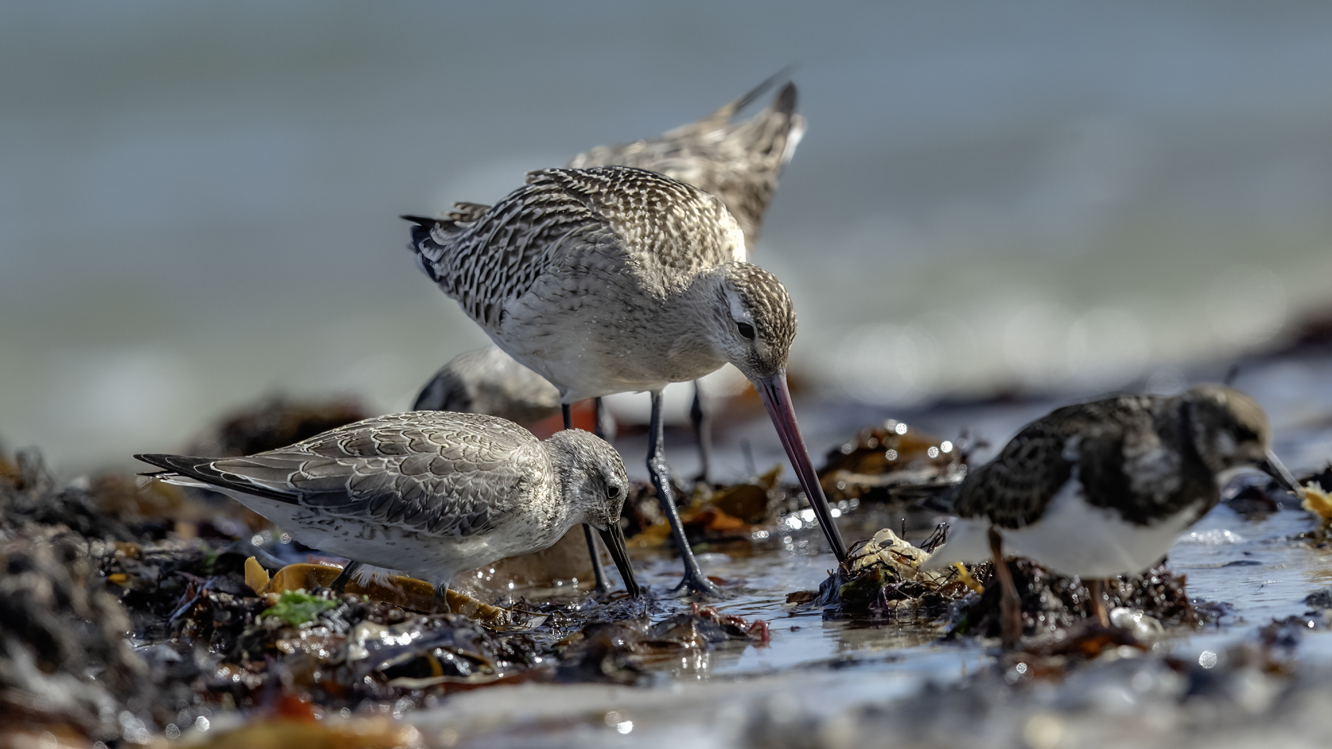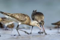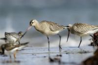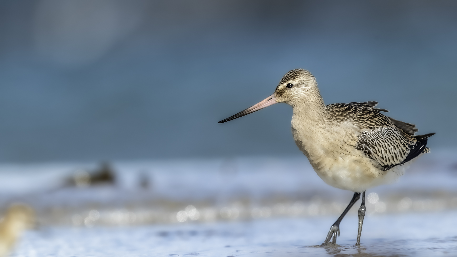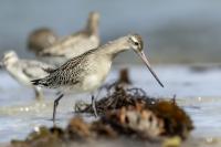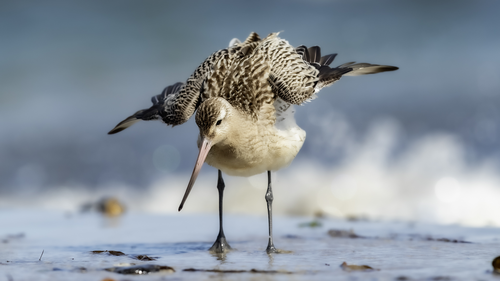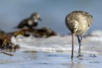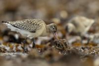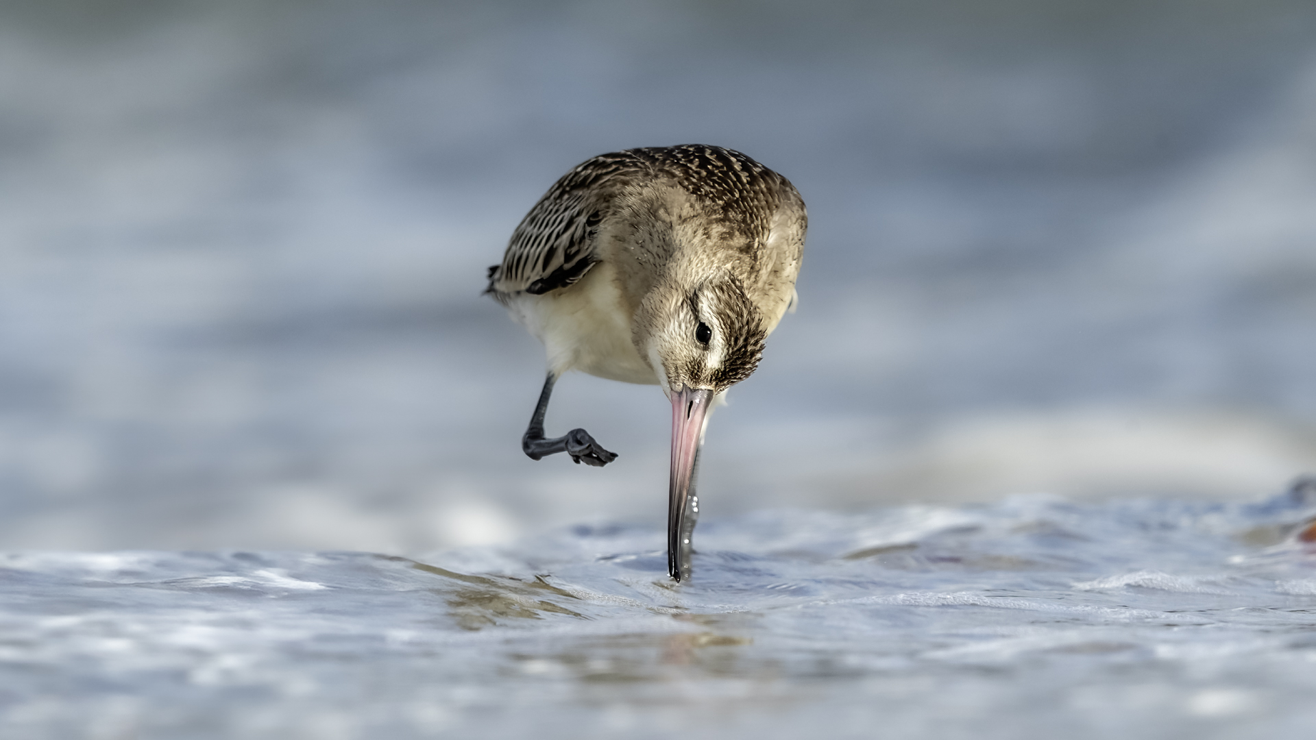 I have stopped counting how many times I was going out to the beach at sunrise in the hope of meeting a bar-tailed godwit. Although it is considered to be common species in Poland, still it is needed to be lucky to photograph it. Of course, taking pictures of this bird in Poland can be possible only when the birds are migrating, in our country it happens in April/May and August/October. There were really several reasons why I wanted to have my own pictures of a bar-tailed godwit. The two of them are its charm and my fascination with this tireless traveler. Tireless, as it holds an official record of the length of uninterrupted bird flight - 8 days and five hours. That much time it took the bar-tailed godwit female to cover a distance of 11.680 km. Well, I cannot help admiring this inconspicuous bird! The weight of the bar-tailed godwit is from 200 to 600 grams. The Earth is not too big for this bird to fly around when it can accomplish such passage. The third reason is that it belongs to the fauna of Poland. If it happens to you that you have the chance to observe the bar-tailed godwit, you can easily take photos, such as those presented, lying peacefully on the beach without any camouflage. The bar-tailed godwit, of course, keeps a distance of a few meters, but it is already enough for taking pictures. The bird when looking for food thoroughly penetrates the coastal bottom with its long beak, dipping into the water every so often. It is so busy that can sometimes get very close. So close that it not always fits in the camera's frame. Several not so short meetings with the bar-tailed godwit ended with the creation of photos for my gallery of this species. Finally!!!