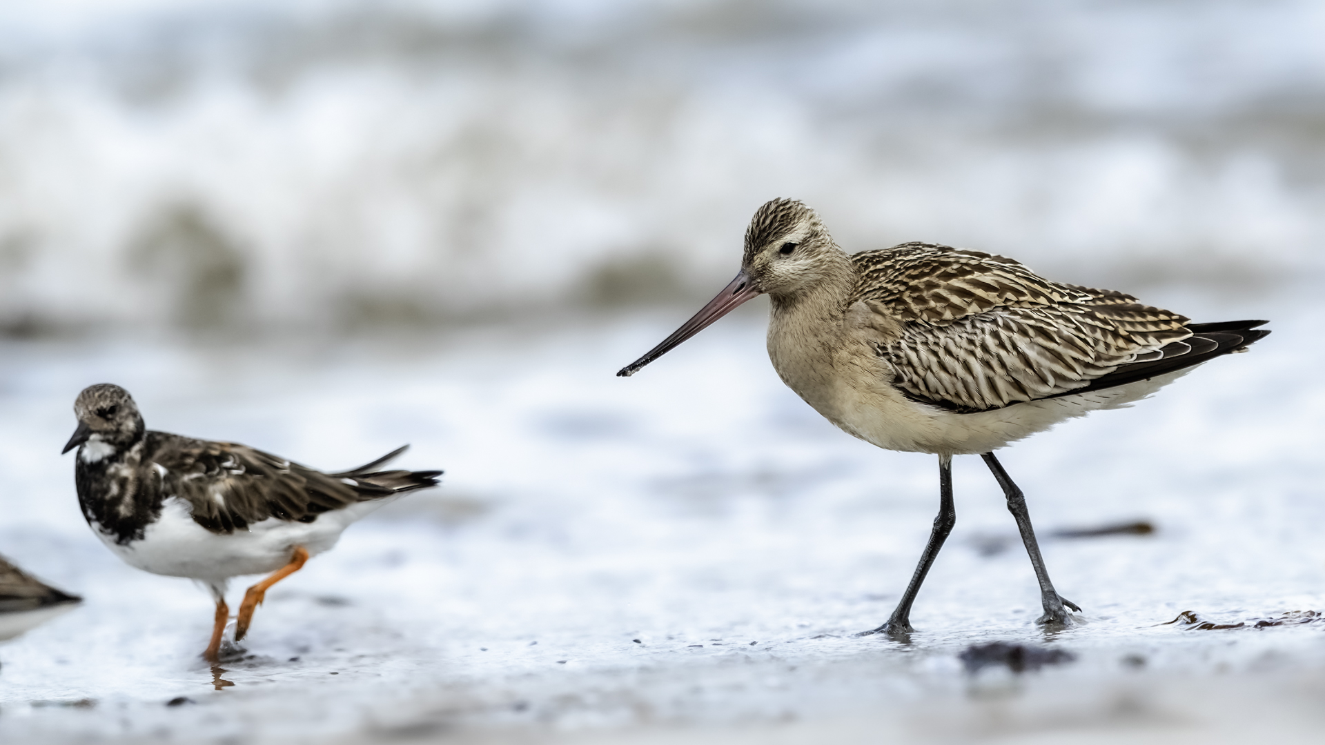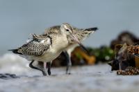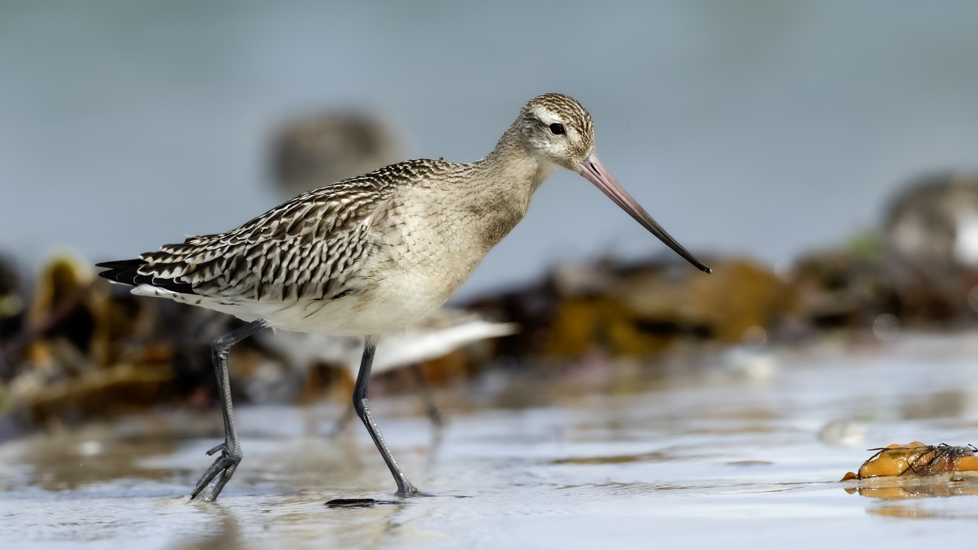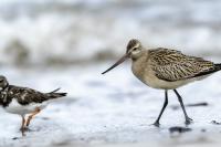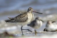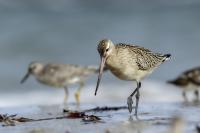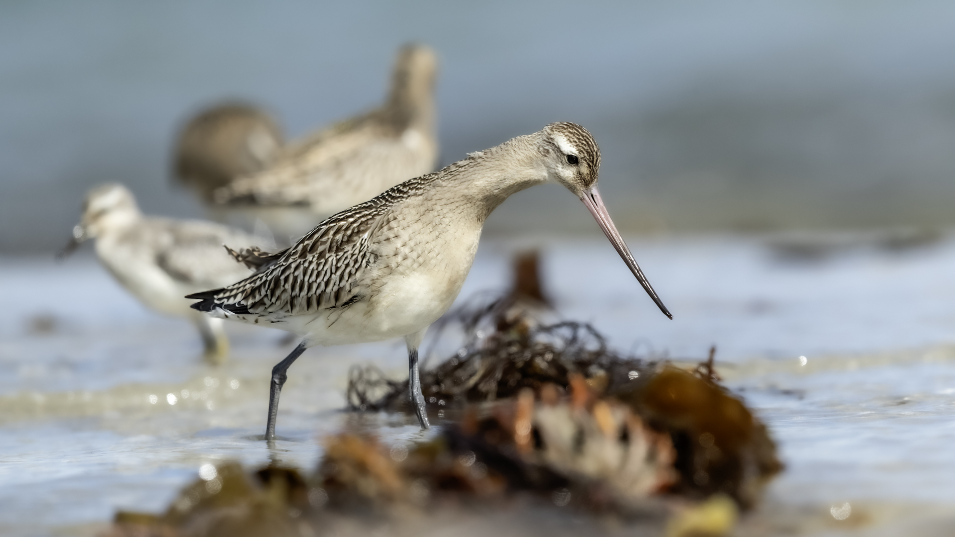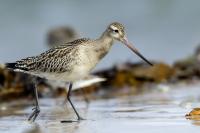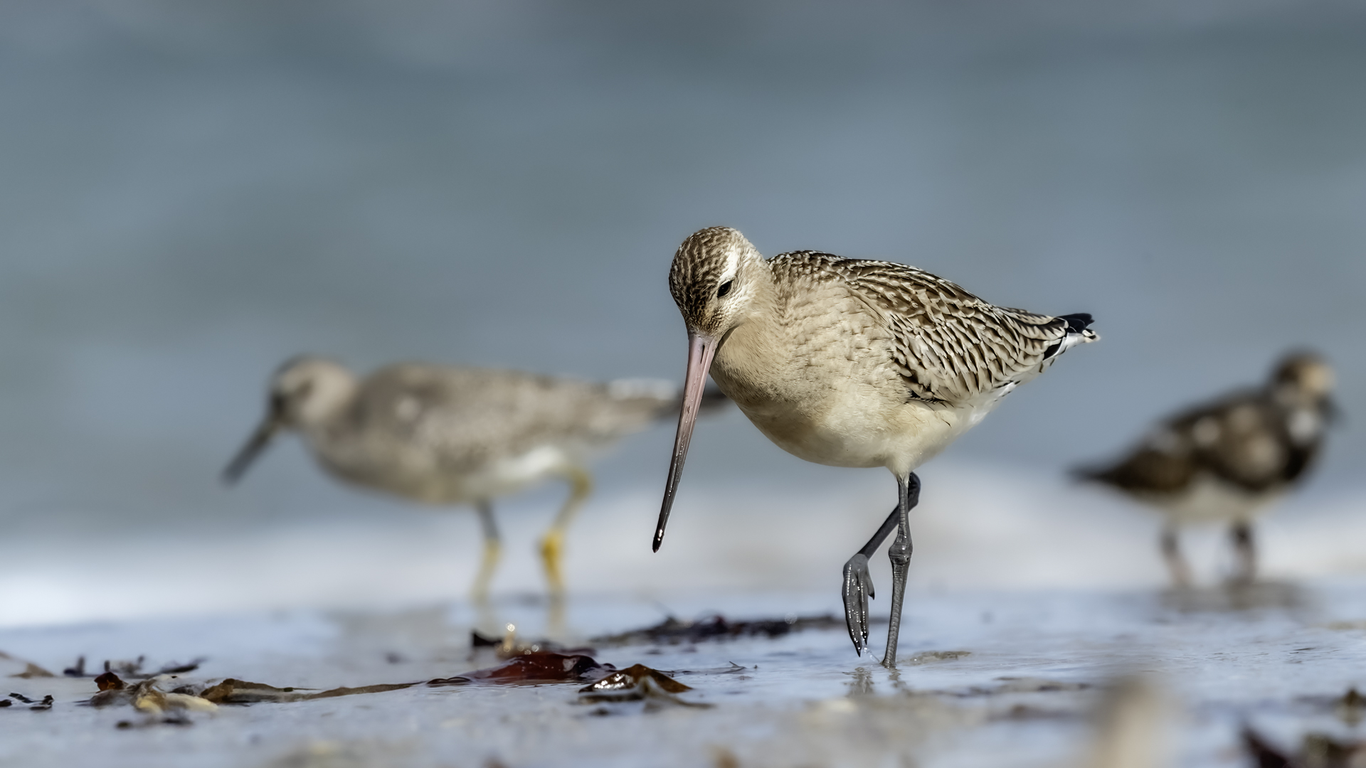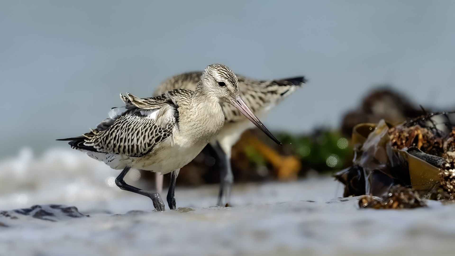 I have stopped counting how many times I was going out to the beach at sunrise in the hope of meeting a bar-tailed godwit. Although it is considered to be common species in Poland, still it is needed to be lucky to photograph it. Of course, taking pictures of this bird in Poland can be possible only when the birds are migrating, in our country it happens in April/May and August/October. There were really several reasons why I wanted to have my own pictures of a bar-tailed godwit. The two of them are its charm and my fascination with this tireless traveler. Tireless, as it holds an official record of the length of uninterrupted bird flight - 8 days and five hours. That much time it took the bar-tailed godwit female to cover a distance of 11.680 km. Well, I cannot help admiring this inconspicuous bird! The weight of the bar-tailed godwit is from 200 to 600 grams. The Earth is not too big for this bird to fly around when it can accomplish such passage. The third reason is that it belongs to the fauna of Poland. If it happens to you that you have the chance to observe the bar-tailed godwit, you can easily take photos, such as those presented, lying peacefully on the beach without any camouflage. The bar-tailed godwit, of course, keeps a distance of a few meters, but it is already enough for taking pictures. The bird when looking for food thoroughly penetrates the coastal bottom with its long beak, dipping into the water every so often. It is so busy that can sometimes get very close. So close that it not always fits in the camera's frame. Several not so short meetings with the bar-tailed godwit ended with the creation of photos for my gallery of this species. Finally!!!