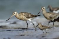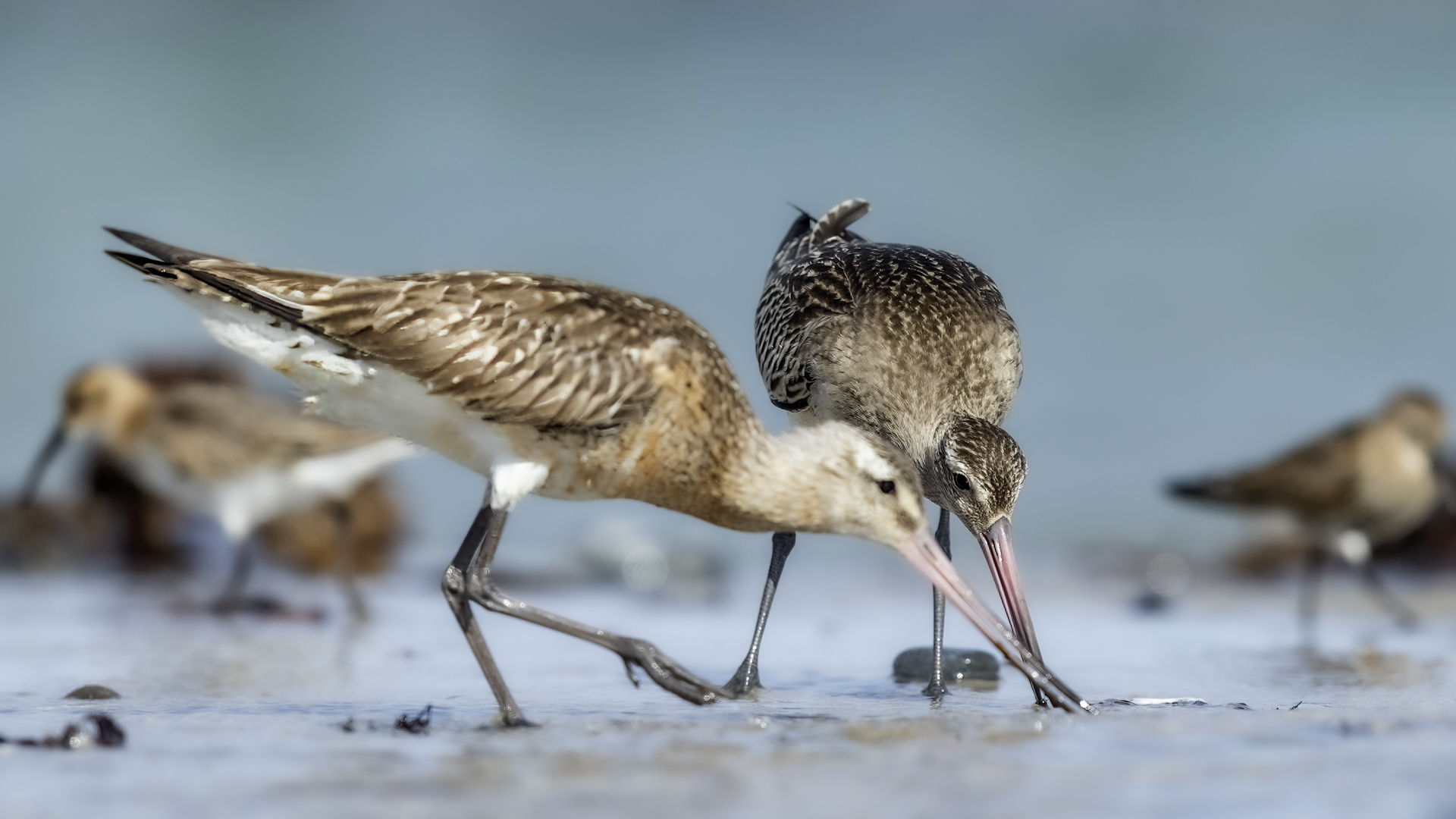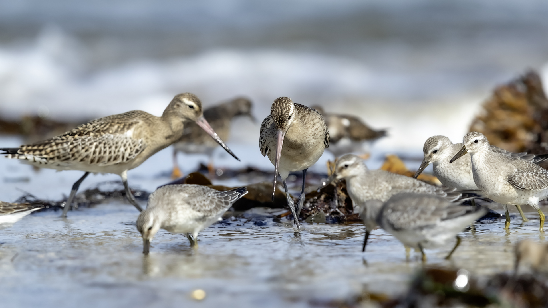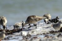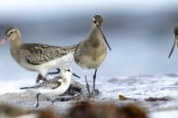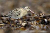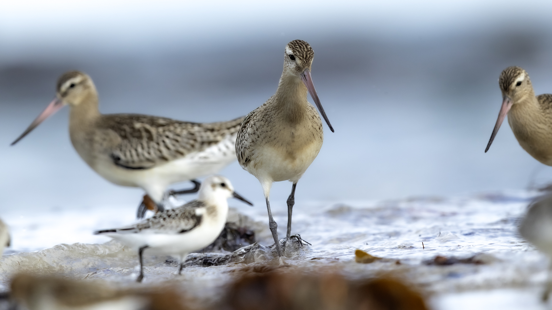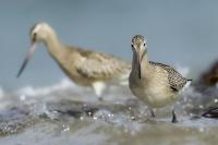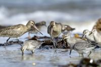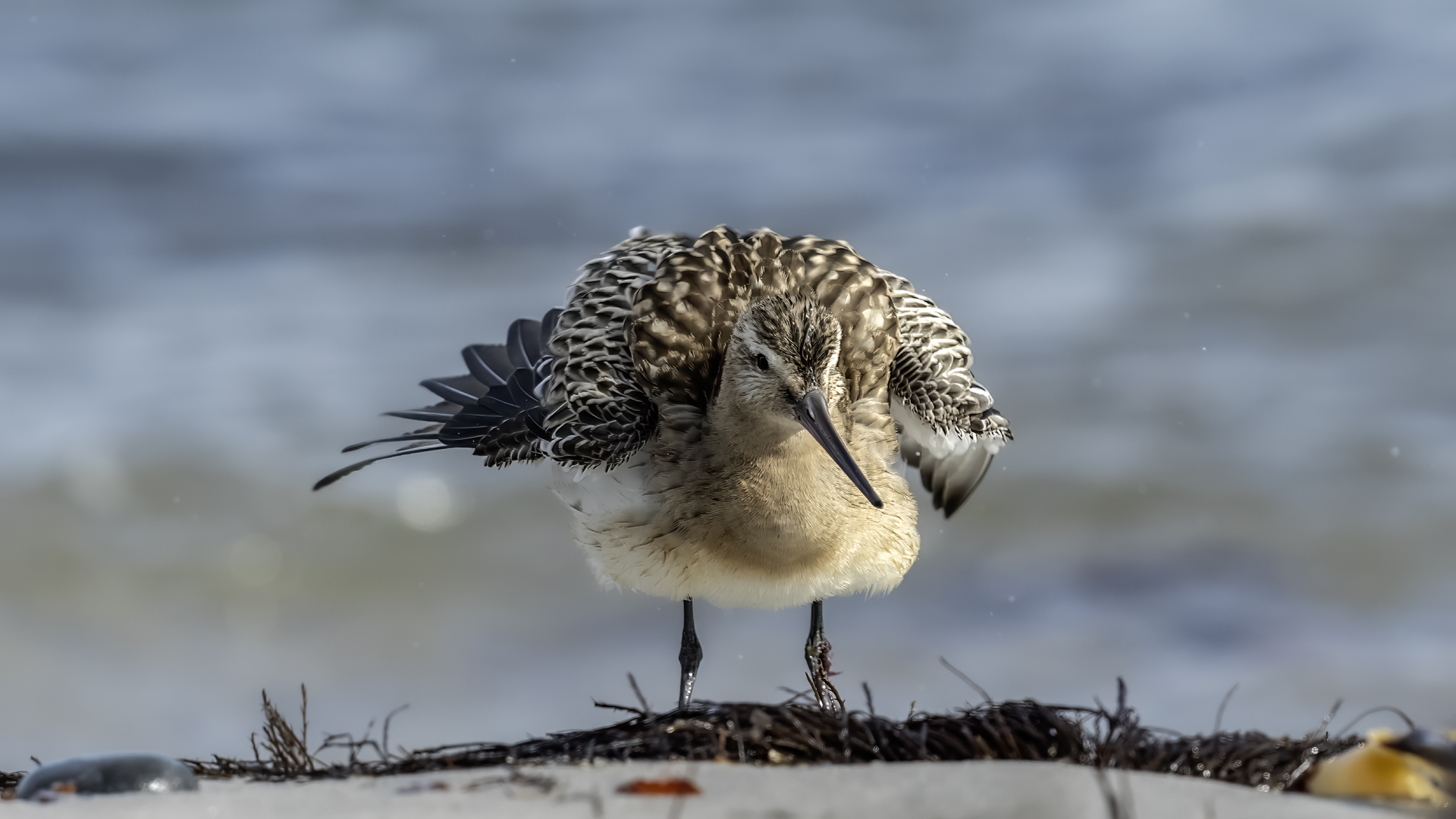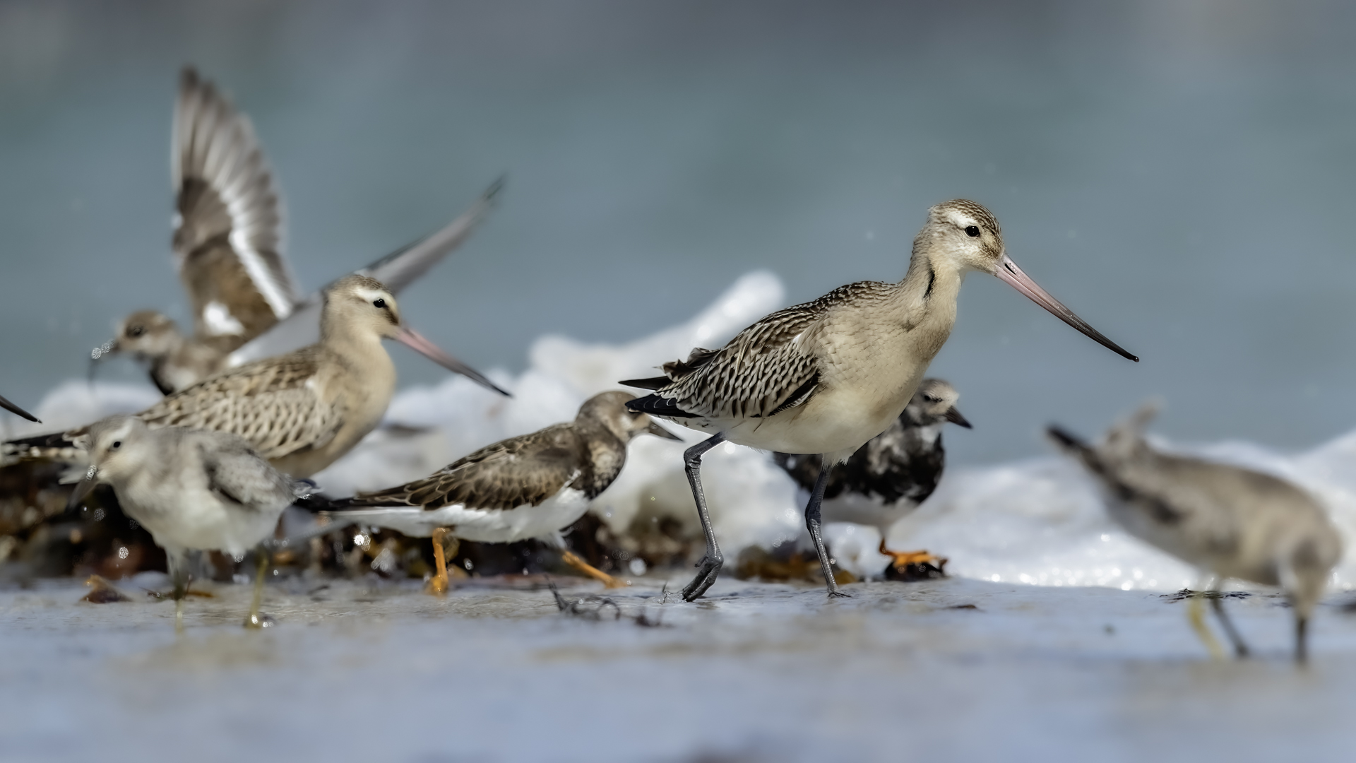 I have stopped counting how many times I was going out to the beach at sunrise in the hope of meeting a bar-tailed godwit. Although it is considered to be common species in Poland, still it is needed to be lucky to photograph it. Of course, taking pictures of this bird in Poland can be possible only when the birds are migrating, in our country it happens in April/May and August/October. There were really several reasons why I wanted to have my own pictures of a bar-tailed godwit. The two of them are its charm and my fascination with this tireless traveler. Tireless, as it holds an official record of the length of uninterrupted bird flight - 8 days and five hours. That much time it took the bar-tailed godwit female to cover a distance of 11.680 km. Well, I cannot help admiring this inconspicuous bird! The weight of the bar-tailed godwit is from 200 to 600 grams. The Earth is not too big for this bird to fly around when it can accomplish such passage. The third reason is that it belongs to the fauna of Poland. If it happens to you that you have the chance to observe the bar-tailed godwit, you can easily take photos, such as those presented, lying peacefully on the beach without any camouflage. The bar-tailed godwit, of course, keeps a distance of a few meters, but it is already enough for taking pictures. The bird when looking for food thoroughly penetrates the coastal bottom with its long beak, dipping into the water every so often. It is so busy that can sometimes get very close. So close that it not always fits in the camera's frame. Several not so short meetings with the bar-tailed godwit ended with the creation of photos for my gallery of this species. Finally!!!