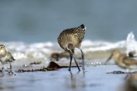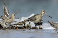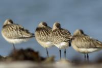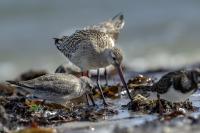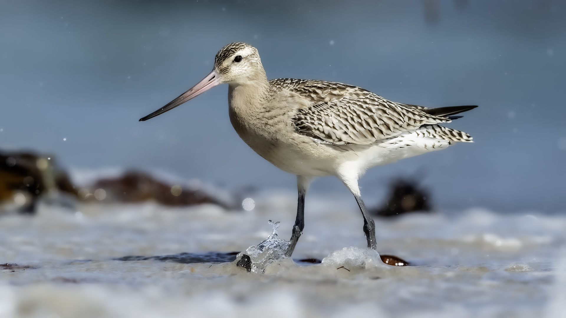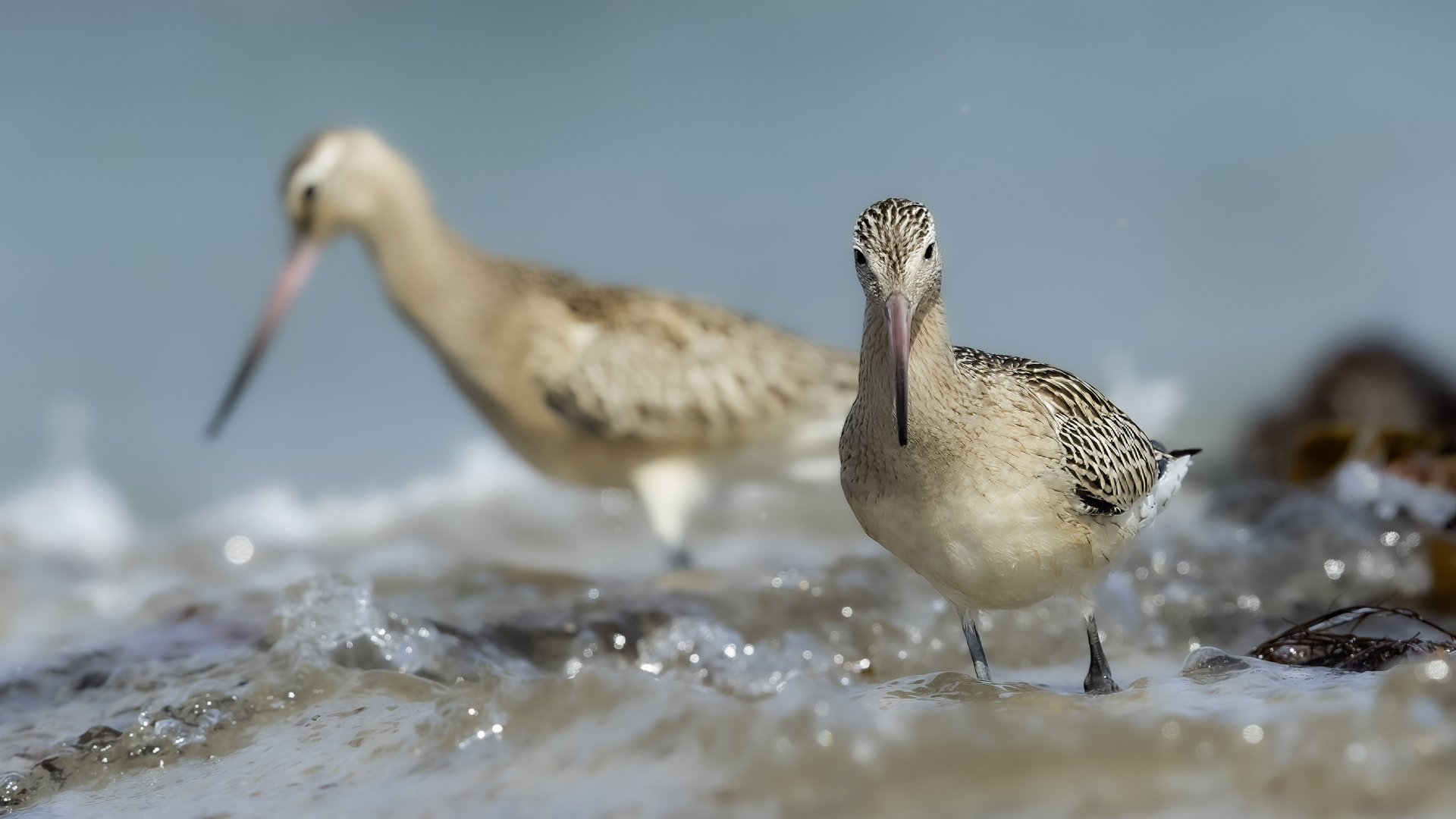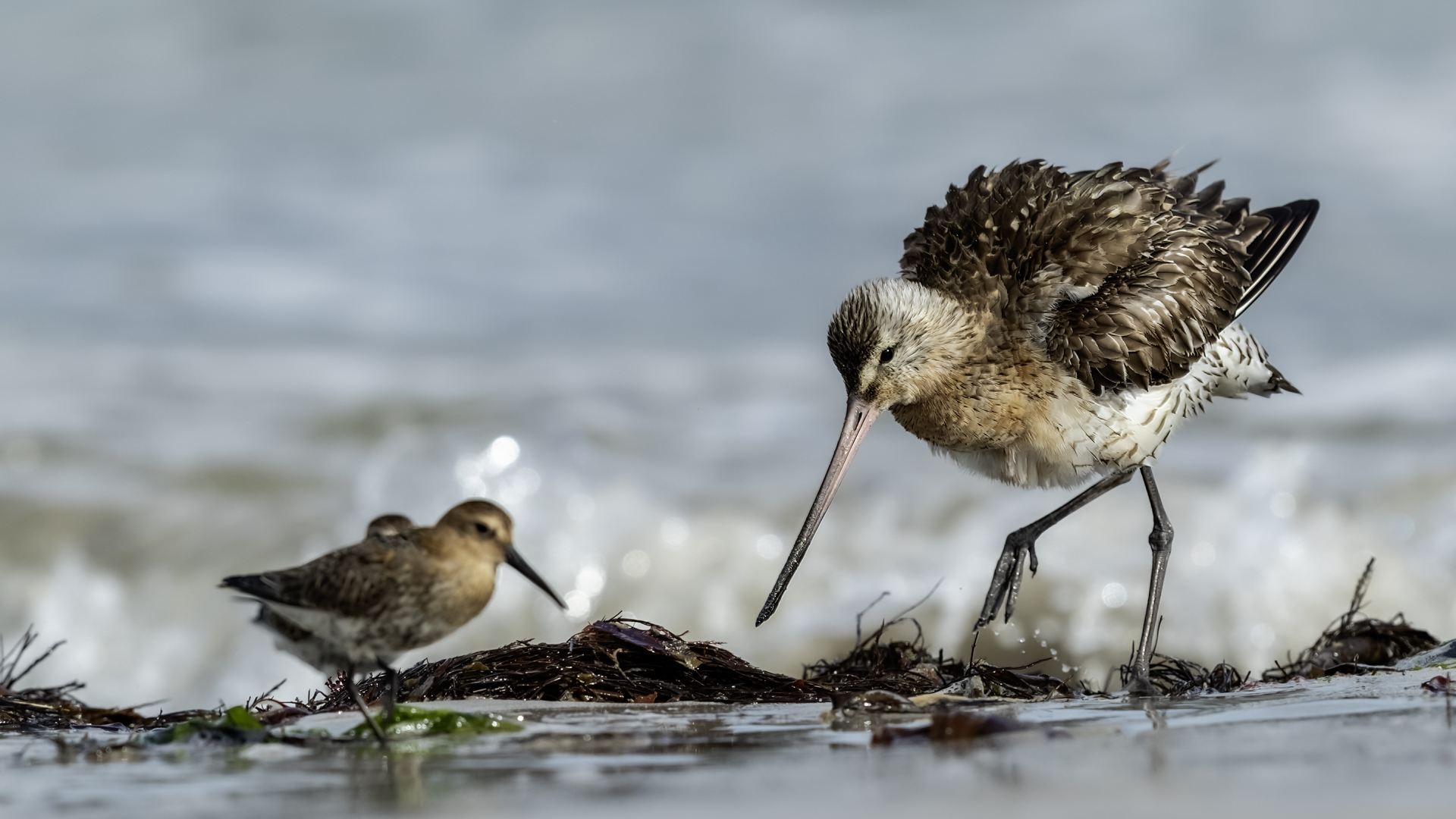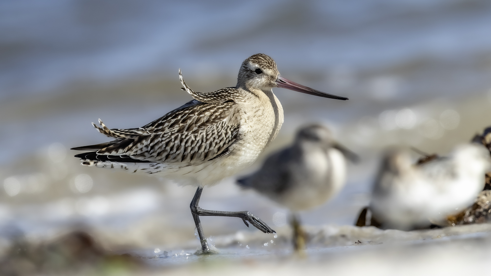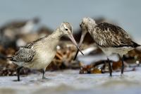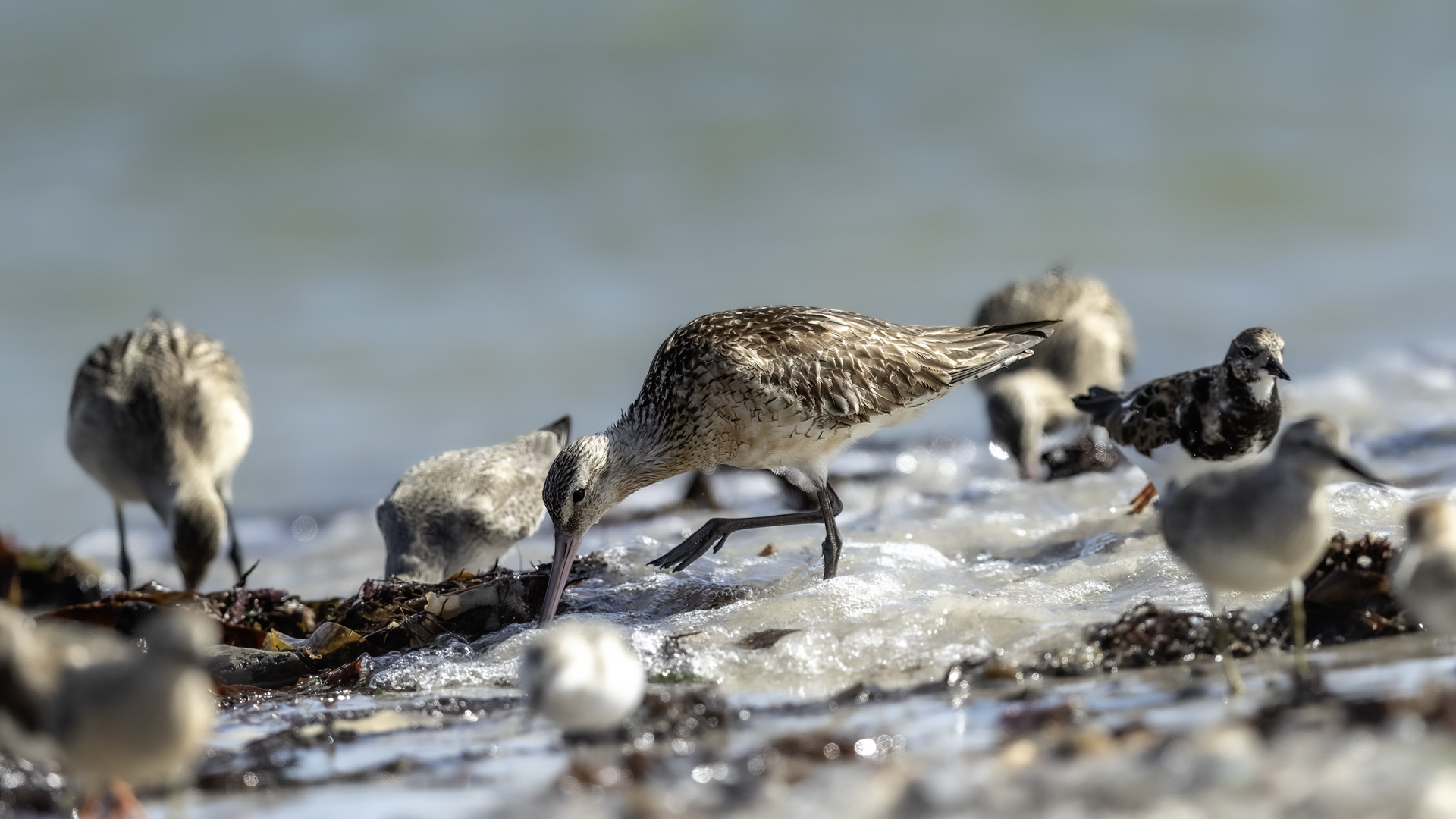 I have stopped counting how many times I was going out to the beach at sunrise in the hope of meeting a bar-tailed godwit. Although it is considered to be common species in Poland, still it is needed to be lucky to photograph it. Of course, taking pictures of this bird in Poland can be possible only when the birds are migrating, in our country it happens in April/May and August/October. There were really several reasons why I wanted to have my own pictures of a bar-tailed godwit. The two of them are its charm and my fascination with this tireless traveler. Tireless, as it holds an official record of the length of uninterrupted bird flight - 8 days and five hours. That much time it took the bar-tailed godwit female to cover a distance of 11.680 km. Well, I cannot help admiring this inconspicuous bird! The weight of the bar-tailed godwit is from 200 to 600 grams. The Earth is not too big for this bird to fly around when it can accomplish such passage. The third reason is that it belongs to the fauna of Poland. If it happens to you that you have the chance to observe the bar-tailed godwit, you can easily take photos, such as those presented, lying peacefully on the beach without any camouflage. The bar-tailed godwit, of course, keeps a distance of a few meters, but it is already enough for taking pictures. The bird when looking for food thoroughly penetrates the coastal bottom with its long beak, dipping into the water every so often. It is so busy that can sometimes get very close. So close that it not always fits in the camera's frame. Several not so short meetings with the bar-tailed godwit ended with the creation of photos for my gallery of this species. Finally!!!