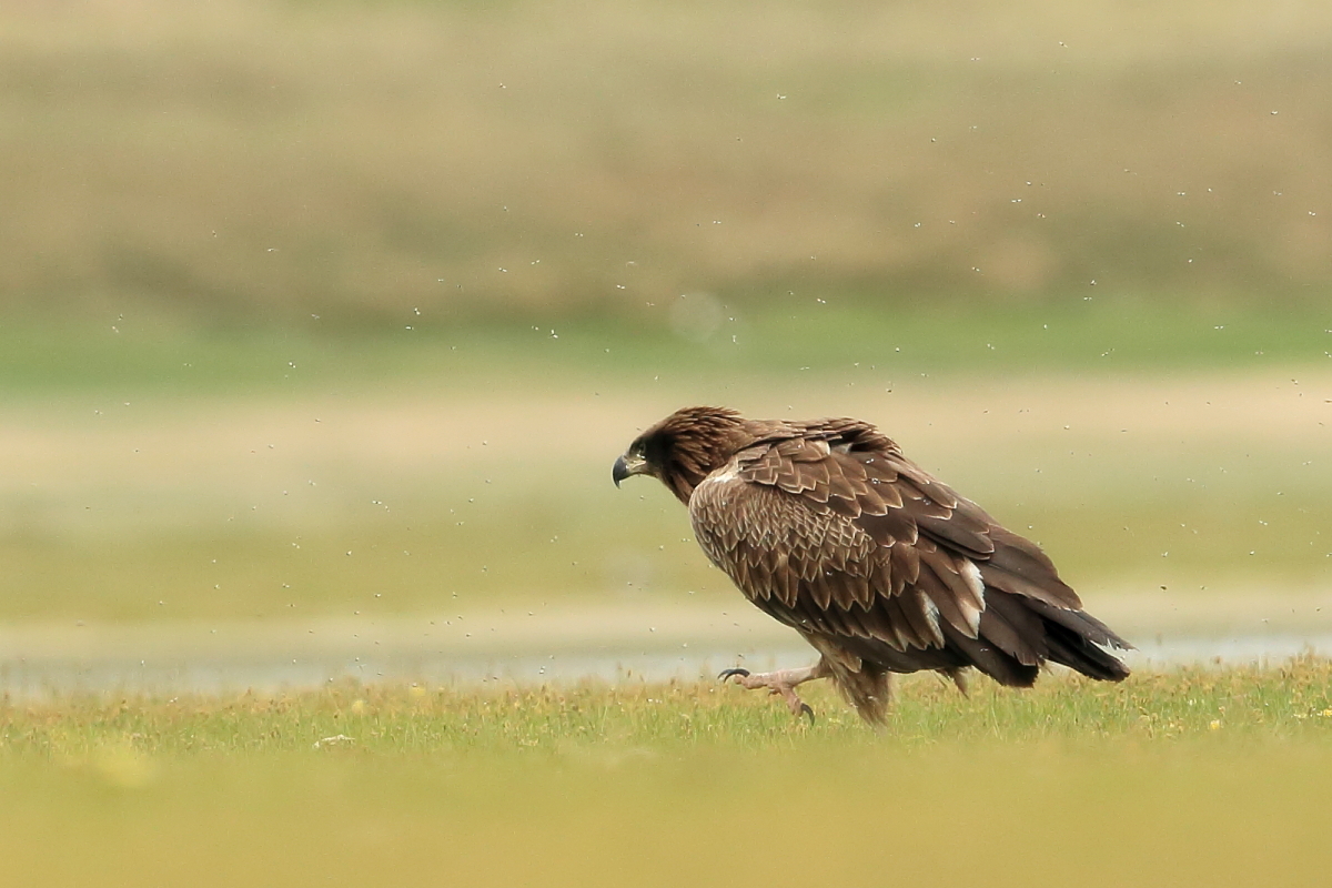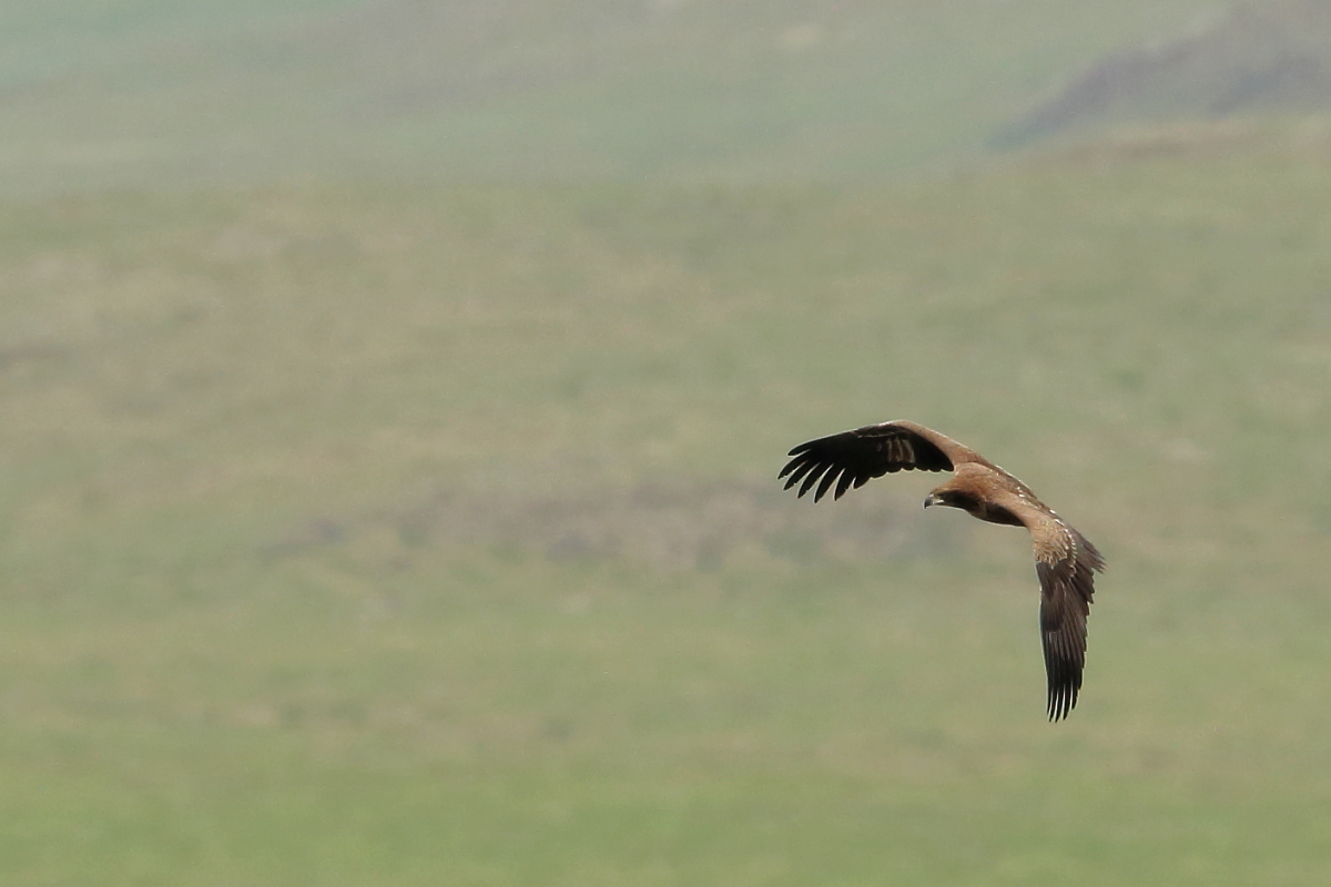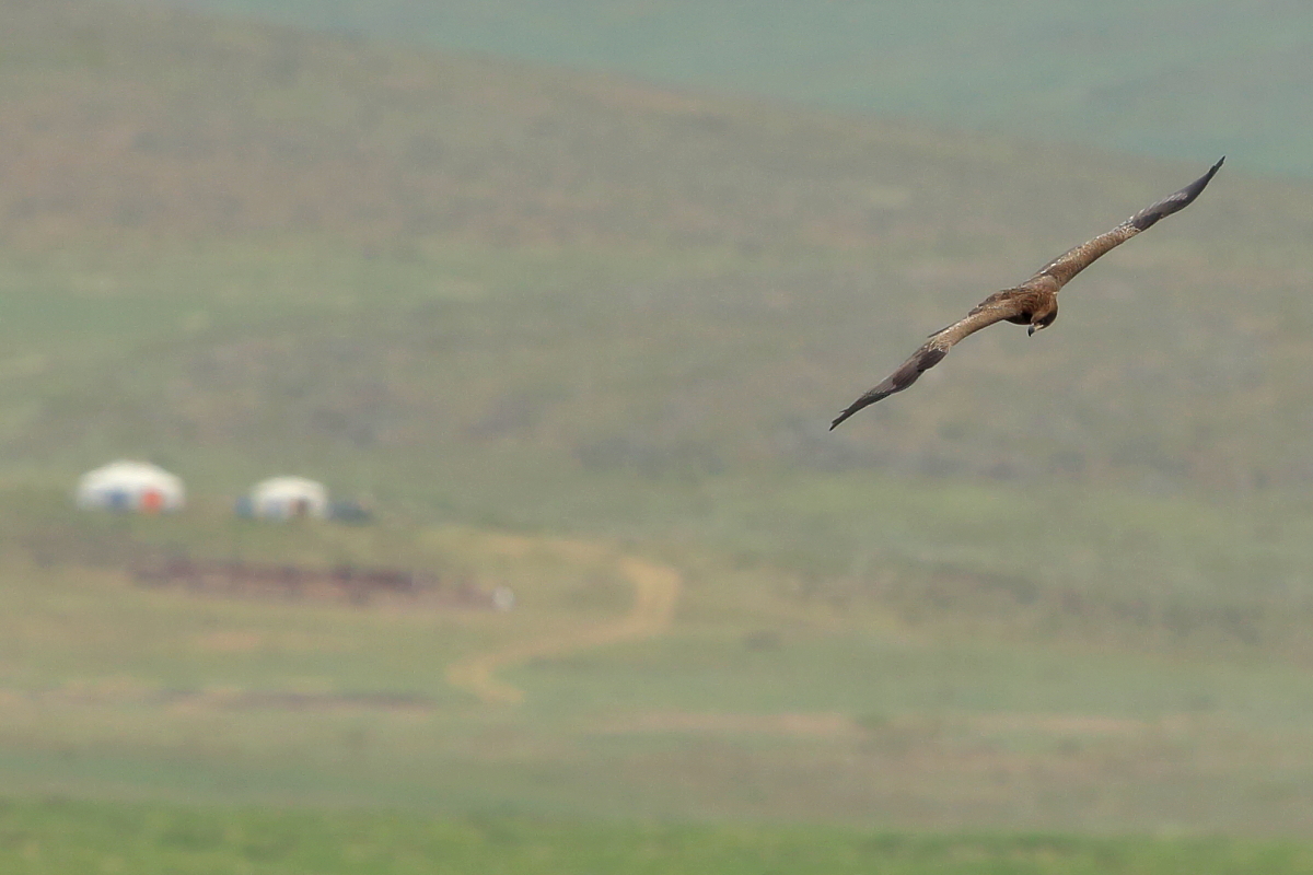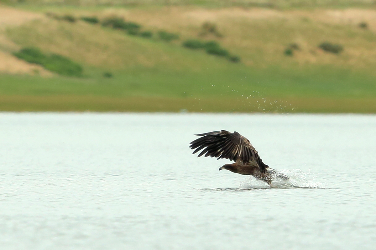 Well, one must be happy with what he/she managed to photograph. The pictures presented here are photographs of a young specimen of the Pallas’s sea eagle, which is a pity, as I think adult birds are much more beautiful and it is easy to spot differences between the Pallas’s sea eagle and our white-tailed eagle. There’s quite a peculiar story related to taking these pictures. When I was choosing a place for the morning photography session for the next day, I saw a Pallas’s sea eagle sitting down at several hundred meter’s distance from us. As I was approaching it slowly, I managed to shorten the distance to the bird and take photos, also during its several attempts of fishing, unfortunately from a much longer distance. But the first pictures were taken. On the next day, a solid bait spot, camouflage, a dozen or so hours of waiting and… nothing. The eagle wouldn’t show up.  Only a harrier and  Mongolian herring gulls appeared. If it hadn’t been for that lucky coincidence, we would have returned from Mongolia without pictures of this bird. Although it showed up in our country most probably only once, it belongs to the flora of Poland and as such it found its place on our list of birds, which we were interested in during our expedition.