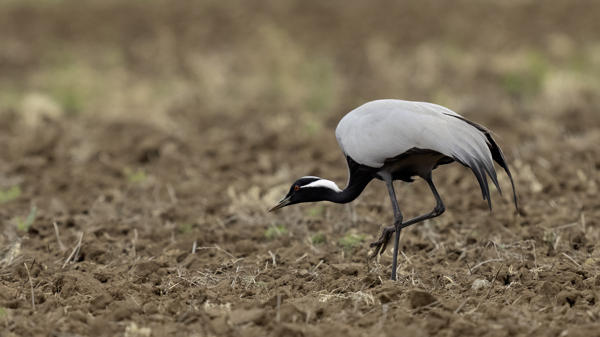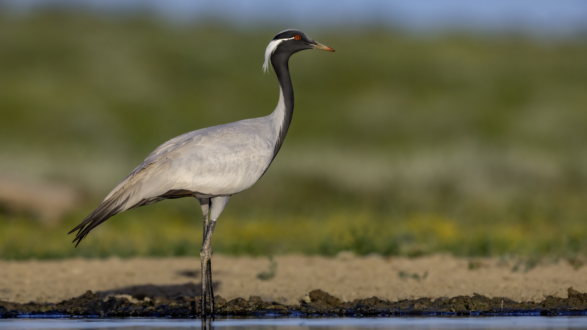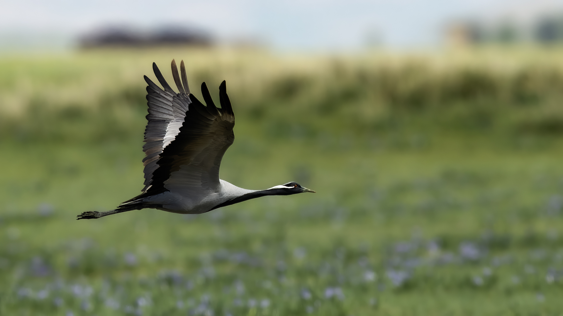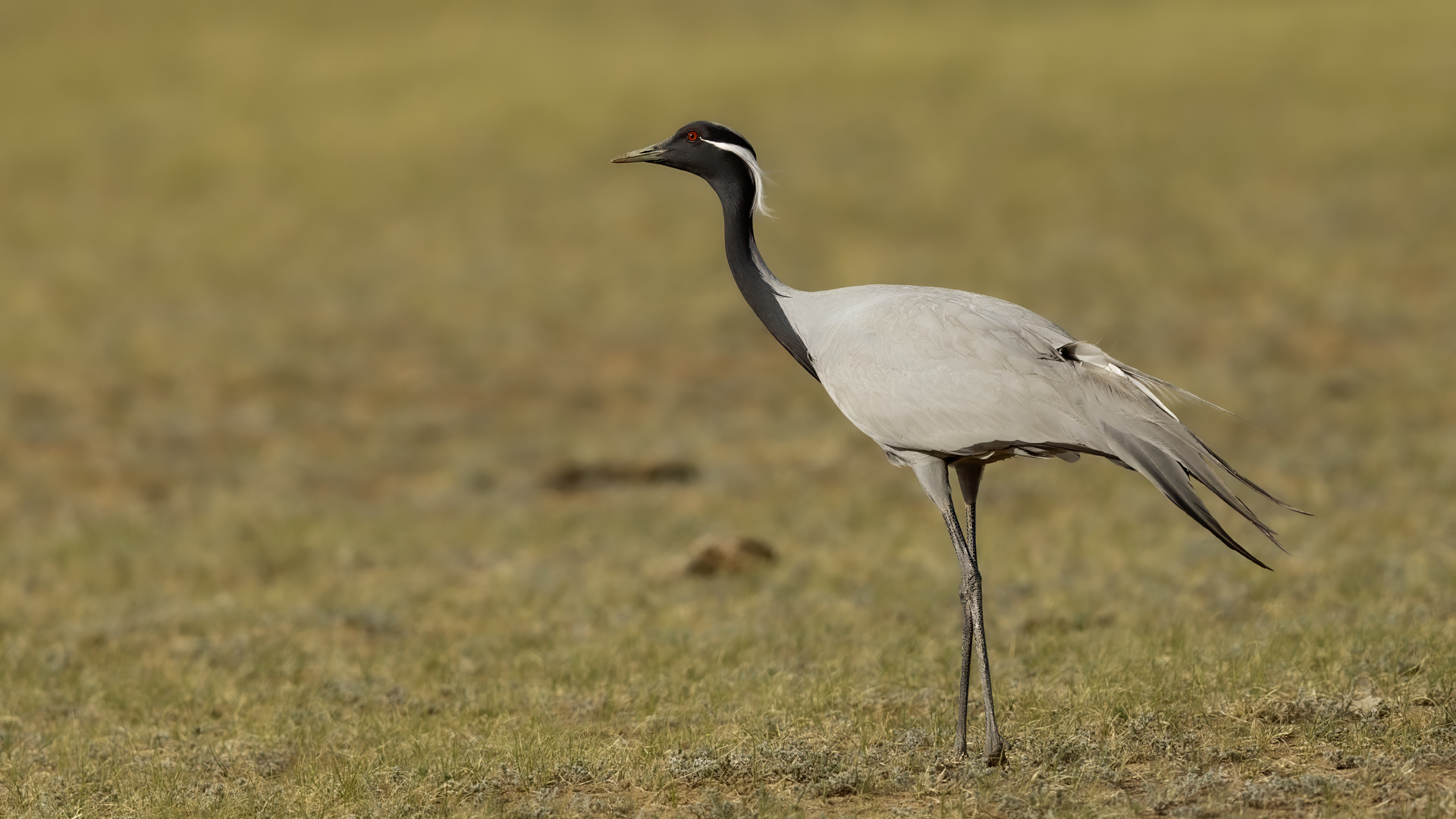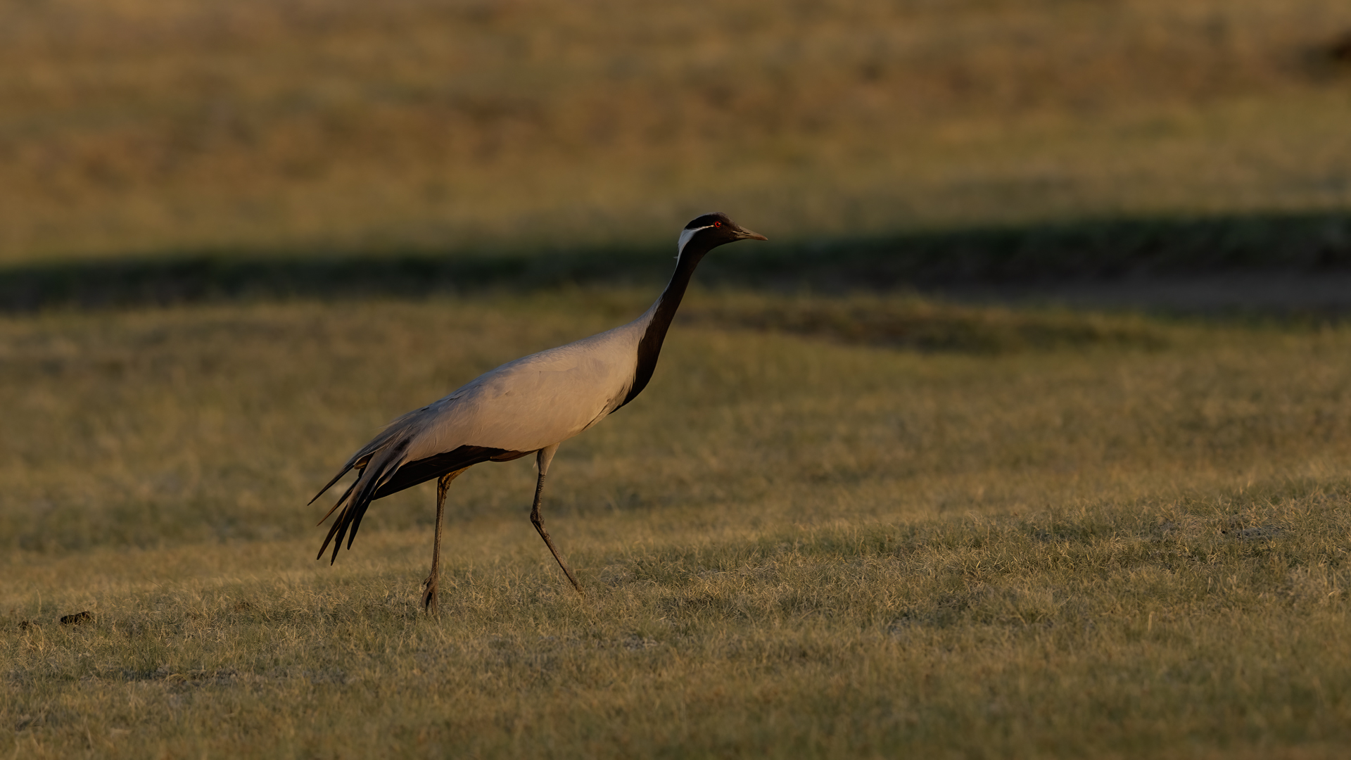 A beautiful bird, which without much difficulty, allowed me to take the pictures presented here. Almost each time it looked similarly: when we noticed the birds, we stopped the car and slowly approached them taking photos. And as there were many such encounters, there were many pictures to choose from to build the gallery of this bird on my website. It is a little bit smaller than our crane and less skittish. Most of the time we saw single pairs of these birds, but 3 times maybe we saw little flocks numbering up to 10 specimens.
