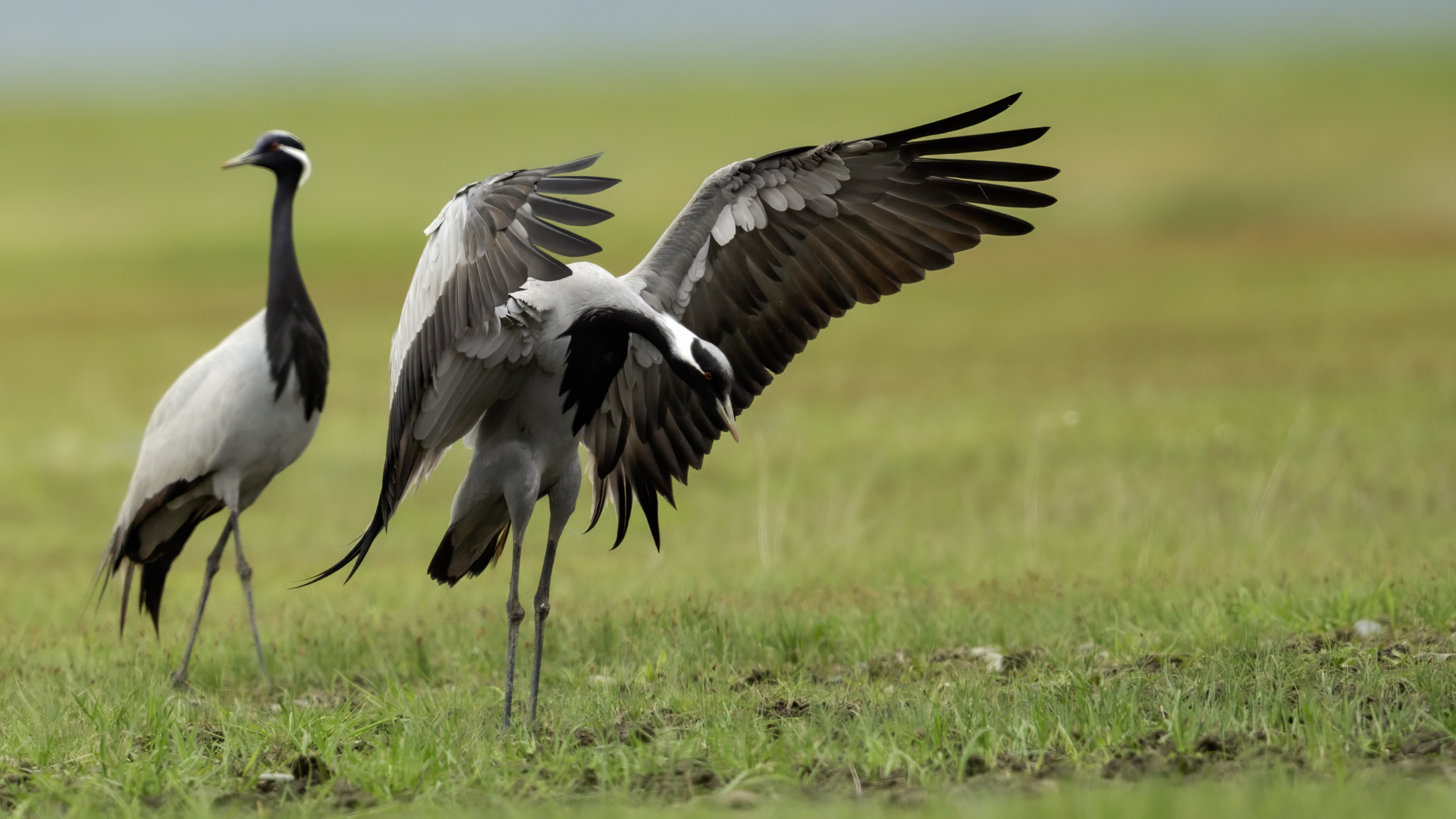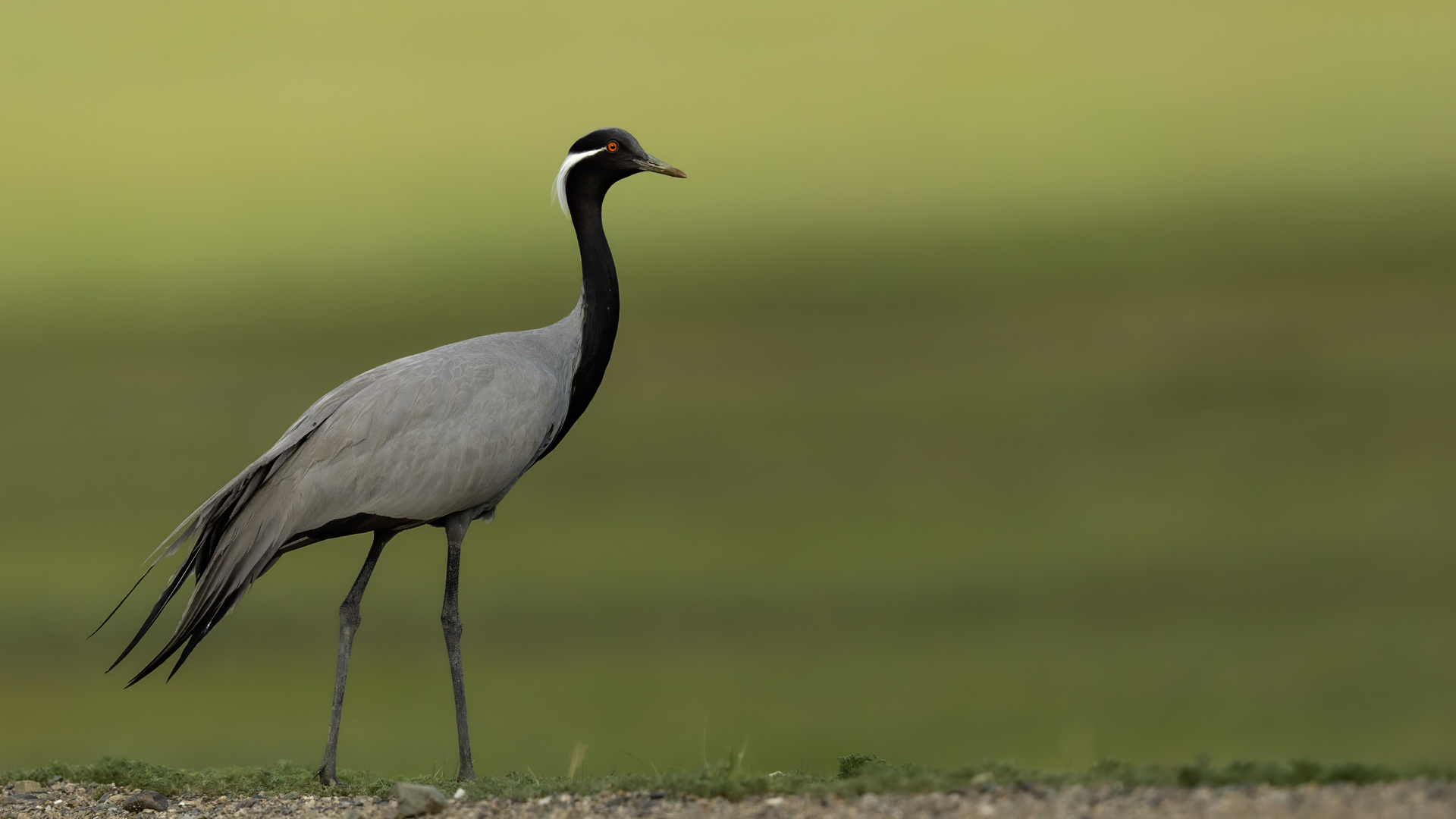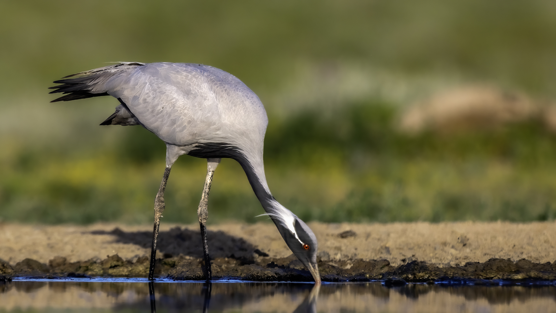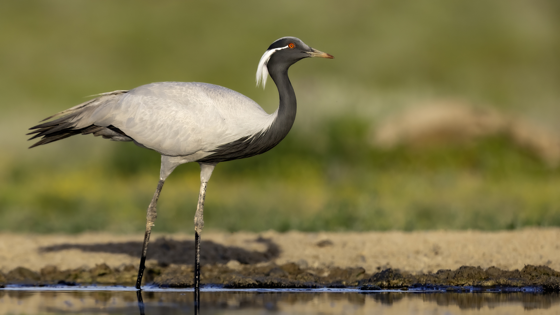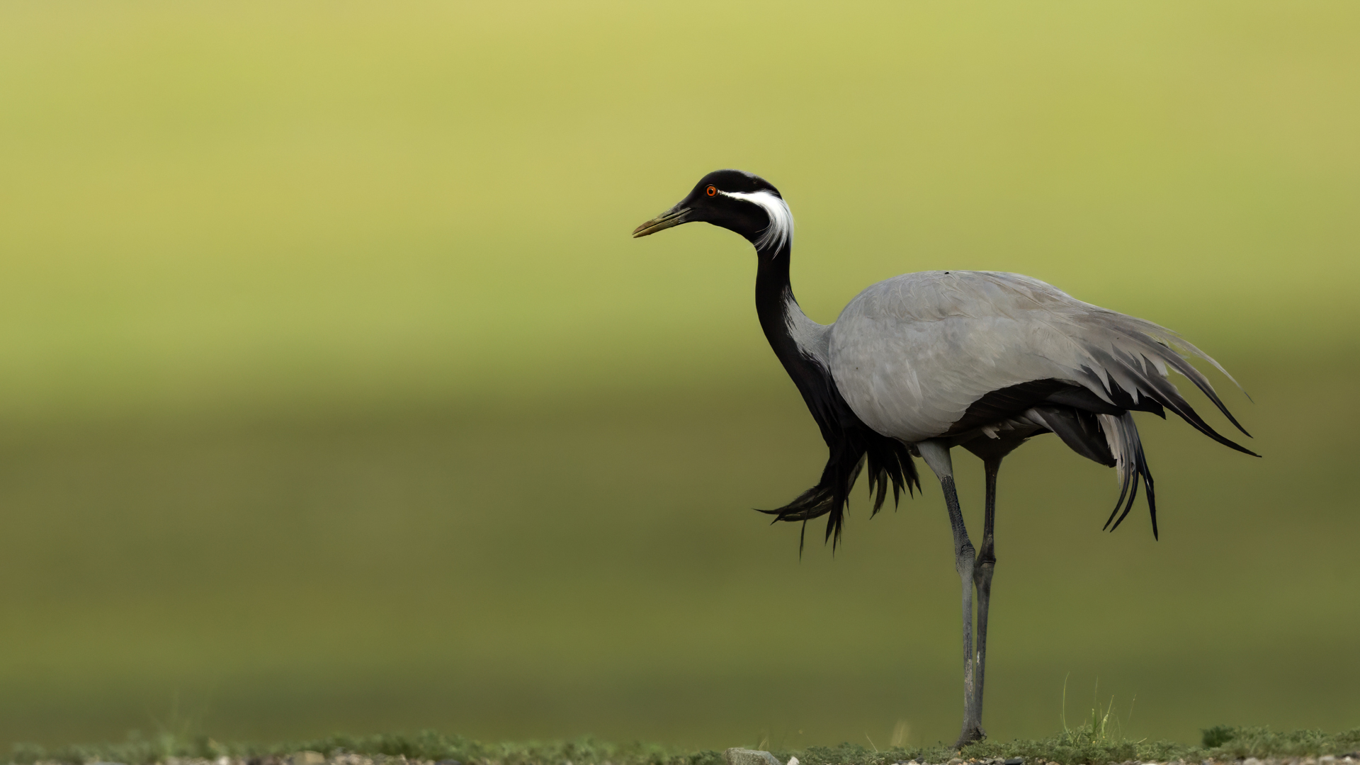 A beautiful bird, which without much difficulty, allowed me to take the pictures presented here. Almost each time it looked similarly: when we noticed the birds, we stopped the car and slowly approached them taking photos. And as there were many such encounters, there were many pictures to choose from to build the gallery of this bird on my website. It is a little bit smaller than our crane and less skittish. Most of the time we saw single pairs of these birds, but 3 times maybe we saw little flocks numbering up to 10 specimens.