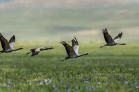 1. Pallas's Sandgrouse (T,V),2.Himalayan Vulture (T)3.Pallas's Sea-Eagle.(T)4.Demoiselle Crane(T).5.Upland Buzzard (T). 6.Siberian Scoter (T).7.Rufous-tailed Rock-Thrush (T).8.Saker falcon.9.Golden Eagle.10.Azure Tit (T,V).11.Horned Lark  (T,V).12.Red-billed Chough (T,V).13.Mongolian Lark (T).14.Mongolian Herring Gull (T,G).15.Bar-headed Goose (T, V).16.Amur Falcon (T,V).17.Rock Sparrow (T,V).18.Pine Bunting (T,V).19.Desert Wheatear (T,V).20. Merlin (T).21.Isabelline Shrike (T).22.White-crowned Penduline-Tit (T,V). 23.Oriental plover (T). 24.Citrine wagtail (T). 25.Greater Sand Plover (T).26.Red-crested pochard (T).27.Daurian redstart (T).28.Eastern marsh harrier (T).29.Swan Goose (T).30.Dusky Warbler.31.Taiga Flycatcher.32.Pacific Swift.33.Thick-billed warbler. 34.Asian brown flycatcher.35.Daurian jackdaw.36. Richard's Pipit. 37.Garganey. 38..Asian Short-toed Lark.