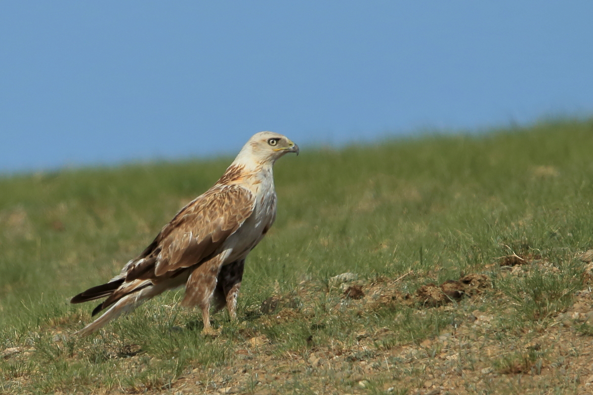 With the upland buzzard there was a similar story as with taking pictures of the demoiselle crane, the difference was that the encounters with the former were much rarer. Single specimens would appear on our route and  keeping calm we managed to capture this bird. It is a little bit heavier than our buzzard (with the weight reaching up to 1.4 kg) and has a little bigger wingspan – up to 1.6 meters. Its plumage may vary from light to almost entirely brown.