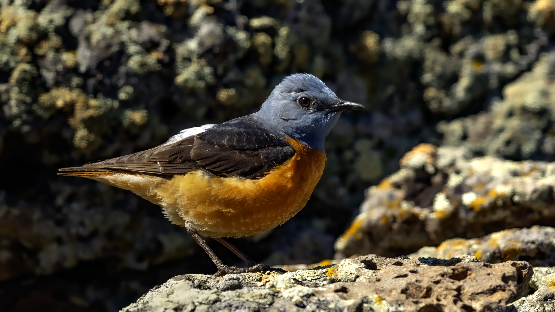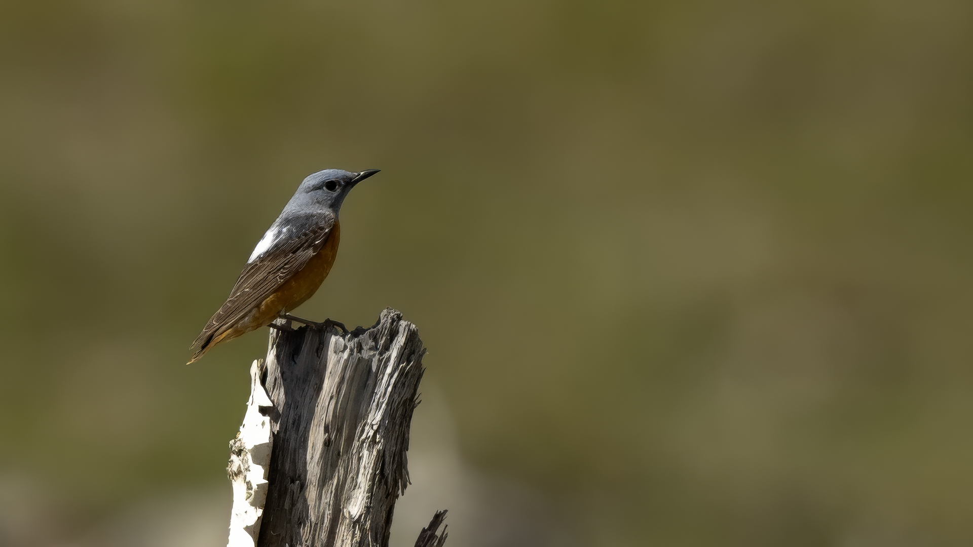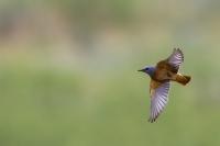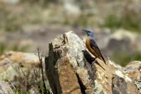 Another rare bird belonging to our fauna, which finds its place in my gallery. I had three encounters with the rufous-tailed rock thrush, but only once the lighting conditions and distance were favorable to take good photos. The first encounter with the rufous-tailed rock thrush was quite interesting, and to be more specific, its ending. Several hours of waiting, and sadly nothing comes of photographing. But in the mountainous terrain suddenly the weather changed and a storm raged around, initially even with hail. We weren’t prepared for such a possibility, and descending the slopes while it was hailing was quite burdensome. We decided to wait in a little tent-hide until the storm weakens. Being a group of three on such a small space is quite tiresome, but it is better than going down the slope in the pouring rain and risking soaking our clothing and equipment. The storm was quite violent as it scared away a herd of deer, which would run in tens with terror near our tent. Of course there were no conditions for taking photos. The following encounters with the rufous-tailed rock thrush were more fruitful in taking pictures than having extreme experiences. On one occasion only I managed to see a female in the company of a male rufous-tailed rock thrush, but the midday sunlight and the distance made it impossible to take a good photo. The rufous-tailed rock thrush is also called rock thrush.