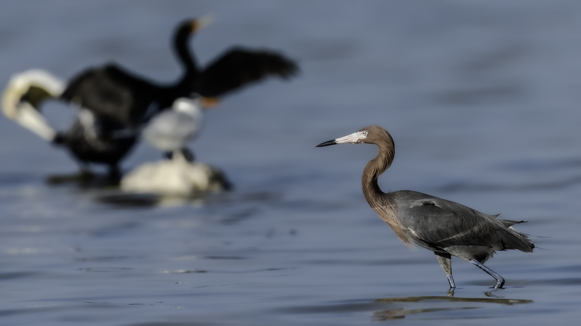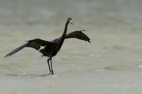 Observations of such behavior in a egret must be recorded in the species gallery information and added to the website’s news section. This egret completely surprised me with its highly unusual hunting style. Typically, we see egrets as motionless, focused figures, patiently waiting for the right moment to strike swiftly at a passing fish. However, this time, it was entirely different. This egret adopted a completely different strategy—instead of waiting, it actively ran and flew after the fish, fully immersed in the chase. Its chaotic, almost comical movements resembled playful excitement rather than traditional hunting. Moreover, the bird was so focused on catching its prey that it occasionally approached passing tourists at an unexpectedly close distance. At one point, it even seemed surprised by its own proximity—suddenly increasing the gap, only to return moments later to its frantic pursuit. The Reddish egret in a completely new, unexpected light—full of energy, surprises, and hunting in a truly unconventional style!