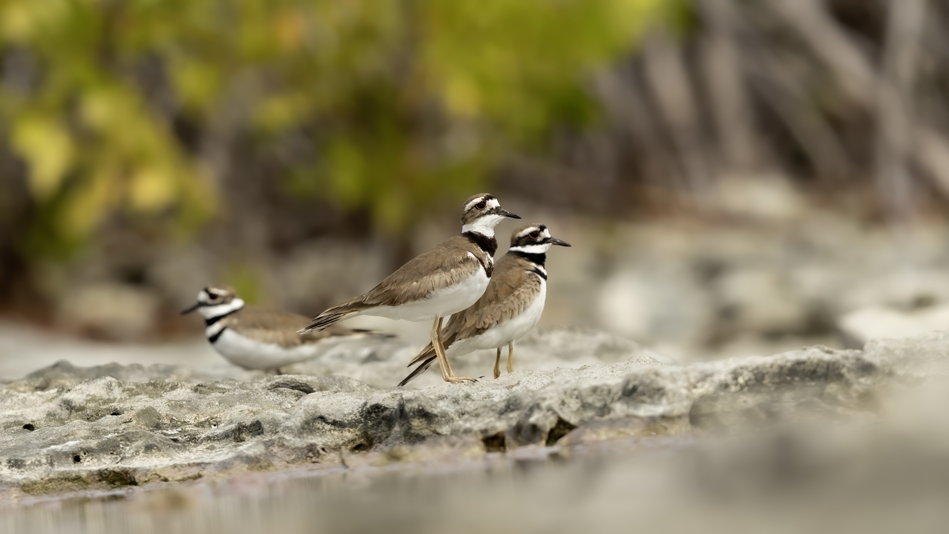 1.Tricolored Heron. 2.Killdeer. 3.Bananaquit (T,V). 4.Black-and-white Warbler (T). 5.Cape May Warbler. 6.Smooth-billed Ani (V). 7.Black-throated Blue Warbler. 8.Yellow-faced Grassquit. 9.Northern Parula. 10.Northern Mockingbird. 11.Prairie Warbler. 12.American Redstart. 13.Ovenbird. 14Turkey Vulture. 15.Red-legged Thrush (T). 16.Grey Plover (PL). 17.Feral pigeons (PL,T). 18.Black-crowned Night Heron (PL). 19.Royal Tern (T,V). 20.Willet. 21.Lesser Yellowlegs (PL,T). 22.Magnificent Frigatebird (T). 23.American Kestrel. 24.Little Blue Heron. 25.Greater Yellowlegs (PL,T). 26.Black-necked Stilt. 27.Short-billed Dowitcher. 28.Greater Antillean Grackle. 29.Green Heron. 30. West Indian Whistling-Duck. 31.Snowy Egret. 32.Great Egret (PL). 33. Least Grebe. 34.Sanderling.