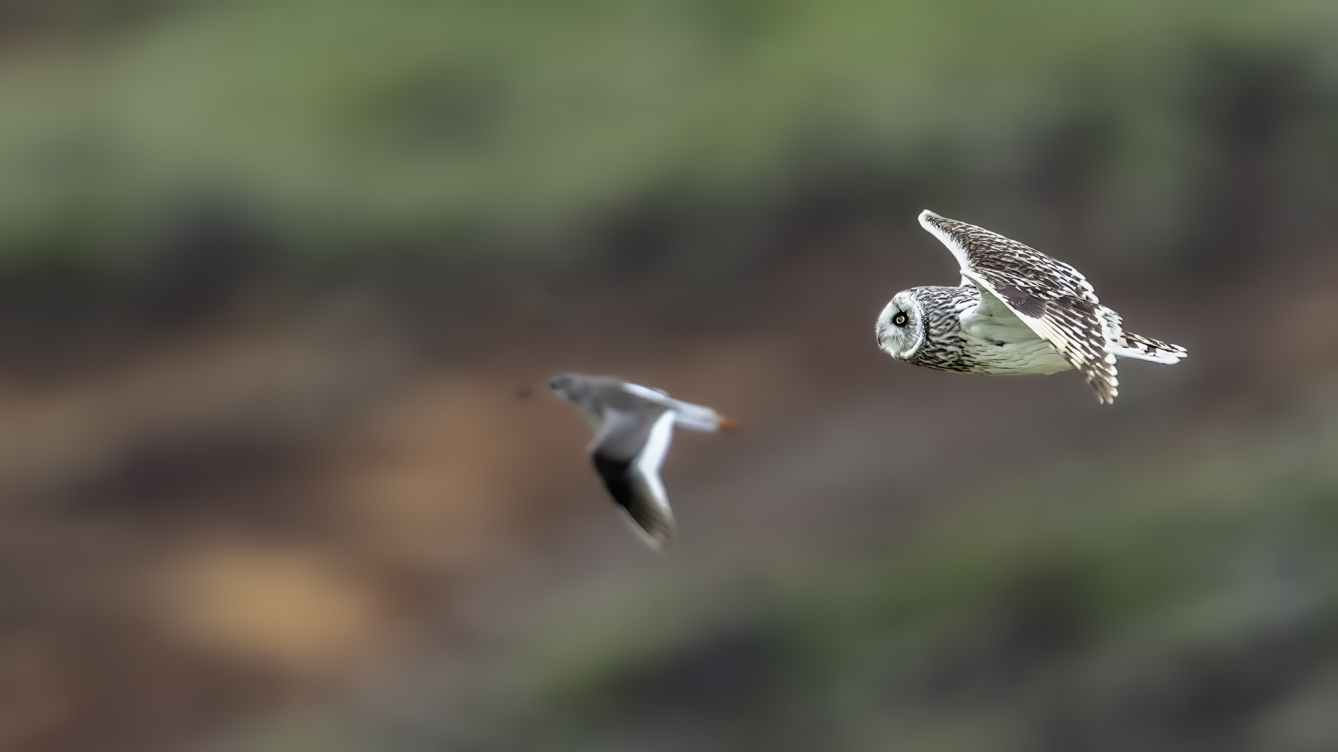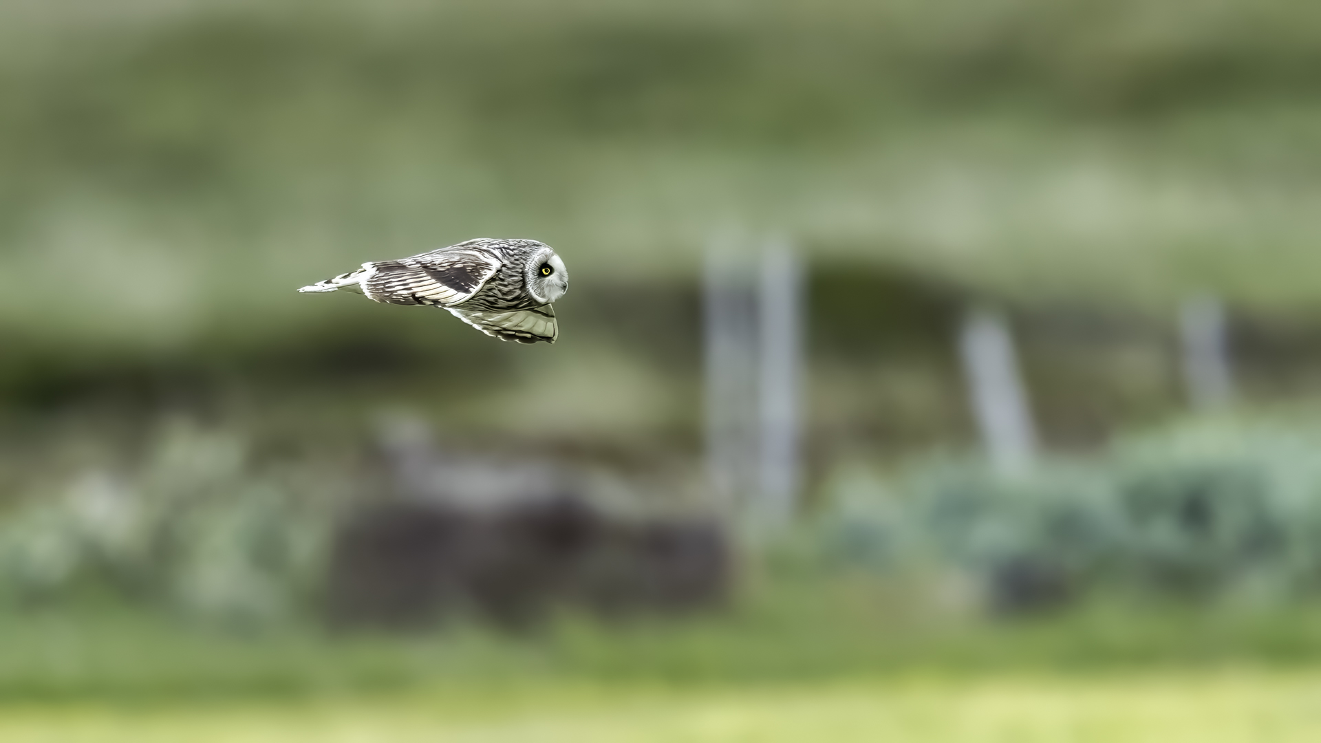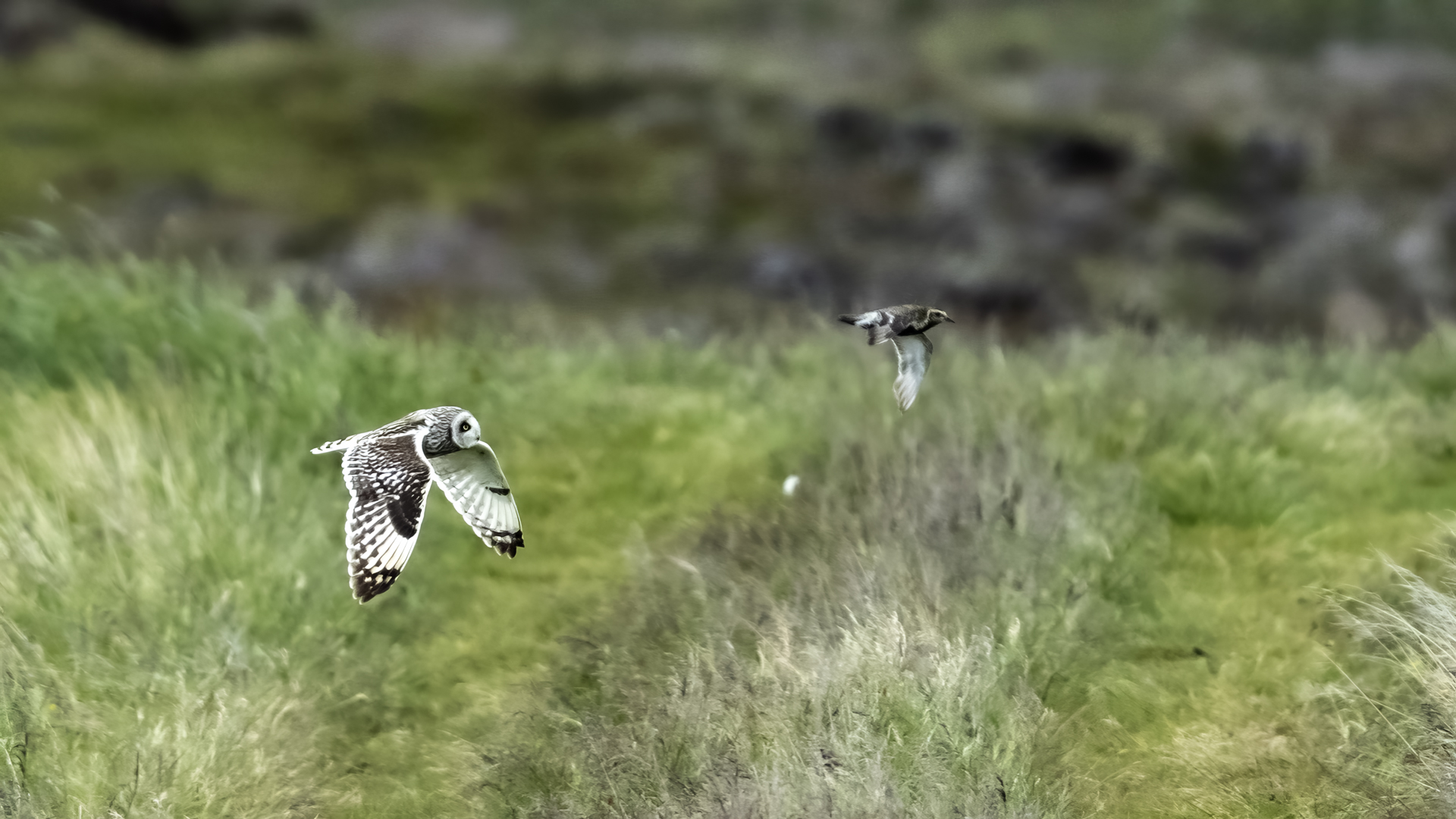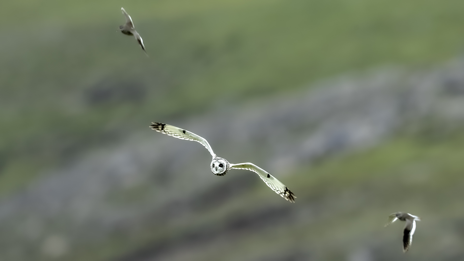 Also this time I encountered a short-eared owl three times in Iceland, each time it was spotted at first from the public road. But one of those meetings was special. It changed my gallery, documentary so far. We could observe how the owl behaved, which hunted in this area - let's say - around us. On other occasions it could be seen for a moment and we could only watch it from a distance, amazed how large is the area it hunts across. Alex, this time you noticed this owl, thank you and best regards. In the other two cases, although we were looking for the bird patiently, it did not make a full circle and did not come back to appear in front of our cameras lenses. It was a good hunter, as during this successful photo session we saw two effective hunts. Unfortunately, it was always a bit too far, though once it was so interested in us that flew just above our heads. The owl sat on the roadside fence posts from where observed the area and started the next hunt. When flying it was always accompanied by other birds - its potential prey. They were probably assuming that it was better to control the threat at close range than to be startled and end up as its meal. Terns, redshanks and redwings assisted the owl in flight. Finally, I took a few interesting photos and the previous documentary gallery of this beautiful bird fell into oblivion. My impressions after this meeting will be long remembered, and the short-eared owl goes to the news.