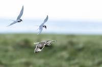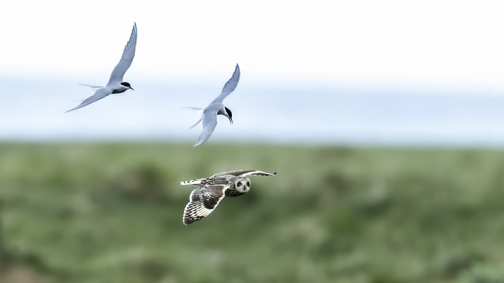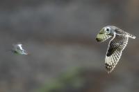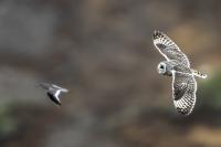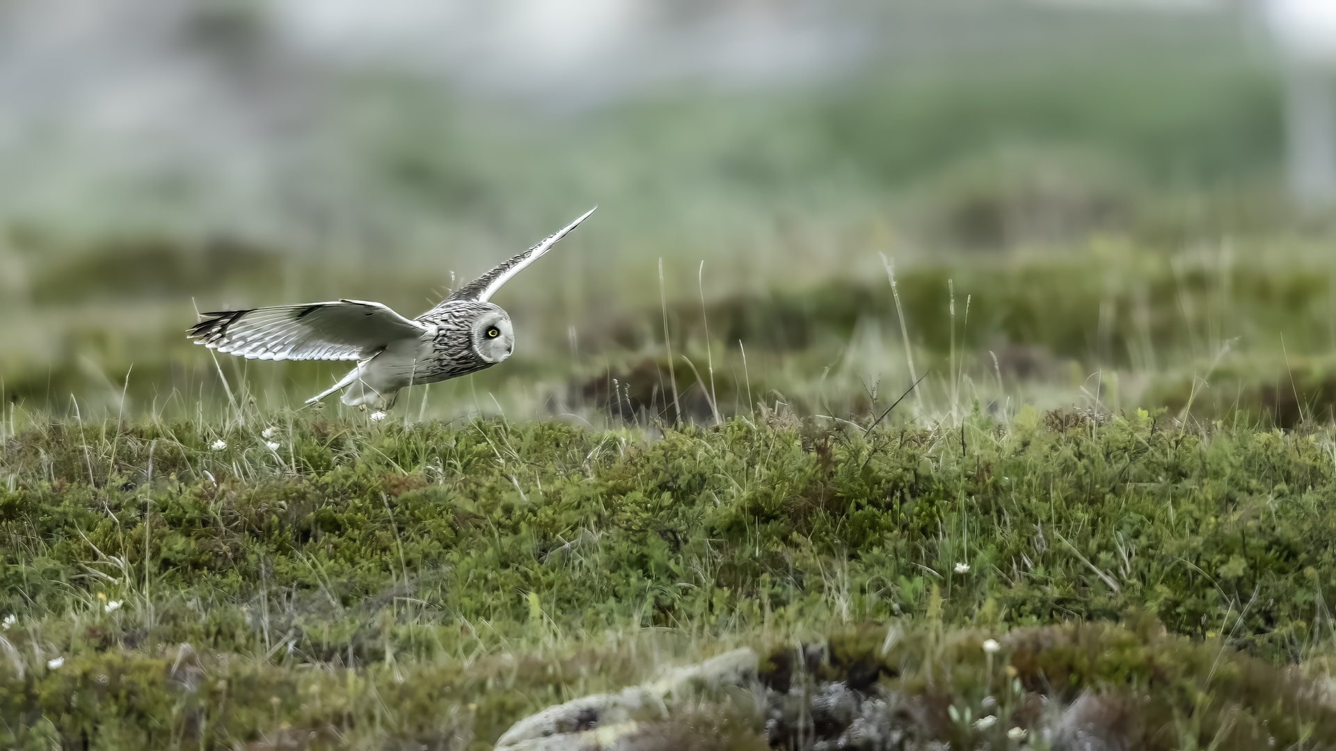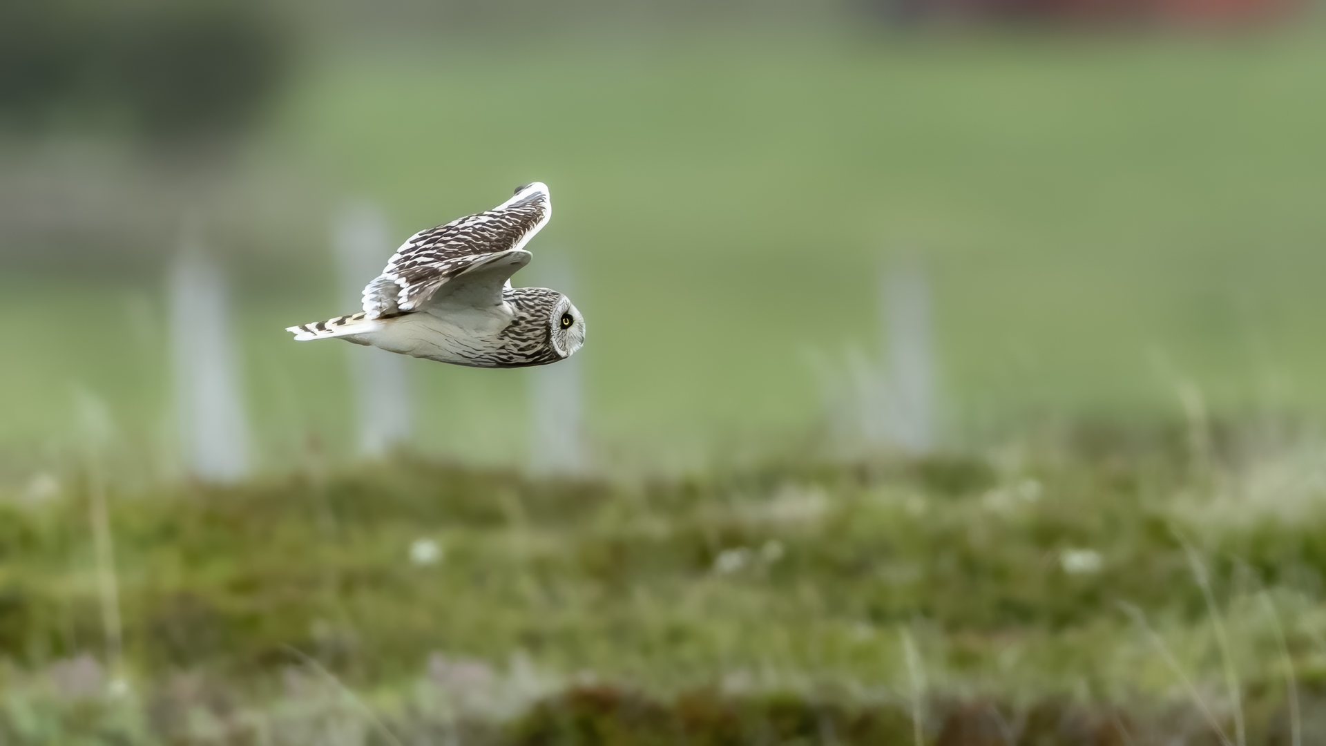 Also this time I encountered a short-eared owl three times in Iceland, each time it was spotted at first from the public road. But one of those meetings was special. It changed my gallery, documentary so far. We could observe how the owl behaved, which hunted in this area - let's say - around us. On other occasions it could be seen for a moment and we could only watch it from a distance, amazed how large is the area it hunts across. Alex, this time you noticed this owl, thank you and best regards. In the other two cases, although we were looking for the bird patiently, it did not make a full circle and did not come back to appear in front of our cameras lenses. It was a good hunter, as during this successful photo session we saw two effective hunts. Unfortunately, it was always a bit too far, though once it was so interested in us that flew just above our heads. The owl sat on the roadside fence posts from where observed the area and started the next hunt. When flying it was always accompanied by other birds - its potential prey. They were probably assuming that it was better to control the threat at close range than to be startled and end up as its meal. Terns, redshanks and redwings assisted the owl in flight. Finally, I took a few interesting photos and the previous documentary gallery of this beautiful bird fell into oblivion. My impressions after this meeting will be long remembered, and the short-eared owl goes to the news.