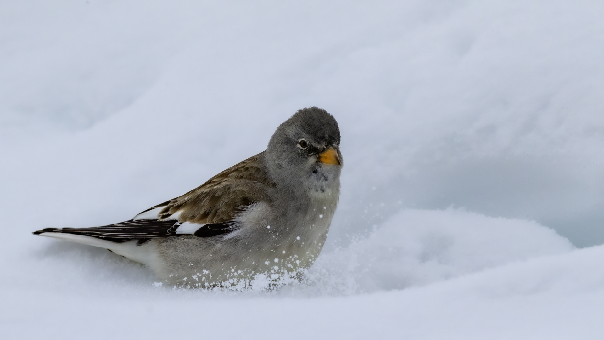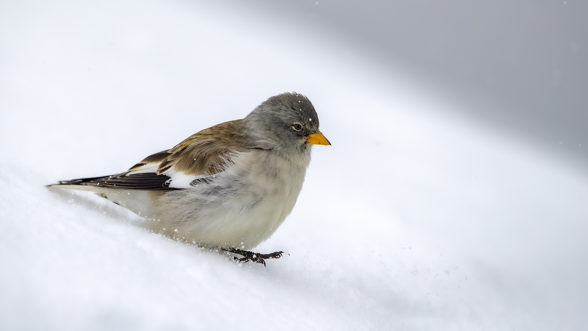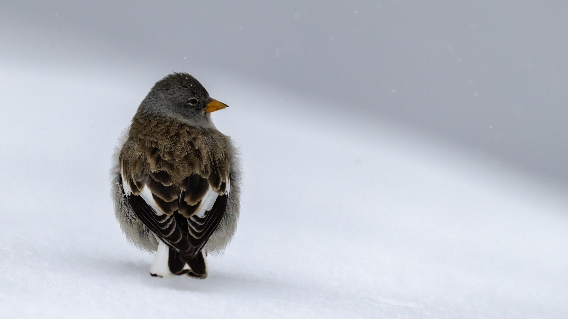 White-winged Snowflinch was in Poland several times. Its natural environment are mountains from 1500 to 5000 meters. But it doesn’t nest in Tatra mountains. It’s possible to be seen around houses and ski lifts stations. Ula - the local bird lover gave us hint to check the 2nd localization. Greetings for Ula! Thanks to you we photographed not only Wallcreeper (link) but Also White-winged Snowflinch and Yellow-billed Chough (link). We went by ski lift 2200 meters high. On the top it was foggy and a lot of skiers. We couldn’t see White-winged Snowflinches. We went a little further to more secluded place and we managed to photograph it. I created the new “White-winged Snowflinch” gallery on my website.