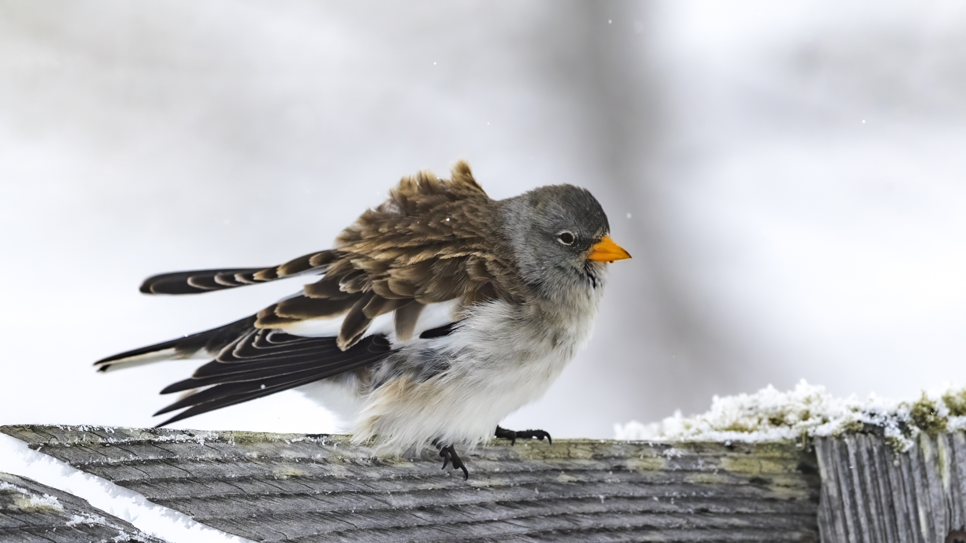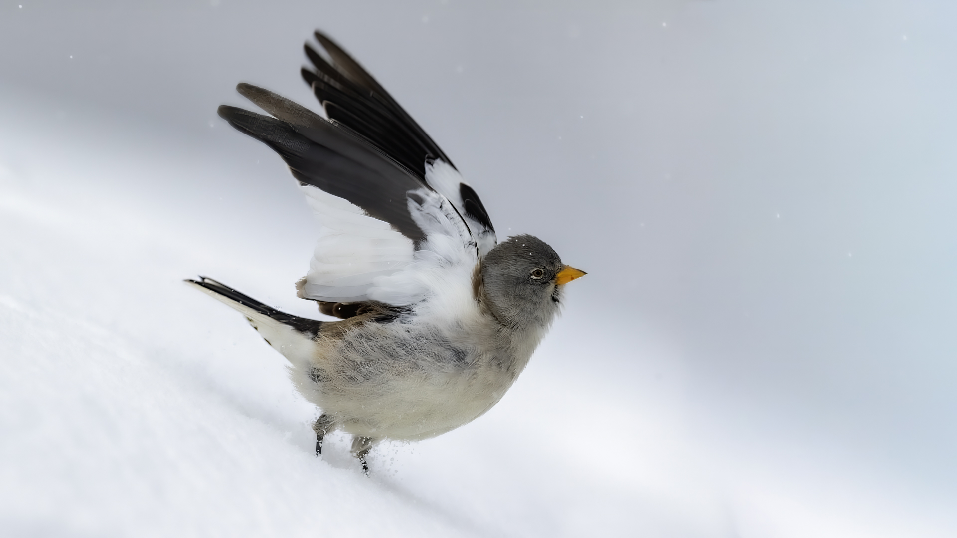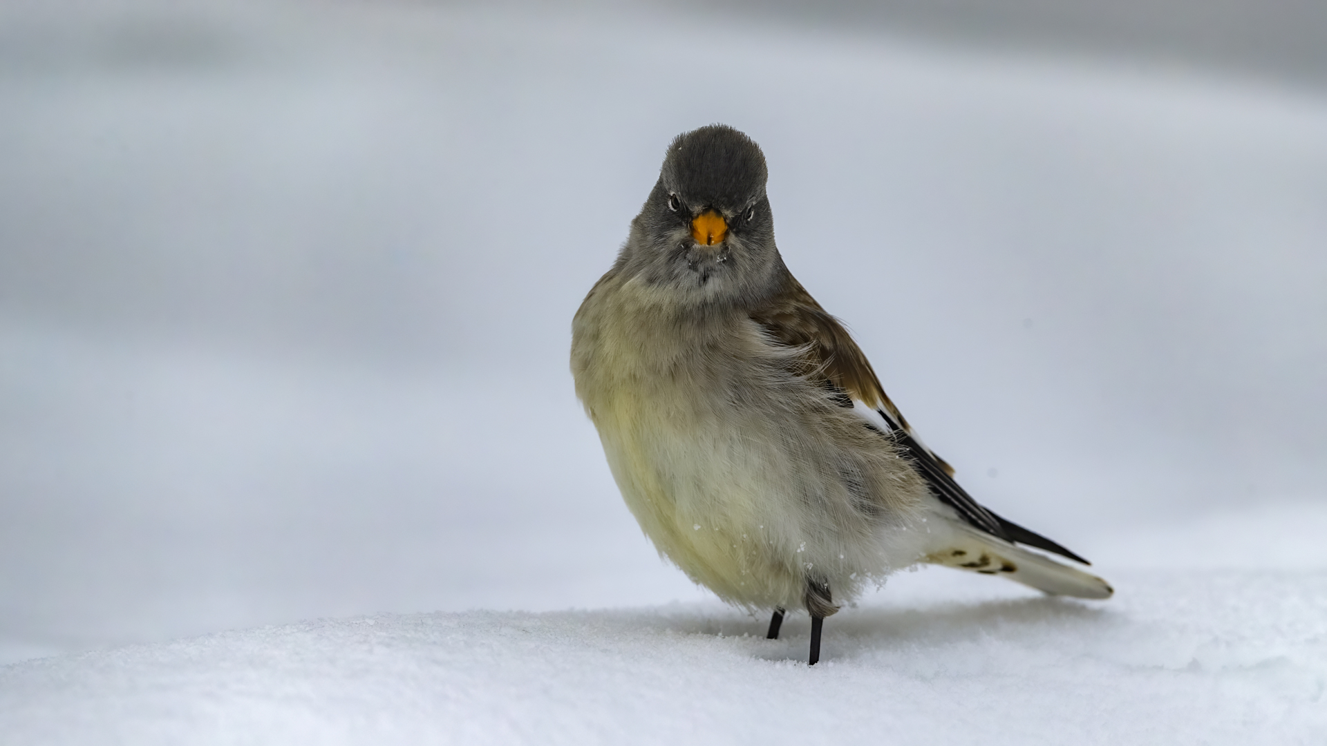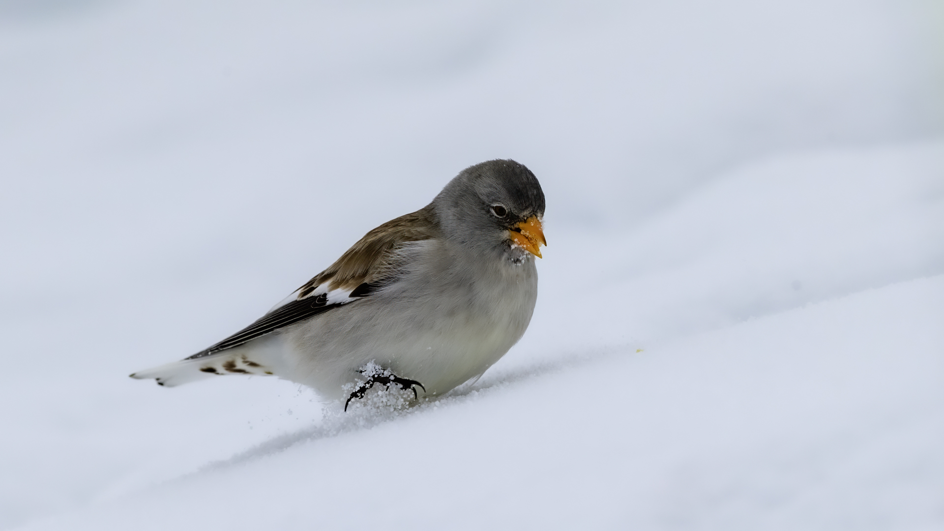 White-winged Snowflinch was in Poland several times. Its natural environment are mountains from 1500 to 5000 meters. But it doesn’t nest in Tatra mountains. It’s possible to be seen around houses and ski lifts stations. Ula - the local bird lover gave us hint to check the 2nd localization. Greetings for Ula! Thanks to you we photographed not only Wallcreeper (link) but Also White-winged Snowflinch and Yellow-billed Chough (link). We went by ski lift 2200 meters high. On the top it was foggy and a lot of skiers. We couldn’t see White-winged Snowflinches. We went a little further to more secluded place and we managed to photograph it. I created the new “White-winged Snowflinch” gallery on my website.