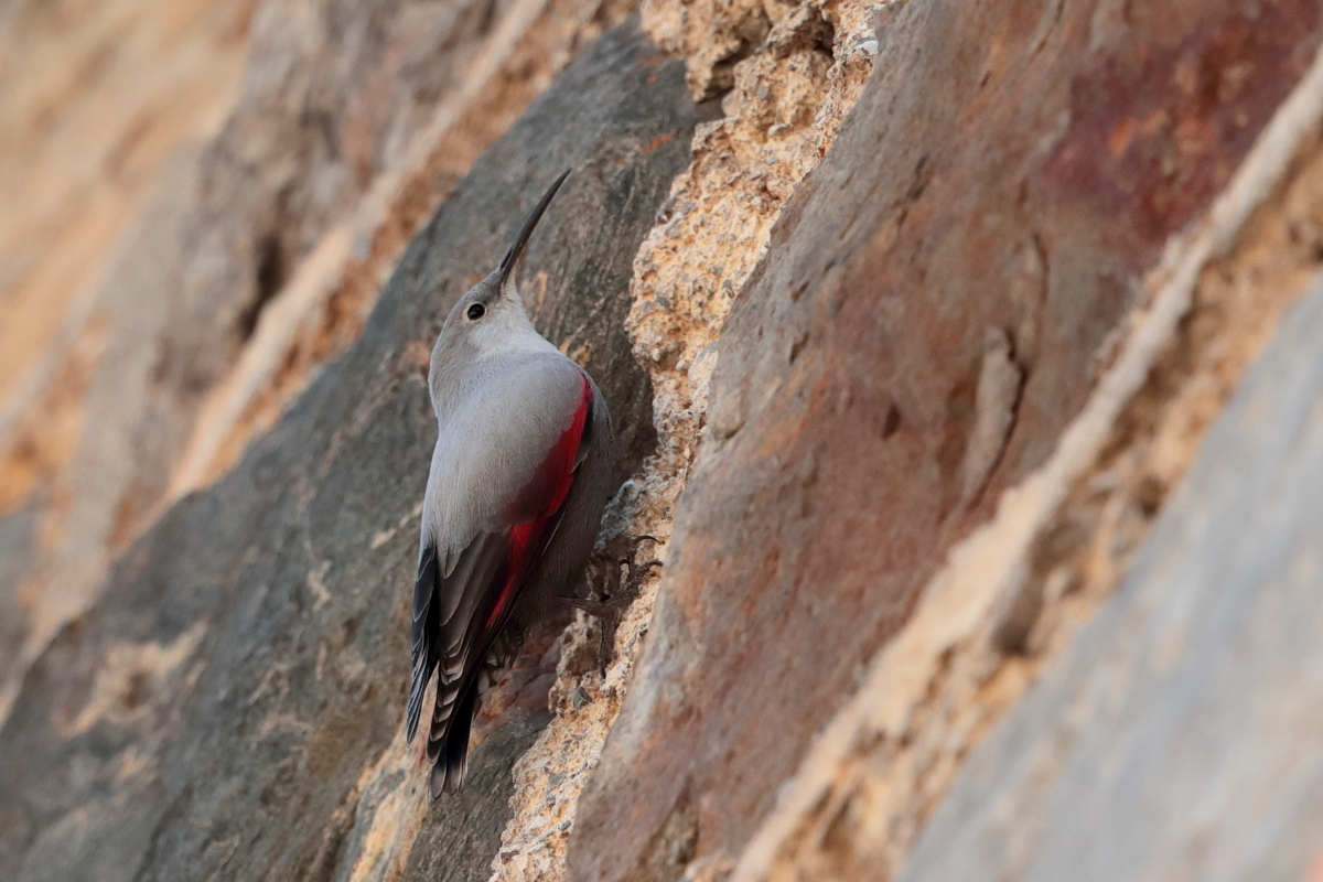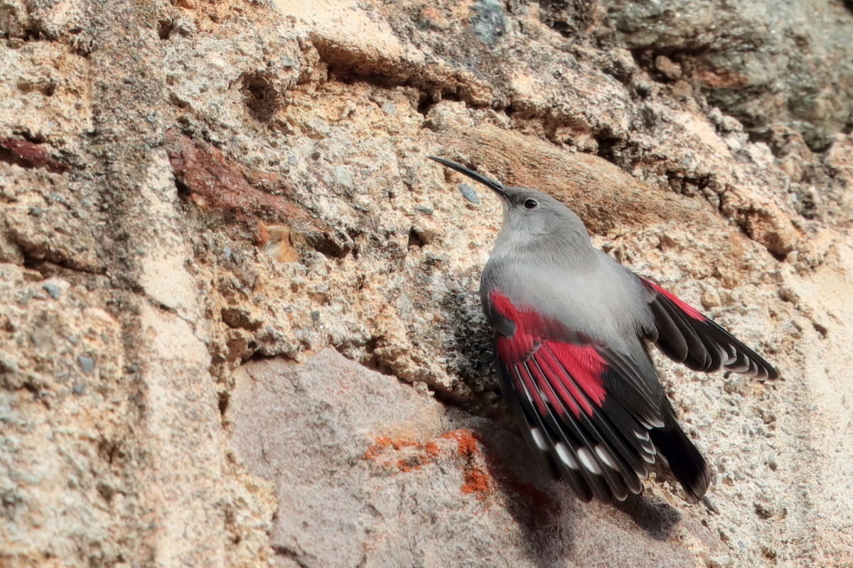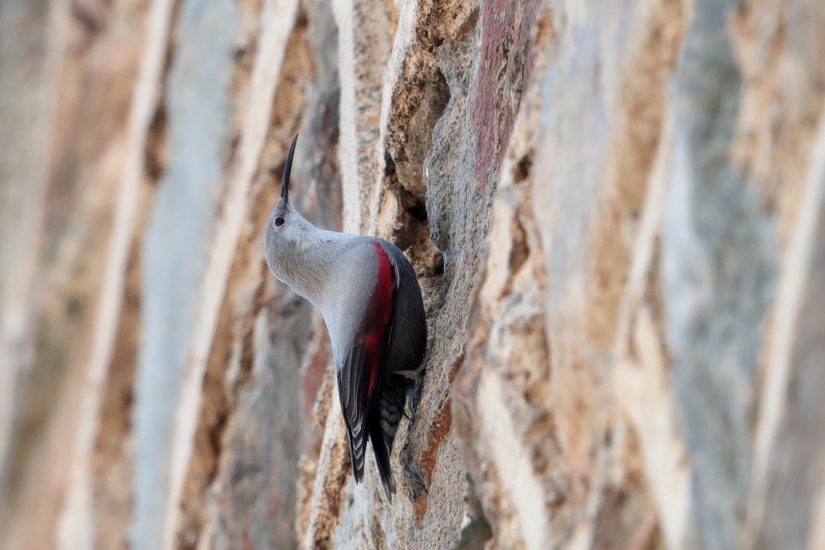 European population of a Wallcreeper is estimated at tens thousands of pairs. Statistically it isn’t uncommon bird. Unfortunately that’s only statistics, because the environment in which Wallcreeper lives, makes him very tough to observe or take some pictures. They live in up to 4000 meters high rock cliffs . They weigh about 20 grams. These little birds live in inaccessible areas, so I could only admire others’ photos. Polish population of Wallcreeper is very small. That’s about 20 pairs, but some sources believe there are less than 10 .That’s why my first contact with it was postponed. Until when Jacek called me with an information that it is possible to regularly observe Wallcreeper in Tirol on a stone tower. The information was very surprising, but the possibility of photographing it was priceless. Pictures, which i present in my gallery were taken thanks to kindness of local people, who shared the information, observed the behaviour of this bird and confirmed high possibility of photographing it. Greetings for Josef, Ula, Gertruda, Henryk and Jacek - the organizer of the whole trip. But for the recognition of Wallcreeper we could drive 1500 km for no reason. We were very excited when we got to our destination and stated next to the tower. There were so much nose of a tiny town, so we couldn’t believe that Wallcreeper could come here. We didn’t have to wait long. About 12 o’clock the Wallcreeper appeared and preyed for 4 hours. Unfortunately it was a little bit too high for us all the time, but the joy of this situation was still huge. He moved quickly on the vertical wall, jumping for an insect every now and then. These 4 hours were enough to take my first photos of it. It let me create a new gallery of this incredible bird. Finally!