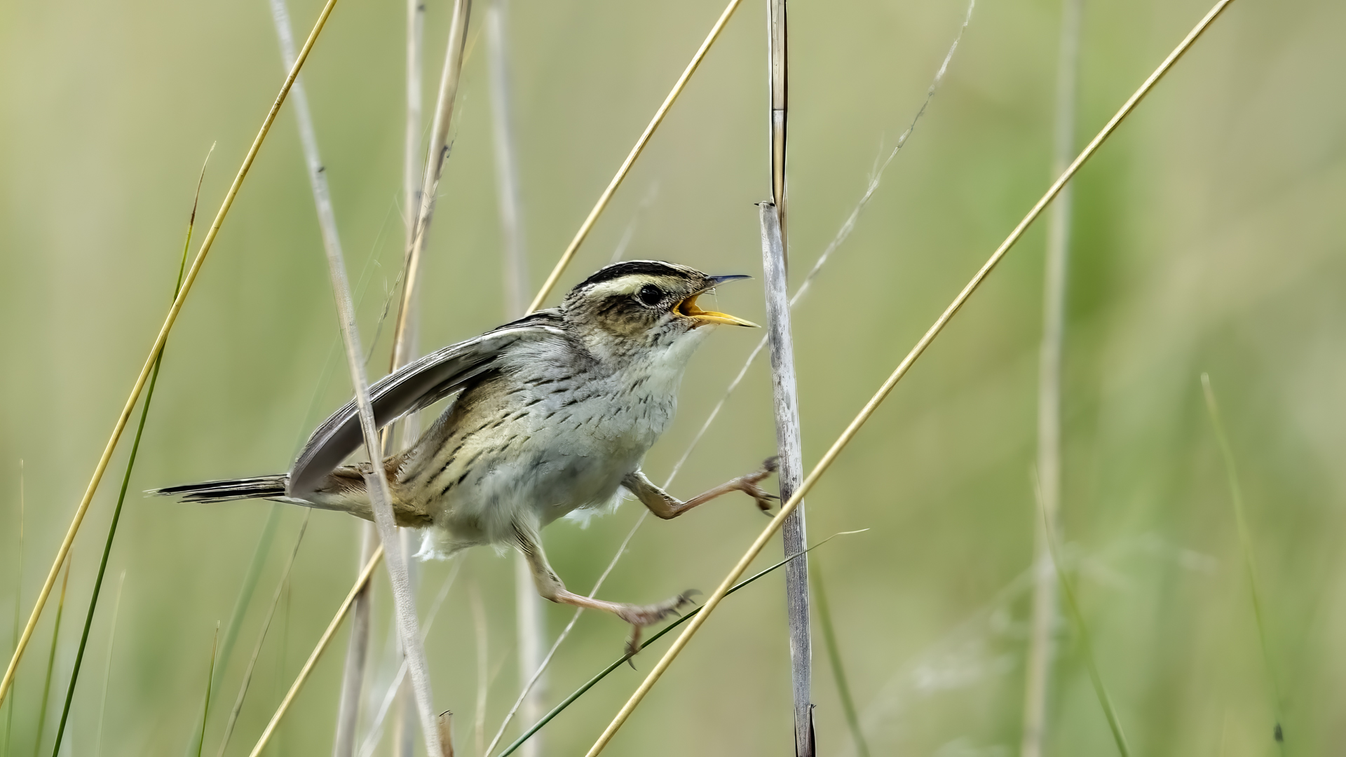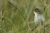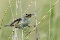Aquatic warbler finally went to my collection Polish fauna. Finally because i've already tried to photograph it, but my biggest achievement to this moment was hearing the voice of a male without photographing it. Without help and kindness it would still be my plan to photograph Aquatic warbler. Many thanks to Mrs. Ewa and Ania and Mr. Waldek because only thanks to their help, knowledge and care for Aquatic Warbler breeding grounds, the presented gallery was created. I was also a bit lucky. The first 5 hours of waiting for Aquatic Warbler were not optimistic. The wind was quite strong and we had the impression that we were sitting masked in the bird desert. Nothing happened at all. In the meantime, to make matters worse, it rained for a moment and there was no indication that the bird would appear. Aquatic Warblers inhabit open swampy areas, wet meadows with single, short shrubs and grasses up to half a meter high. This strong wind caused that a dozen grams of filigree bird remained hidden in the grass on the ground. Fortunately, an hour before sunset, the wind died down and the entire wetland meadow came alive, and most importantly there was an Aquatic Warbler, or more precisely a male Aquatic Warbler. The first pictures are created and the better voice recording. We heard the Aquatic Warbler before (Jacek best regards), but from a fairly distant distance in the blowing wind, the voice recording was of a very poor quality. It was worth stopping for a moment to have a complete gallery with the sound of this rare bird. In recent years, Aquatic Warbler has been included in comprehensive species protection programs due to the radical decline in the population. Who knows, or thanks to the commitment of many people, you can still observe Aquatic Warbler in Poland. For me it is a photographed 384 species of bird belonging to the fauna of Poland, so another great holiday on (384/462). Species included in the Polish fauna are of greater importance to me than foreign, exotic ones. The years of waiting for the moment of the first meeting with Aquatic Warbler are intensified by the emotions associated with the creation of the first photos of Aquatic Warbler. Aquatic Warbler habitats in Poland constitute about a quarter of the entire world population of this species. Estimates of Aquatic Warbler are quite accurate, because singing males count, which are very active on their small terrain, assuming that the strong wind is not blowing of course :-). Males do not participate in the education of young. It would be quite exhausting for a male who may be the father of young in many nests in the area. Aquatic Warbler flies from Poland from European lairs for the winter and hibernates in Senegal on a fairly small area. The decreasing Aquatic Warbler breeding surfaces, the long exhausting migration means that the future of the Aquatic Warbler is still not optimistic ...