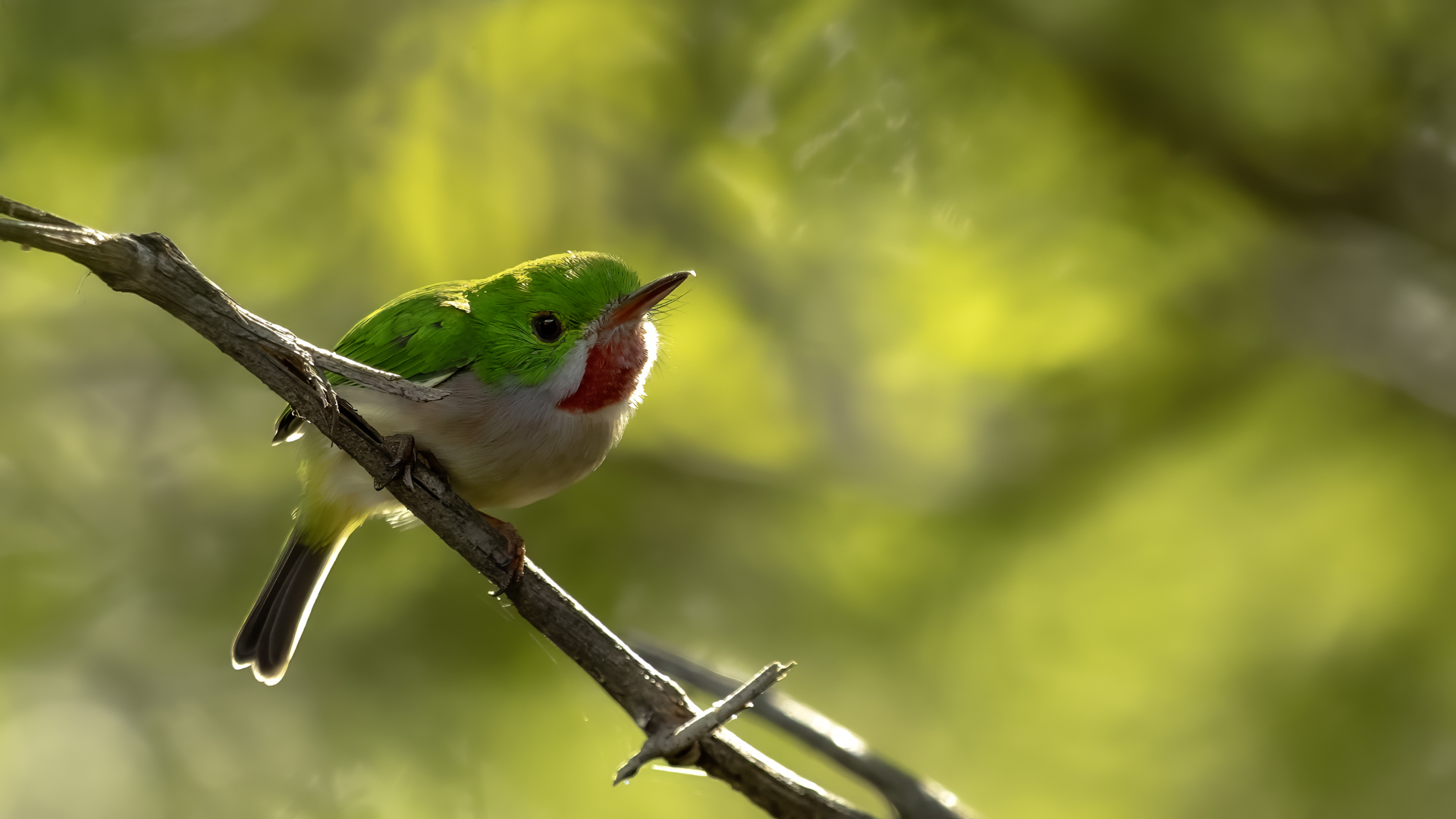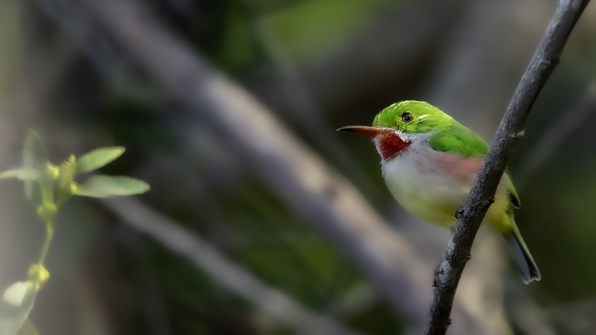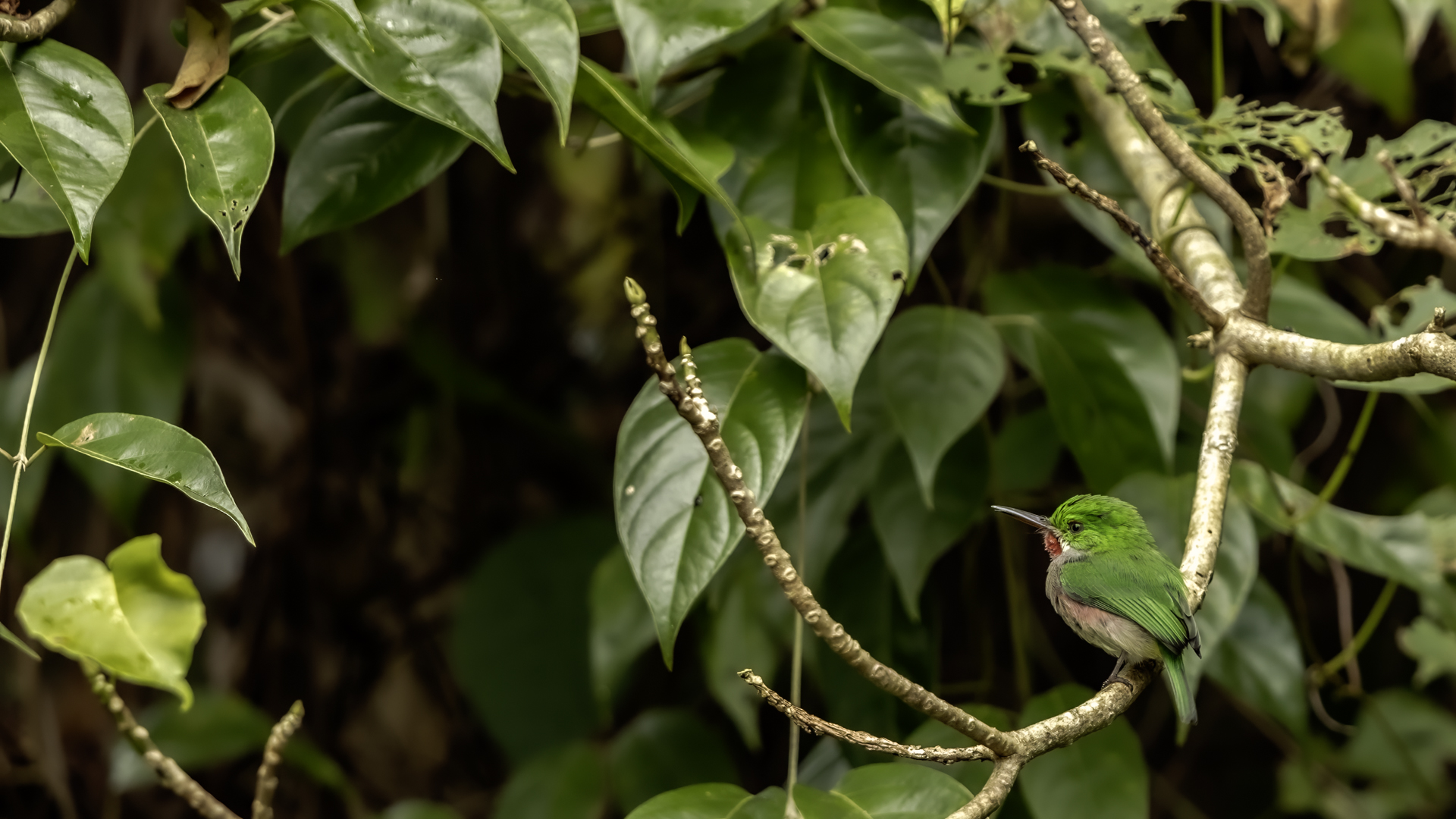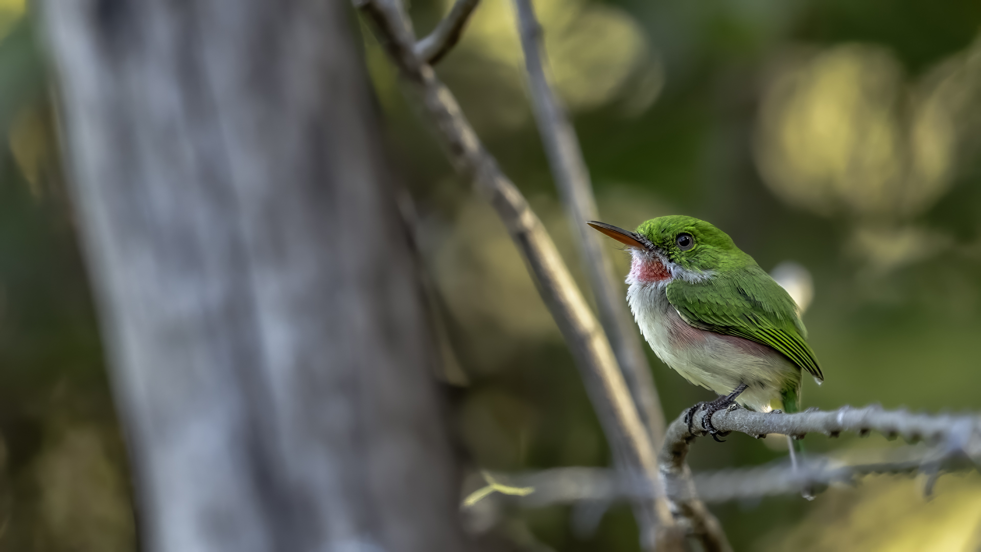 You can find the introductory text in the broad-billed tody gallery, not in the palmchat one. We managed to see the palmchat, the Dominican national bird, quite often. Sometimes the whole flocks flew over our heads. They were very shy and difficult to lure in November. Interesting to watch but there was no opportunity to take good photos and the very few I managed to shoot initiated a gallery of this very important to me species.The first one is the national bird of the Dominican Republic, the other one is yet another of the endemic species inhabiting the country. I didn’t have too many interesting photos to build a gallery so I decided to concentrate on a beautiful, colourful broad-billed tody which I have a great sentiment for. It is really tiny and it always made us smile. I added one photo to the gallery at the very end to illustrate the scale and show how difficult it is to photograph this bird. I took a photo of the forest with my mobile phone from the place where the tripod with the camera and lens was standing. I photographed with a 600 lens camera with a converter from a distance of about 10 meters birds which are about 10-11 centimeters long from the beak to the tail and weigh about 7-9 grams. They are that tiny. I am writing using plural here because there are two kinds of todies in the Dominican Republic: Broad-billed tody (9 grams) and Narrow-billed tody (7 grams). Broad-billed tody was quite common in several places where we photographed so we had a chance to meet a few times and a gallery of this Dominican endemic bird was created with its own soundtrack. It must be noted that there are 5 species of todies in the world and all of them are endemic species. In Cuba I managed to photograph the Cuban tody, in the Dominican Republic the broad-billed tody and the narrow-billed tody. So there are still two left to take photos of - the Jamaican Tody and the Puerto Rican Tody.