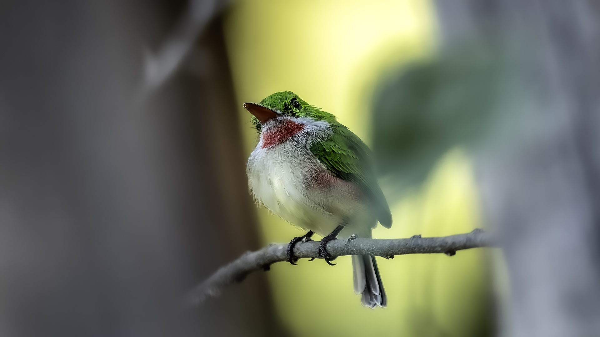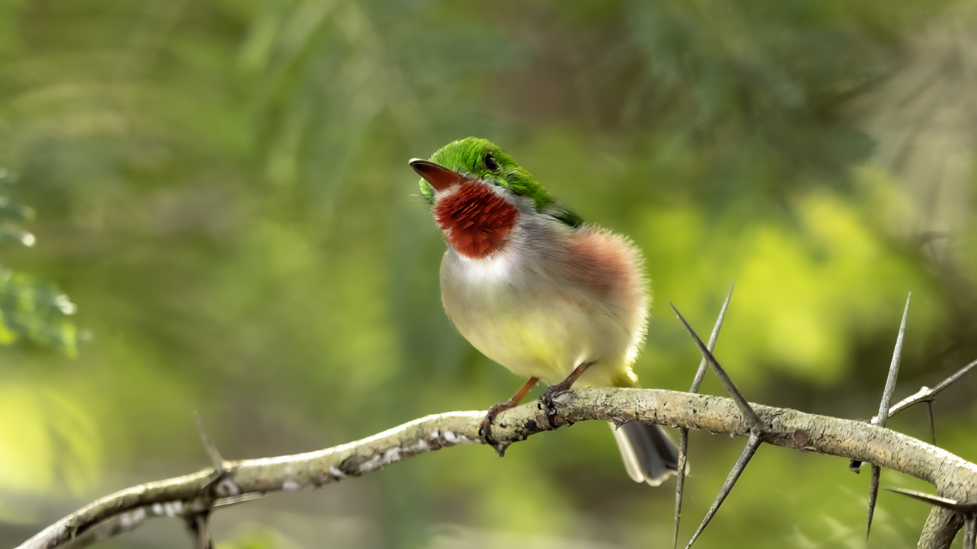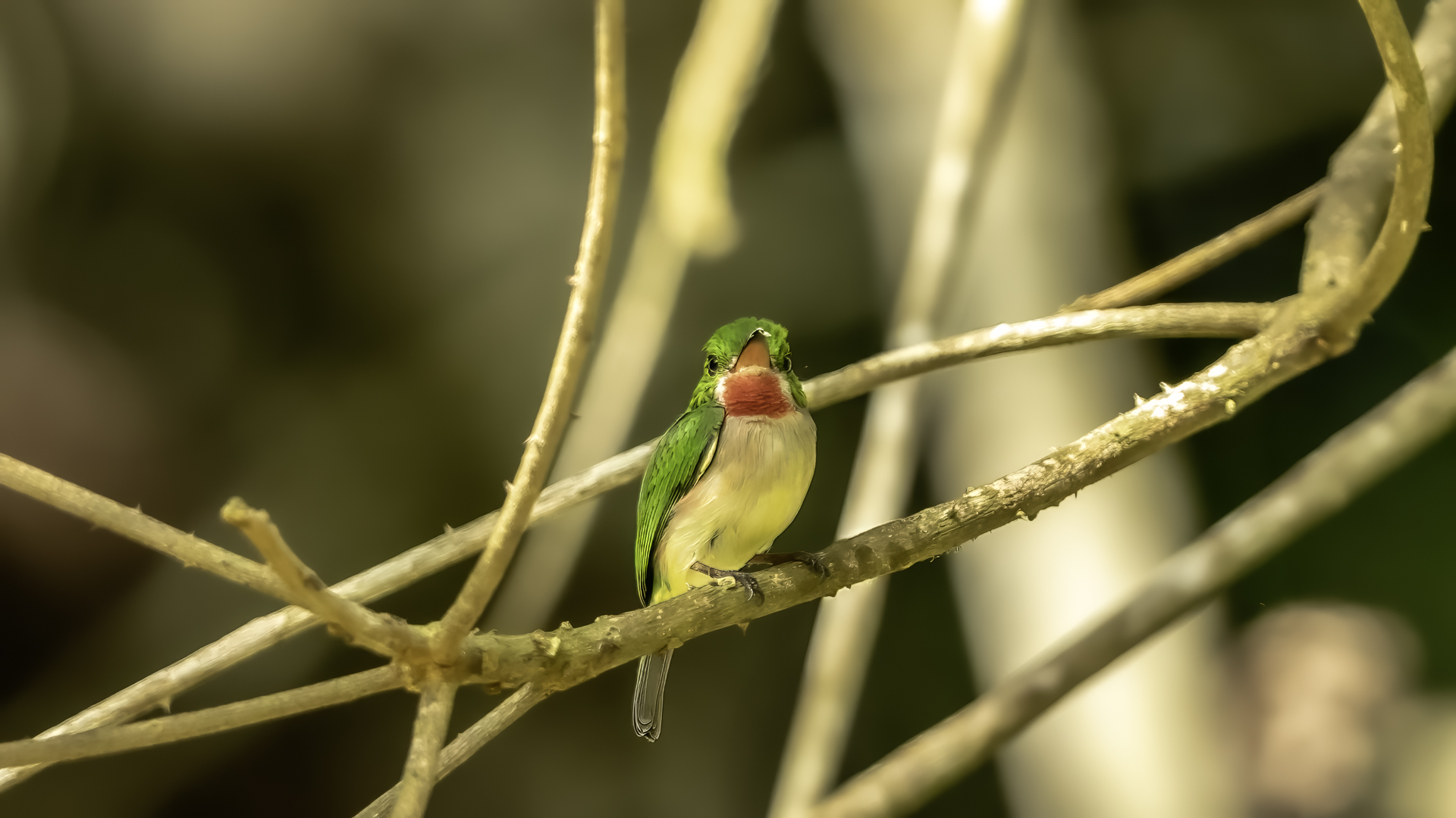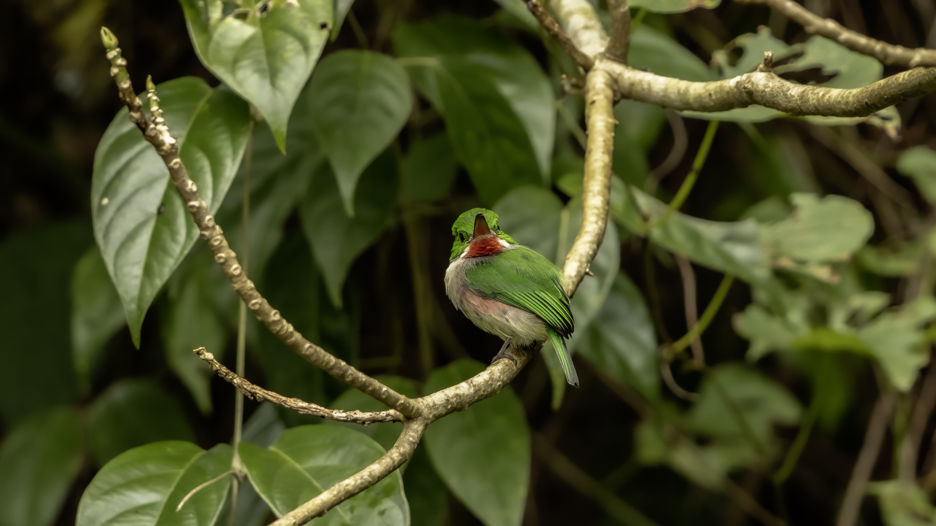 You can find the introductory text in the broad-billed tody gallery, not in the palmchat one. We managed to see the palmchat, the Dominican national bird, quite often. Sometimes the whole flocks flew over our heads. They were very shy and difficult to lure in November. Interesting to watch but there was no opportunity to take good photos and the very few I managed to shoot initiated a gallery of this very important to me species.The first one is the national bird of the Dominican Republic, the other one is yet another of the endemic species inhabiting the country. I didn’t have too many interesting photos to build a gallery so I decided to concentrate on a beautiful, colourful broad-billed tody which I have a great sentiment for. It is really tiny and it always made us smile. I added one photo to the gallery at the very end to illustrate the scale and show how difficult it is to photograph this bird. I took a photo of the forest with my mobile phone from the place where the tripod with the camera and lens was standing. I photographed with a 600 lens camera with a converter from a distance of about 10 meters birds which are about 10-11 centimeters long from the beak to the tail and weigh about 7-9 grams. They are that tiny. I am writing using plural here because there are two kinds of todies in the Dominican Republic: Broad-billed tody (9 grams) and Narrow-billed tody (7 grams). Broad-billed tody was quite common in several places where we photographed so we had a chance to meet a few times and a gallery of this Dominican endemic bird was created with its own soundtrack. It must be noted that there are 5 species of todies in the world and all of them are endemic species. In Cuba I managed to photograph the Cuban tody, in the Dominican Republic the broad-billed tody and the narrow-billed tody. So there are still two left to take photos of - the Jamaican Tody and the Puerto Rican Tody.