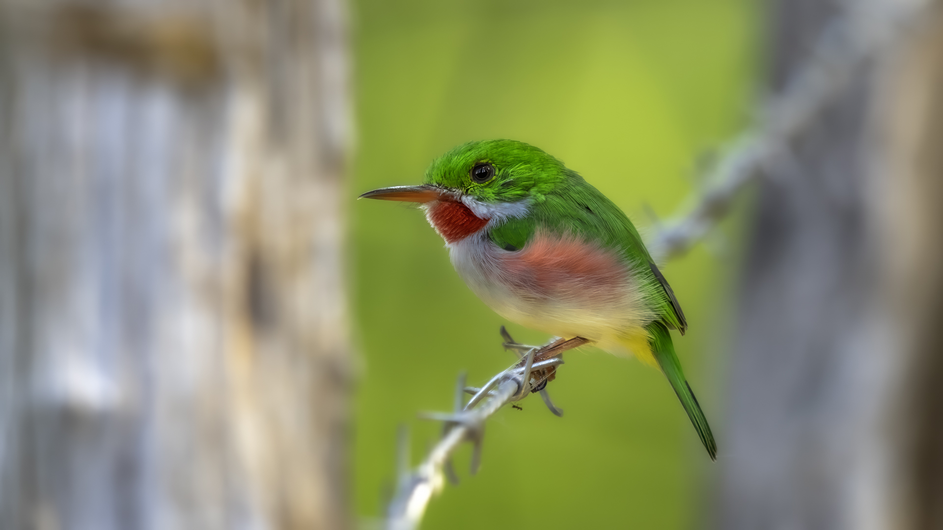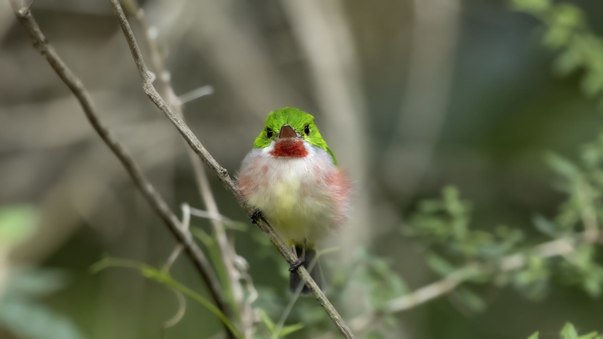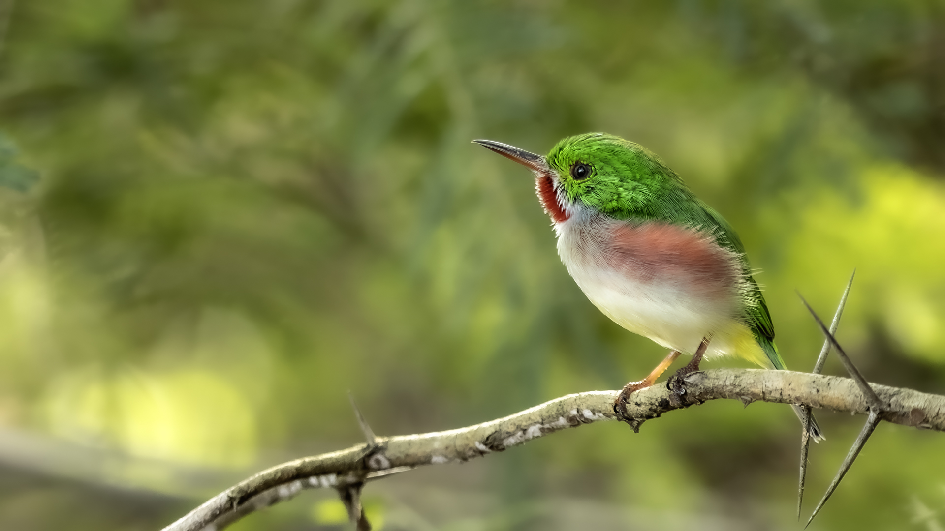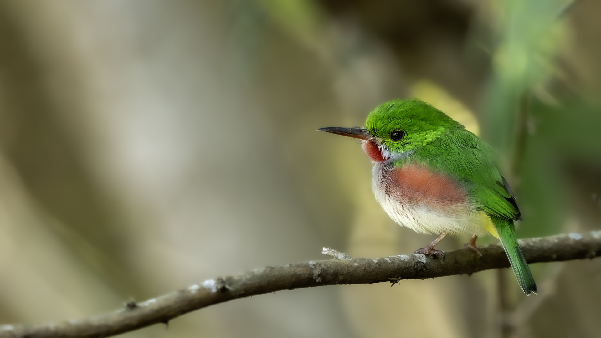 You can find the introductory text in the broad-billed tody gallery, not in the palmchat one. We managed to see the palmchat, the Dominican national bird, quite often. Sometimes the whole flocks flew over our heads. They were very shy and difficult to lure in November. Interesting to watch but there was no opportunity to take good photos and the very few I managed to shoot initiated a gallery of this very important to me species.The first one is the national bird of the Dominican Republic, the other one is yet another of the endemic species inhabiting the country. I didn’t have too many interesting photos to build a gallery so I decided to concentrate on a beautiful, colourful broad-billed tody which I have a great sentiment for. It is really tiny and it always made us smile. I added one photo to the gallery at the very end to illustrate the scale and show how difficult it is to photograph this bird. I took a photo of the forest with my mobile phone from the place where the tripod with the camera and lens was standing. I photographed with a 600 lens camera with a converter from a distance of about 10 meters birds which are about 10-11 centimeters long from the beak to the tail and weigh about 7-9 grams. They are that tiny. I am writing using plural here because there are two kinds of todies in the Dominican Republic: Broad-billed tody (9 grams) and Narrow-billed tody (7 grams). Broad-billed tody was quite common in several places where we photographed so we had a chance to meet a few times and a gallery of this Dominican endemic bird was created with its own soundtrack. It must be noted that there are 5 species of todies in the world and all of them are endemic species. In Cuba I managed to photograph the Cuban tody, in the Dominican Republic the broad-billed tody and the narrow-billed tody. So there are still two left to take photos of - the Jamaican Tody and the Puerto Rican Tody.