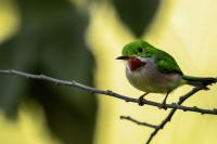 1. Broad-billed Tody (E,T,V). 2. Antillean Mango (T,E,V). 3. Vervain Hummingbird (T). 4. Hispaniolan Trogon (T,V,E). 5. Antillean Euphonia (E,V). 6.Hispaniolan Parakeet (E,V). 7.Narrow-billed Tody (E,V). 8. Loggerhead Kingbird. 9.Hispaniolan Lizard-Cuckoo (V). 10.Black-crowned Palm-Tanager (E).11. Antillean Siskin (V,E). 12.Stolid Flycatcher(V,E). 13.Hispaniolan Woodpecker (E,V). 14. Palmchat (T,E,V). 15.Flat-billed Vireo (E). 16 Hispaniolan Emerald (T). 17.Pine Warbler. 18.Hispaniolan Nightjar (E). 19.Least Sandpiper (PL,T). 20.Hispaniolan Palm Crow (E,V). 21. Eastern Chat-Tanager (E,V). 22. Rufous-throated Solitaire (V,T,E). 23. Ashy-faced Owl (E). 24.Ridgway's Hawk (E). 25Mangrove Cuckoo. 26.Hispaniolan Pewee (E). 27. Hispaniolan Spindalis (E). 28. Antillean Piculet (E). 29. Hispaniolan Crossbill (E,V). 30. Northern Potoo (T). 31. Semipalmated Sandpiper (PL,T). 32. White-cheeked Pintail. 33. American Yellow Warbler. 34. White-necked Crow (E,V). 35. Greater Antillean Bullfinch. 36. Olive-throated Parakeet. 37. La Selle Thrush (E,T). 38. Hispaniolan Oriole (E) 39. Black-faced Grassquit. 40. Antillean Palm-Swift. 41. Hispaniolan Parrot (E). 42. Green-tailed Warbler (E). 43. Orange-crowned Warbler. 44. Red-tailed Hawk. 45. Mourning Warbler.
