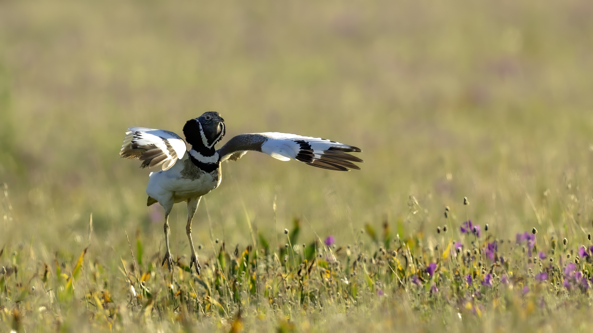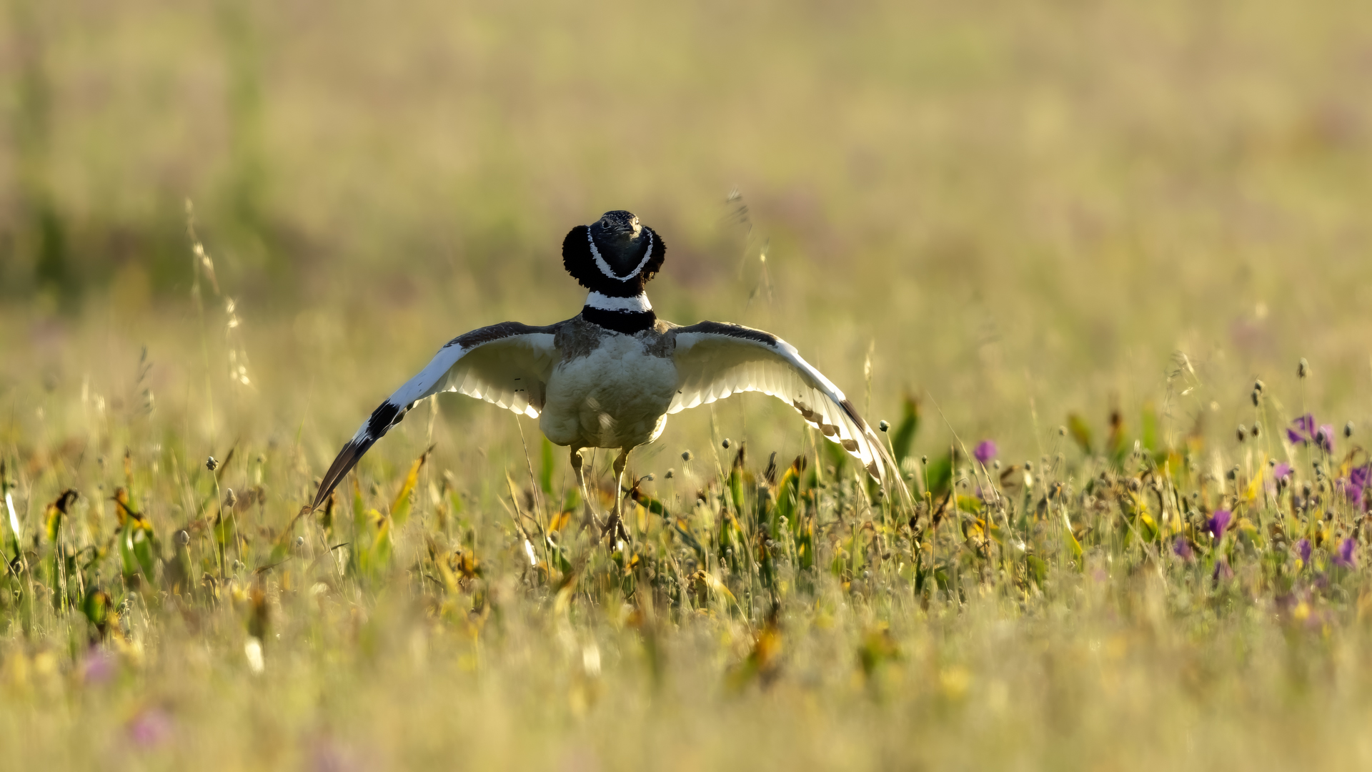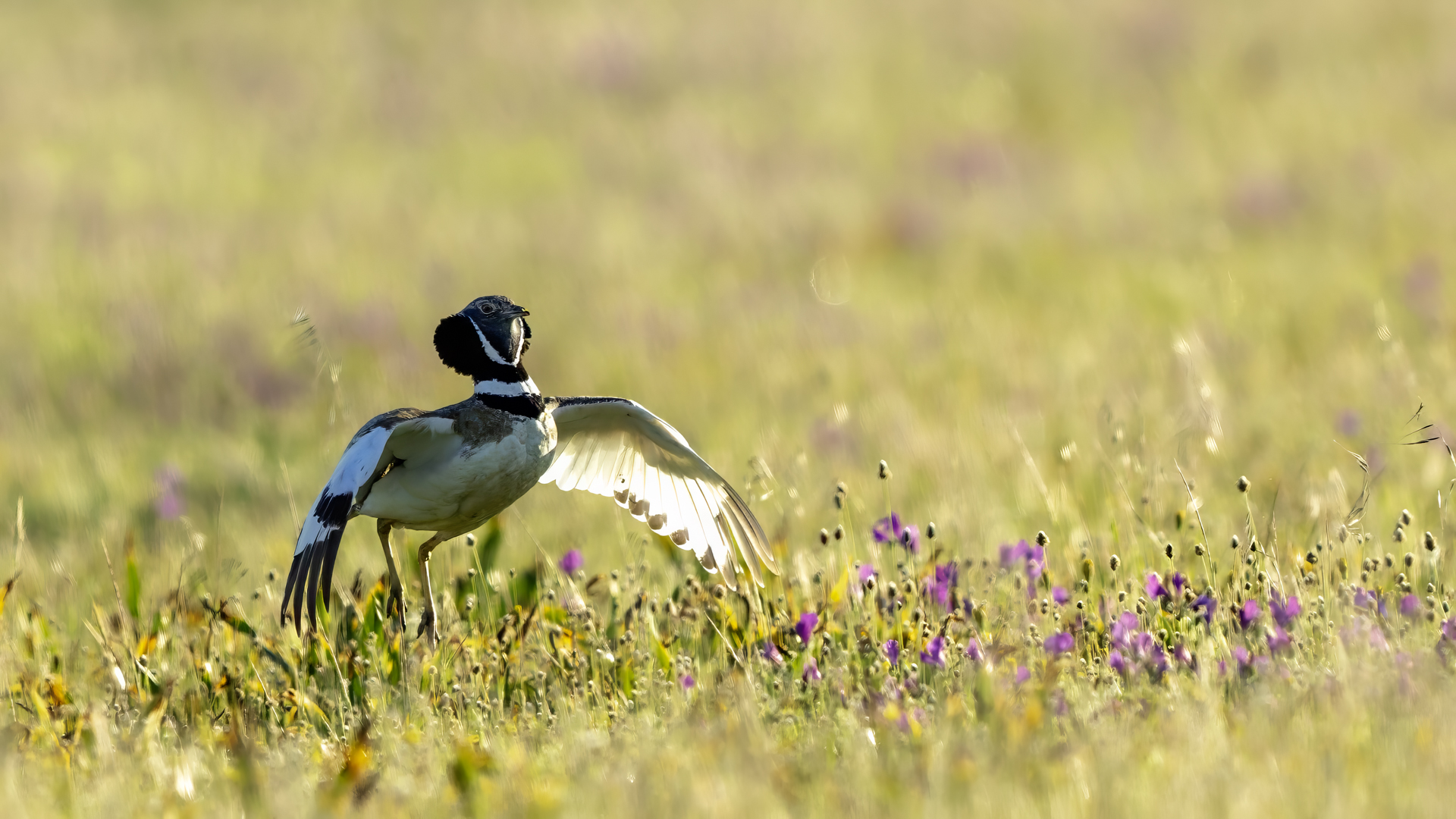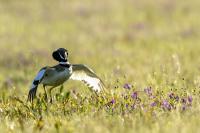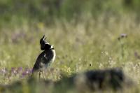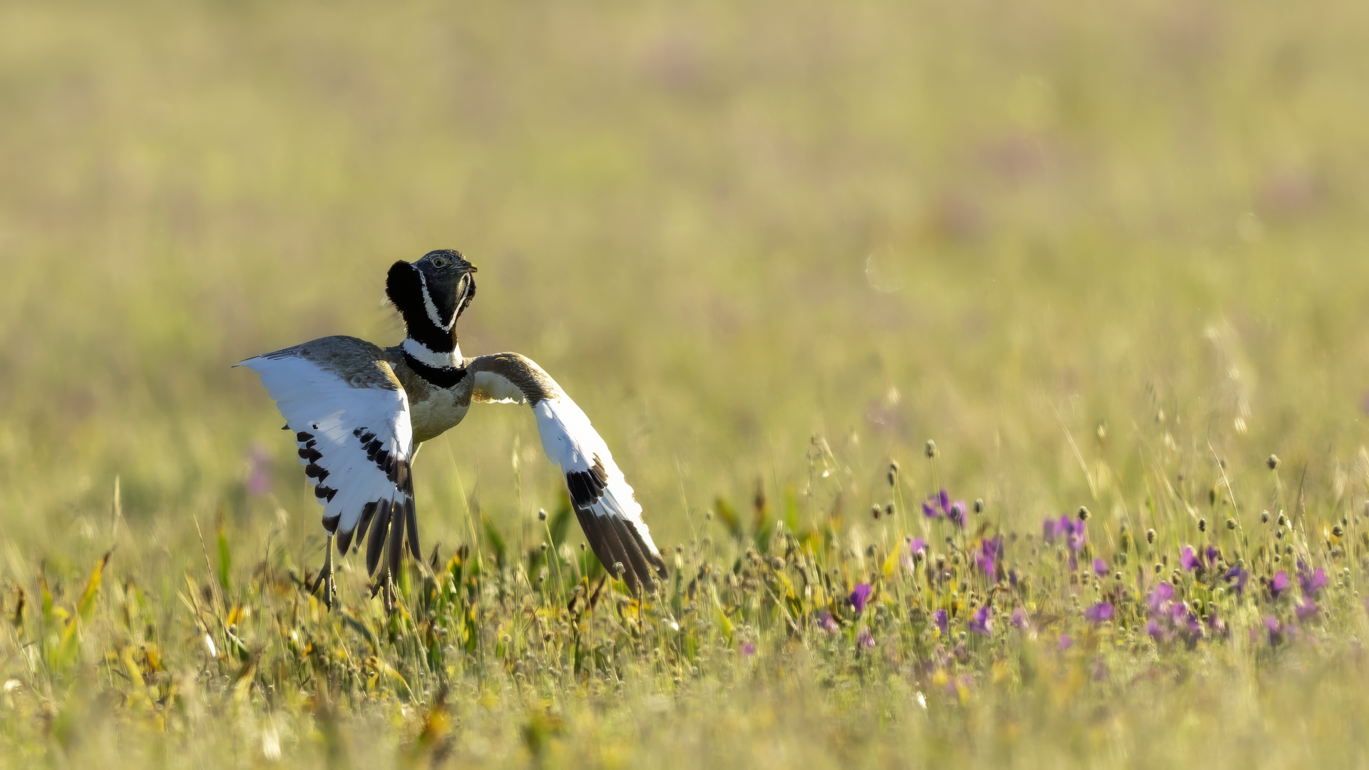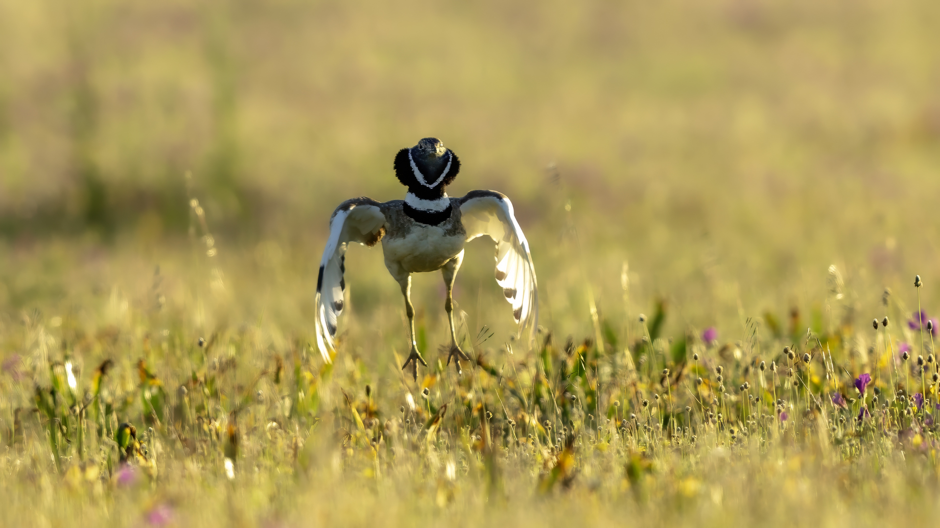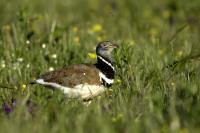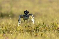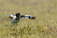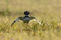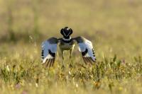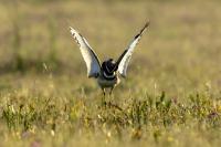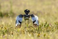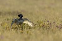 English Little Bustard means Strepet. The difference is indeed significant. Little Bustard's weight is almost 1 kilogram, while Bustards weigh dozen or so kilograms (males). The environment of those creatures are alike – vast meadows and pastures with small grass. I took presented pictures in Spain. In Poland the species is accounted to migrating birds and some sources say that their occurrence in our country has not been noted for couple of years. In Europe it occurs mostly on the Iberian Penninsula and the southern France. Sitting, at night, in the watching booth waiting for the sunrise and the Little Bustard I have recorded quite unusual sound. At first it was a sound resembling a falling ping-pong ball ending with characteristic sound (sound attached in the gallery). And as the first part of the sound could only be heard at close quarters, the ending of the bustard's voice was heard from a significant distance. Unfortunately, it was hard to locate and looking at the grass in an attempt to trace it by its voice did not give any results. But, what were the watching spots invented for? There came the expected effect. Little Bustard makes quite unusual jumps at dusk. It walks through the grass, when suddenly it jumps tens of centimeters up, spreading its wings. I do not know whether it seeks for a female from above or is it sort of a rivalization on who jumps higher. “My” bustard cooperated during the photo shoot almost perfectly. He often jumped right in front of the camera. For a full happiness I only lacked the distance shortened by couple of meters and some more light and its heart's chosen one around. Well, I hope all of my new galleries will have such a portfolio at a start. In this species' case, it might turn out hard to develop, as it means travelling to Iberian Penninsula, Mediterranean Sea, Caucasus or southern Asia, so it's not a weekend trip...