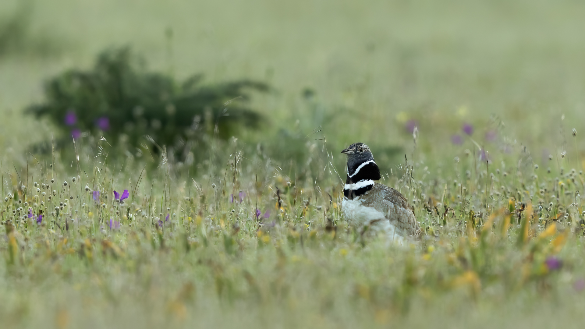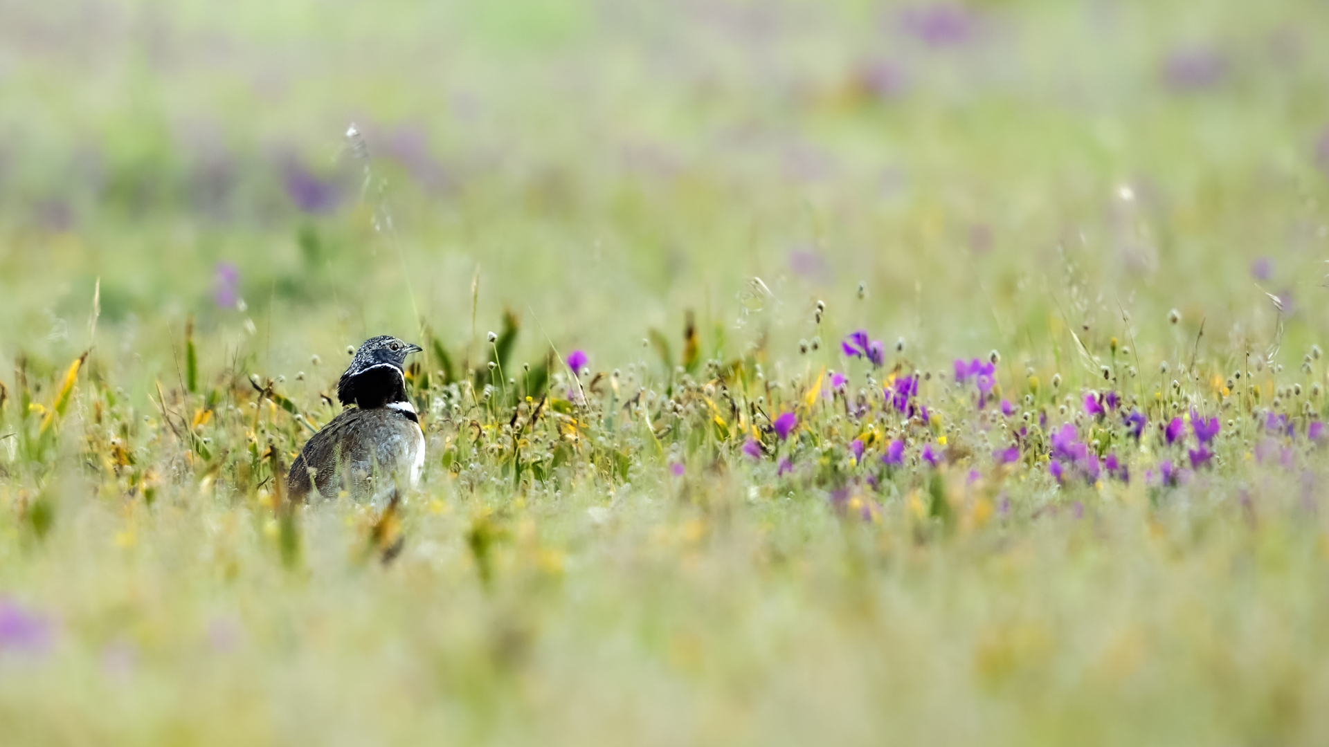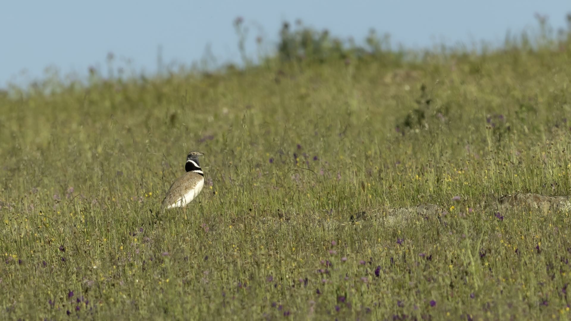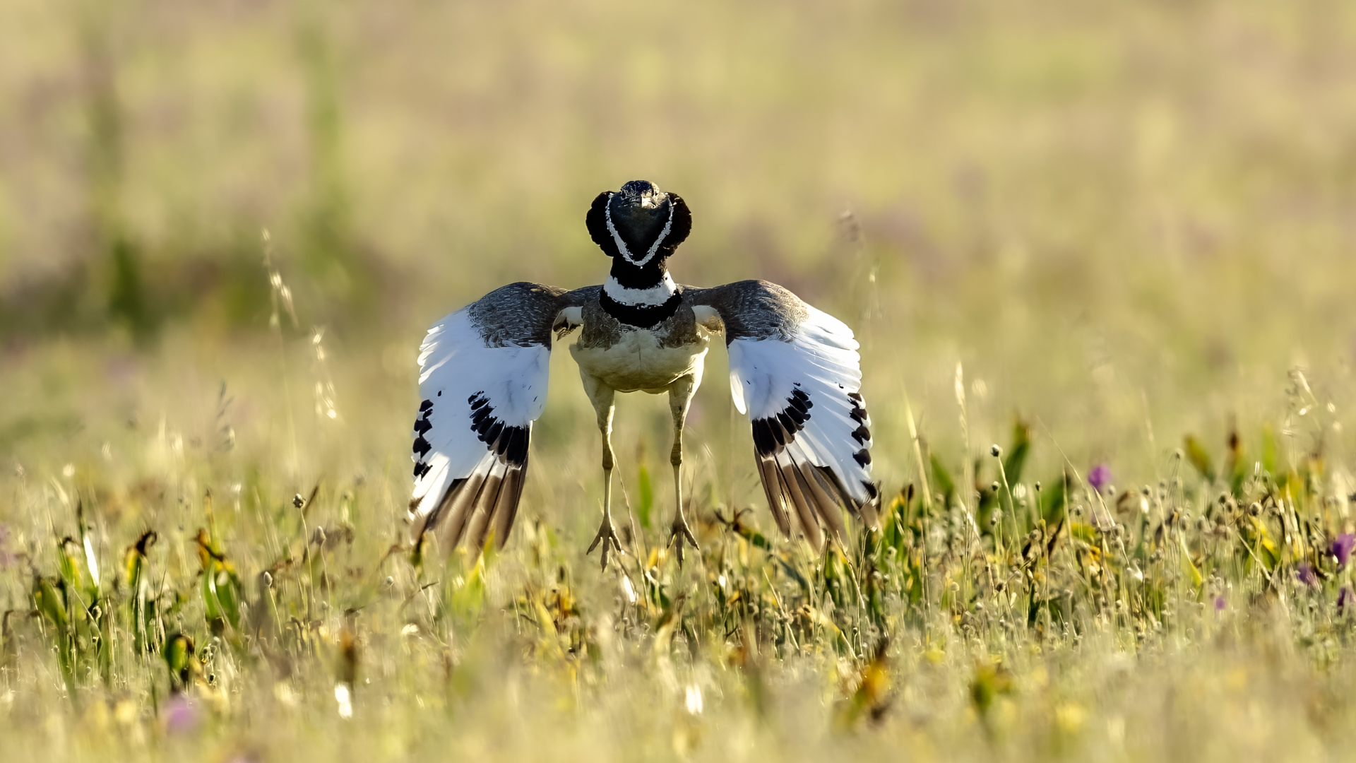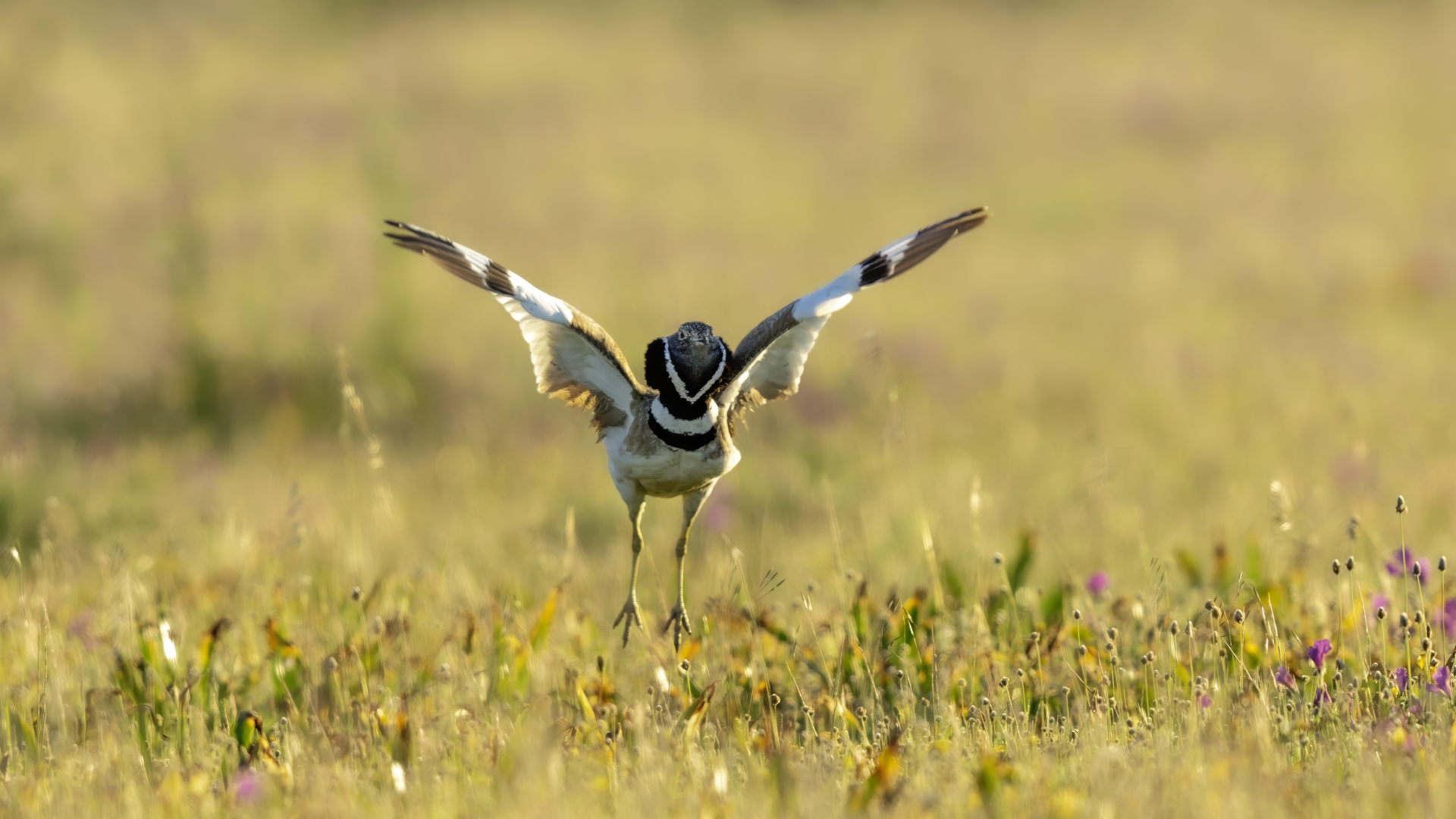 English Little Bustard means Strepet. The difference is indeed significant. Little Bustard's weight is almost 1 kilogram, while Bustards weigh dozen or so kilograms (males). The environment of those creatures are alike – vast meadows and pastures with small grass. I took presented pictures in Spain. In Poland the species is accounted to migrating birds and some sources say that their occurrence in our country has not been noted for couple of years. In Europe it occurs mostly on the Iberian Penninsula and the southern France. Sitting, at night, in the watching booth waiting for the sunrise and the Little Bustard I have recorded quite unusual sound. At first it was a sound resembling a falling ping-pong ball ending with characteristic sound (sound attached in the gallery). And as the first part of the sound could only be heard at close quarters, the ending of the bustard's voice was heard from a significant distance. Unfortunately, it was hard to locate and looking at the grass in an attempt to trace it by its voice did not give any results. But, what were the watching spots invented for? There came the expected effect. Little Bustard makes quite unusual jumps at dusk. It walks through the grass, when suddenly it jumps tens of centimeters up, spreading its wings. I do not know whether it seeks for a female from above or is it sort of a rivalization on who jumps higher. “My” bustard cooperated during the photo shoot almost perfectly. He often jumped right in front of the camera. For a full happiness I only lacked the distance shortened by couple of meters and some more light and its heart's chosen one around. Well, I hope all of my new galleries will have such a portfolio at a start. In this species' case, it might turn out hard to develop, as it means travelling to Iberian Penninsula, Mediterranean Sea, Caucasus or southern Asia, so it's not a weekend trip...