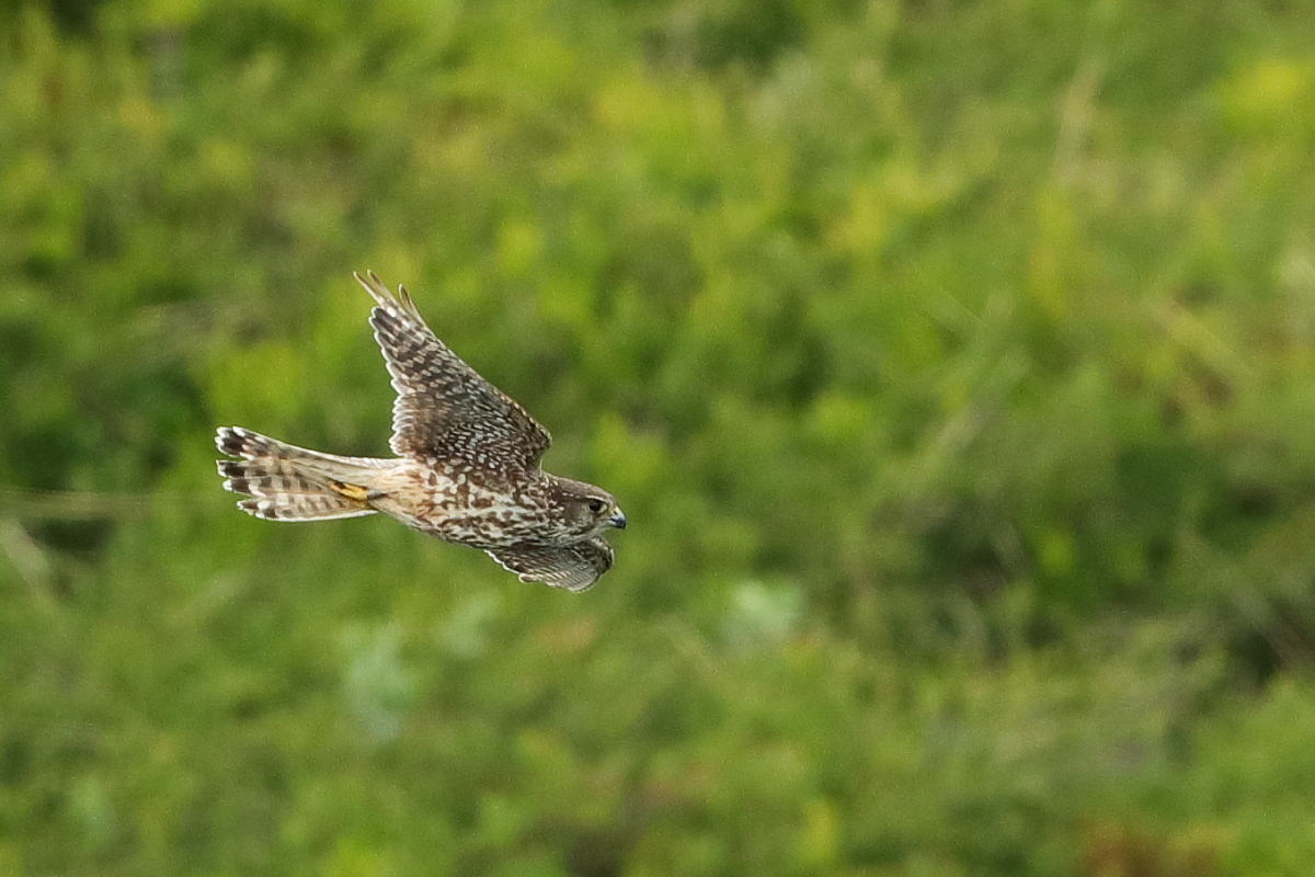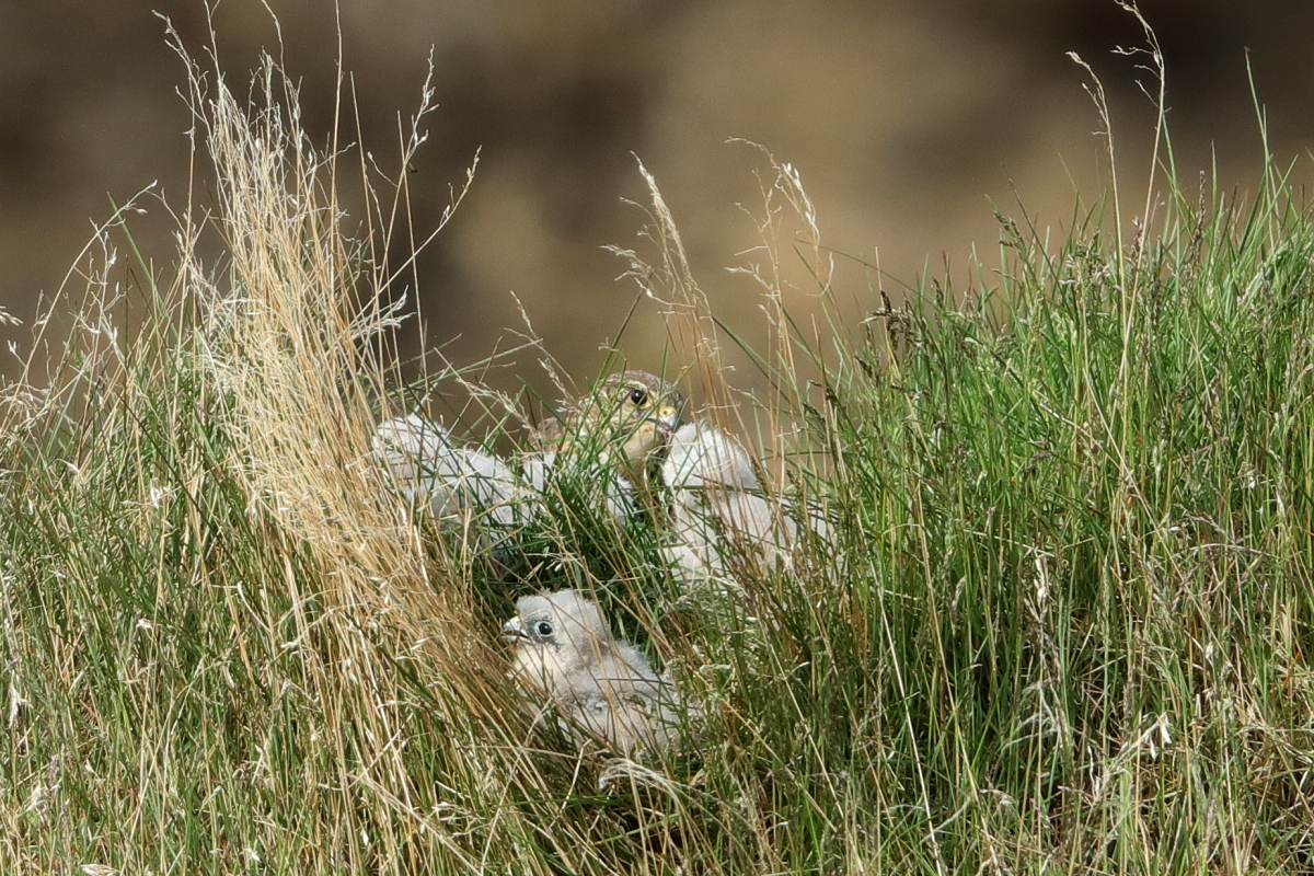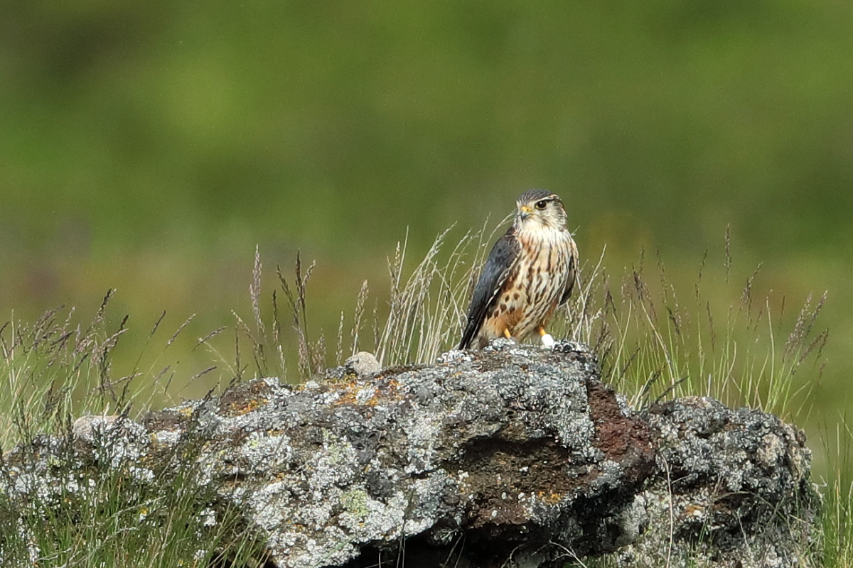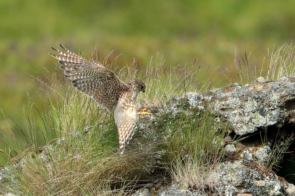 This was my second contact with the merlin, but how different. It is very obvious that I would love to complement the current, practically one-photo gallery of the bird with new photos showing the beauty of this species, but also the environment in which it lives. Such gallery looks interesting, full and makes me willing to look at these images again and again. Staying in Iceland was a good time to find a place (well, Johann - you found it!) where finally more pictures of this falcon could be taken. And we did it in a sense by accident. Despite the fact that we were looking for a merlin in several places that it was said to occur, it could not be observed there. This time just from the public road we were searching for a harlequin duck, when suddenly on a soaring rock, on the top of it, Johann noticed four gray chicks of a merlin lying in a nest in the grass. Unfortunately, it was almost midnight and we had to get some sleep but we returned in the morning to make the merlin’s photo session. We sat under the camouflage nets near the public road. Of course, a pair of parents noticed us but only the merlins’ mother flew over our heads to do a threat assessment. Then the normal daily life of the family started. The female was always close to the nest and ready to react to emerging threats, like of skuas. The male, on the other hand, hunted and gave the prey to the female, who carried food to the nest and fed the young. Its predatory instinct of a female, or perhaps the need to provide more food for the young, was so strong that it penetrated nearby all the places where other birds could have their nests. That's how she got into conflict with a pair of whimbrels. The whimbrels strongly repelled attacks of the falcon. Unfortunately, most of the photos were taken from a considerable distance and framing was necessary. When I tried to take photos of birds' quarrels scene I instinctively pressed the shutter on the largest dynamic object in the frame, which later, while watching photos on the computer screen, turned out to be a whimbrel. But this time in fact I was more interested in the smaller rare species of birds – merlin than in the whimbrel. Nevertheless, Iceland again offered another beautiful spectacle. Well, as usually lack of time, if I could spend a few days more, I would have the possibility to take amazing photos as documentation of merlins’ habits and their struggle for raising their offspring.